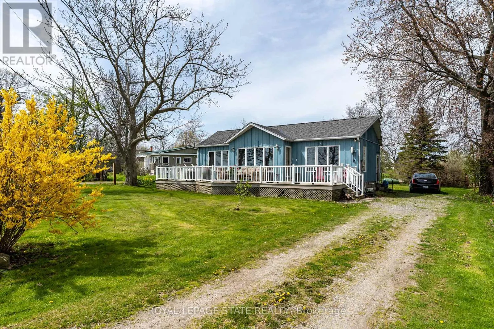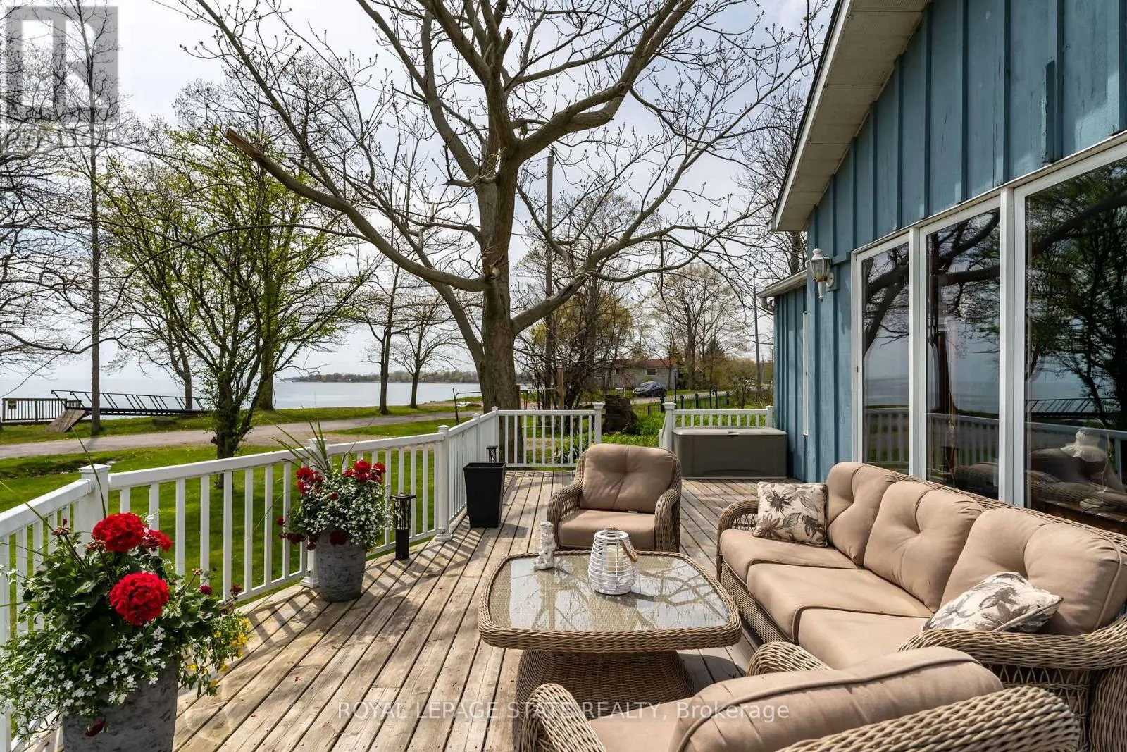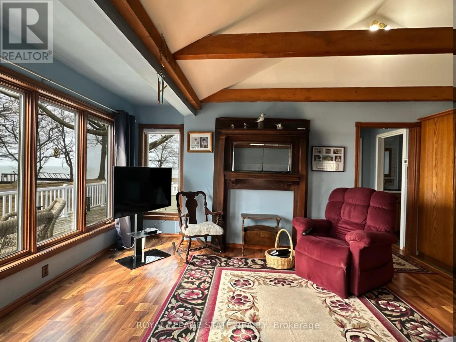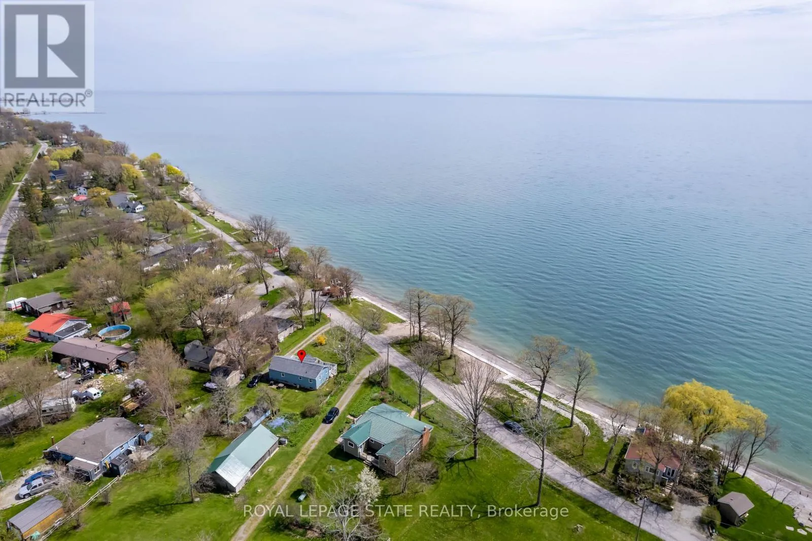 Cross Streets: Lakeshore Rd. ** Directions: Rainham Road, South on Haldimand Dunnville Townline Rd, left on Lakeshore, right on Edgewater Place. Waterfront retreat on a quiet road owning the north and south (waterside) of the road. This year-round 2-bedroom home offers the perfect blend of relaxation and recreation, featuring just over 70 feet of Lake Erie water frontage and 2022 Wilkinson built break wall, plus a natural sand and pebble beach for endless summer enjoyment. Step inside to a bright, open-concept living/dining/kitchen space highlighted by vaulted, beamed ceilings and a wall of windows showcasing lake views and awesome sunsets. The inviting layout is ideal for both everyday living and entertaining. The home includes a basement (1992) providing ample storage space and development potential, while the expansive deck is perfect for morning coffee or hosting family and friends against a beautiful waterfront backdrop. Plenty of driveway parking accommodates all your vehicles and recreational toys. Additional updates include roof shingles and the added peace of mind of a backup generator. A rare opportunity to own a lakeside escape-perfect as a year-round residence or weekend getaway! (id:27476)