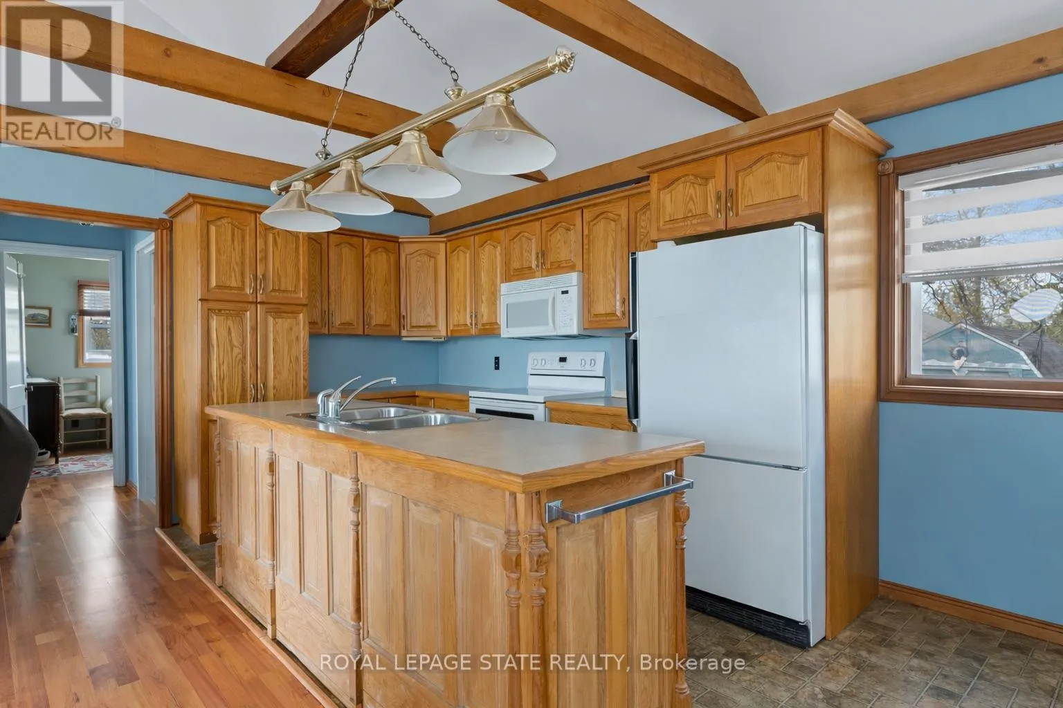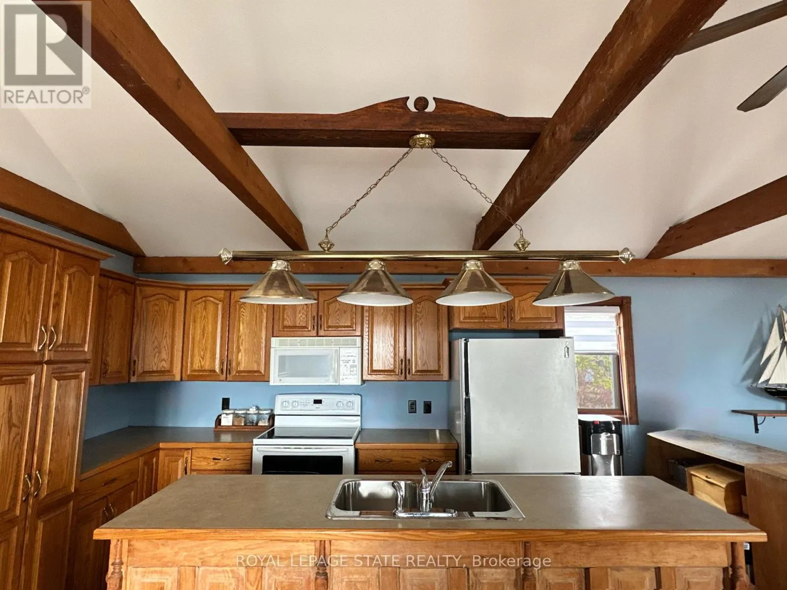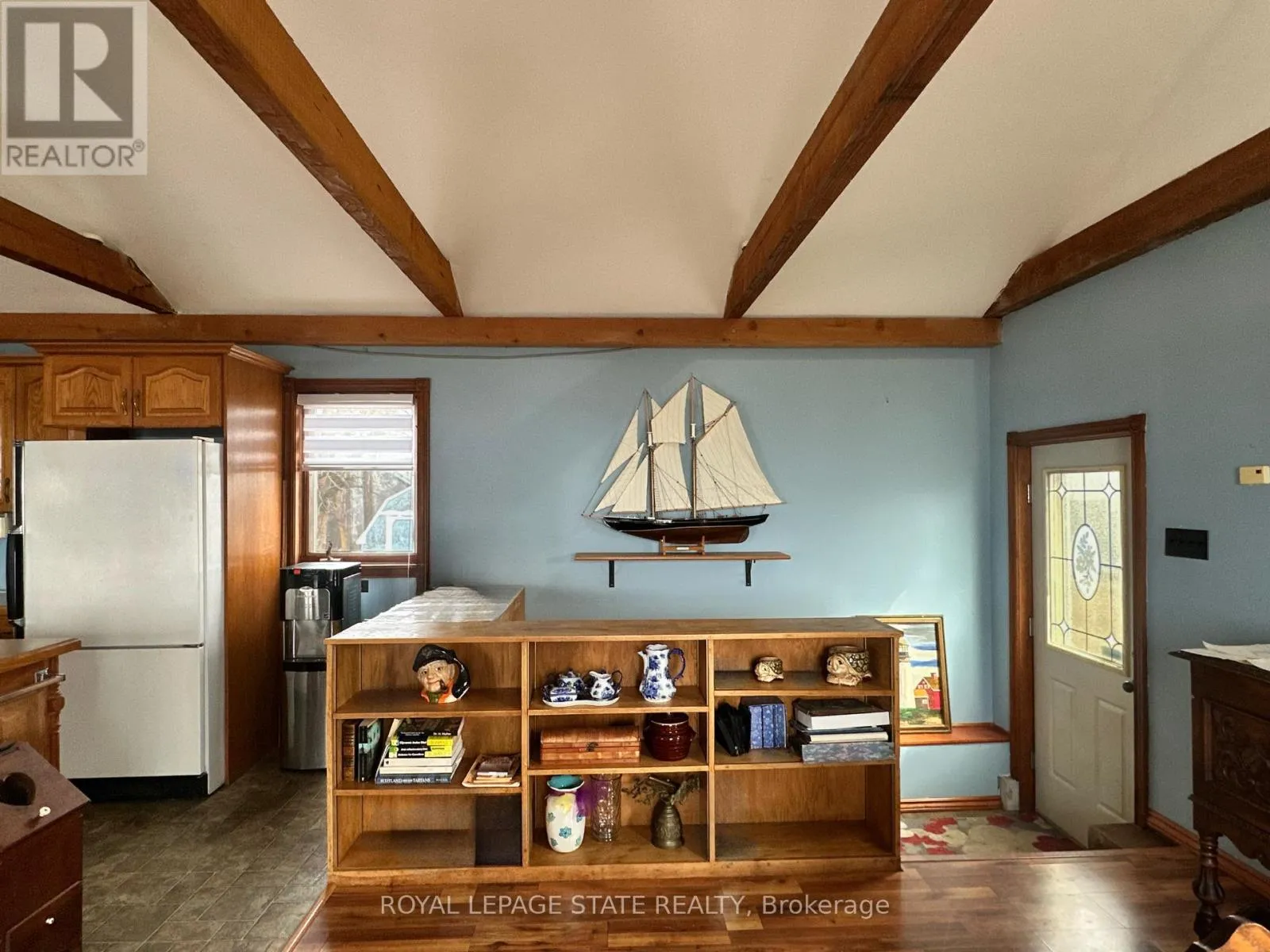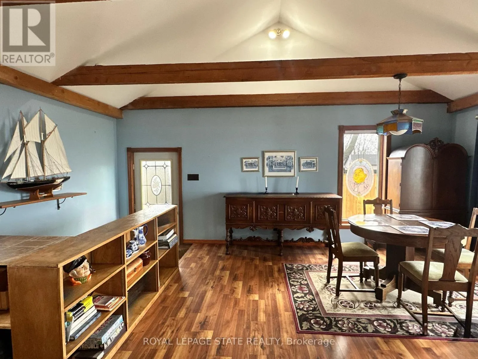 Cross Streets: Lakeshore Rd. ** Directions: Rainham Road, South on Haldimand Dunnville Townline Rd, left on Lakeshore, right on Edgewater Place. Waterfront retreat on a quiet road owning the north and south (waterside) of the road. This year-round 2-bedroom home offers the perfect blend of relaxation and recreation, featuring just over 70 feet of Lake Erie water frontage and 2022 Wilkinson built break wall, plus a natural sand and pebble beach for endless summer enjoyment. Step inside to a bright, open-concept living/dining/kitchen space highlighted by vaulted, beamed ceilings and a wall of windows showcasing lake views and awesome sunsets. The inviting layout is ideal for both everyday living and entertaining. The home includes a basement (1992) providing ample storage space and development potential, while the expansive deck is perfect for morning coffee or hosting family and friends against a beautiful waterfront backdrop. Plenty of driveway parking accommodates all your vehicles and recreational toys. Additional updates include roof shingles and the added peace of mind of a backup generator. A rare opportunity to own a lakeside escape-perfect as a year-round residence or weekend getaway! (id:27476)
