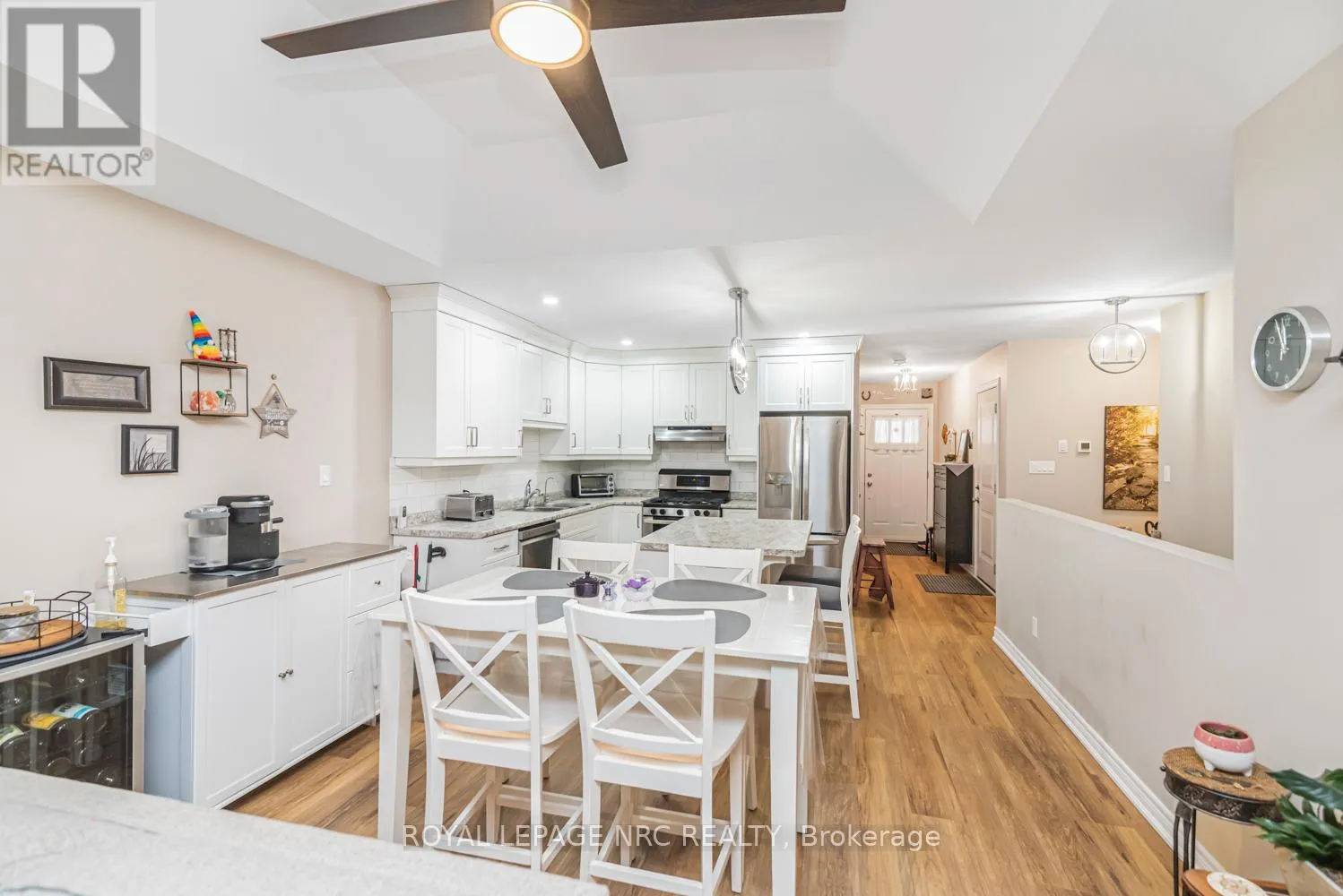 Cross Streets: Cedar St. ** Directions: From Broad St W, north onto Cedar St, east onto Cross St E, private road entrance for #152 on south side of street. Welcome to the serenity of this exclusive bungalow townhouse in an adult community complex accessed through a private road off of Cross St E in the quaint town of Dunnville. Here you will find Unit 6 which is carpet free and has been immaculately maintained & upgraded featuring a beautiful white kitchen with subway tile backsplash, island with electrical outlet, stainless appliances, Boshart drinking water filtration system, open to the spacious dining/living area featuring a gas fireplace and large sliding doors to the backyard deck with motorized awning. The spacious primary bedroom with upgraded lighting has a well-planned 4pc ensuite bathroom and walk in closet. The 2nd main floor bedroom is situated close to the front foyer and works well as a home office, down the hall is inside garage access, a convenient main floor laundry with new built-in storage cabinetry and a 2pc guest bathroom. In the lower level you will find a recently finished (2024), open concept, extra large flexible recreation space with upgraded electrical, as well as an unfinished storage/utility area with a laundry tub. Enjoy the convenience of 1 floor living, snow removal and lawn maintenance done for you and a location within walking distance to all downtown amenities as well as the Grand River pathways. Included with the purchase of this townhouse is a complimentary 1 year Canadian Home Shield Warranty (some exclusions & limitations apply) (id:27476)