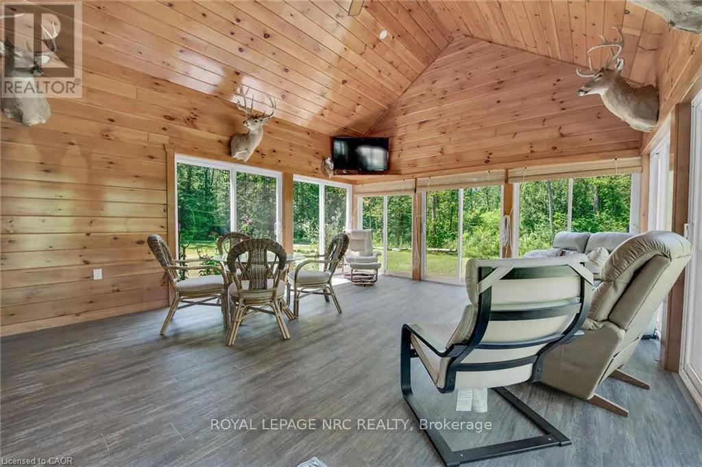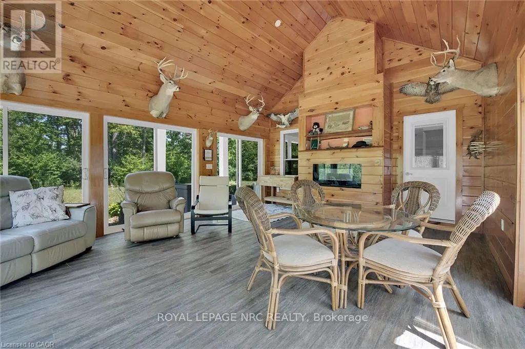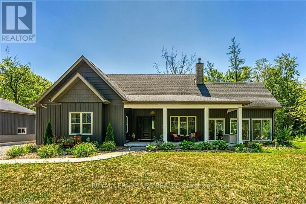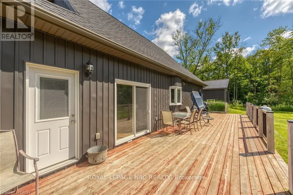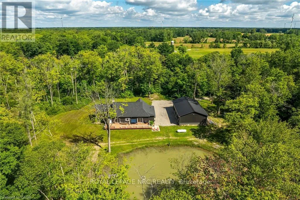 Cross Streets: Bird. ** Directions: From Dunnville-HWY 3 East, South on Bird Road, East on Moulton-Aiken Road. Perfect country package! Rare opportunity to own a secluded 52-acre multi-purpose property, frequented by deer, wild turkeys, rabbits, and various bird species. The land comprises mature forest and wetlands, including maple, ash, and oak trees, with nature trails and road frontages on three sides for privacy. The property features a 1,436 sq ft bungalow, custom built in 2020, with two main floor bedrooms, two and a half bathrooms, and an unfinished basement suitable for additional living space and more bedrooms. Additional structures include a 50'x30'x18' workshop equipped with a car hoist, suited for hobbyists or contractors. The main floor has an open concept with a cathedral ceiling finished in tongue-and-groove pine, an eat-in kitchen with custom maple cabinetry, quartz countertops, a bay window, and stainless-steel appliances. The living room includes a wood fireplace, scraped hardwood floors, and patio doors to a rear deck overlooking the aerated pond and wooded area. The great room provides panoramic outdoor views through wall-to-wall sliding patio doors, a cathedral pine ceiling, and an electric fireplace. Both main floor bedrooms are spacious; the principal bedroom has an ensuite, walk-in closet, and deck access. The basement contains laundry facilities, a utility room, storage, and roughed-in plumbing for bathrm with sewage ejector. Notable amenities include a hi-eff propane furnace, central air, a 2,500-gal water cistern, indoor and outdoor sump pumps, a modern septic system, and 100-amp electrical service. The property is situated on a year-round paved road in a tranquil setting surrounded by a serene forest, with landscaped grounds, vibrant perennial gardens, and a large driveway that can accommodate multiple vehicles and a boat or RV. Located near Dunnville's amenities, it is within a 30-60 minute drive to Hamilton and Niagara. This property offers a cottage-like ambiance for those interested in outdoor recreation and nature! (id:27476)