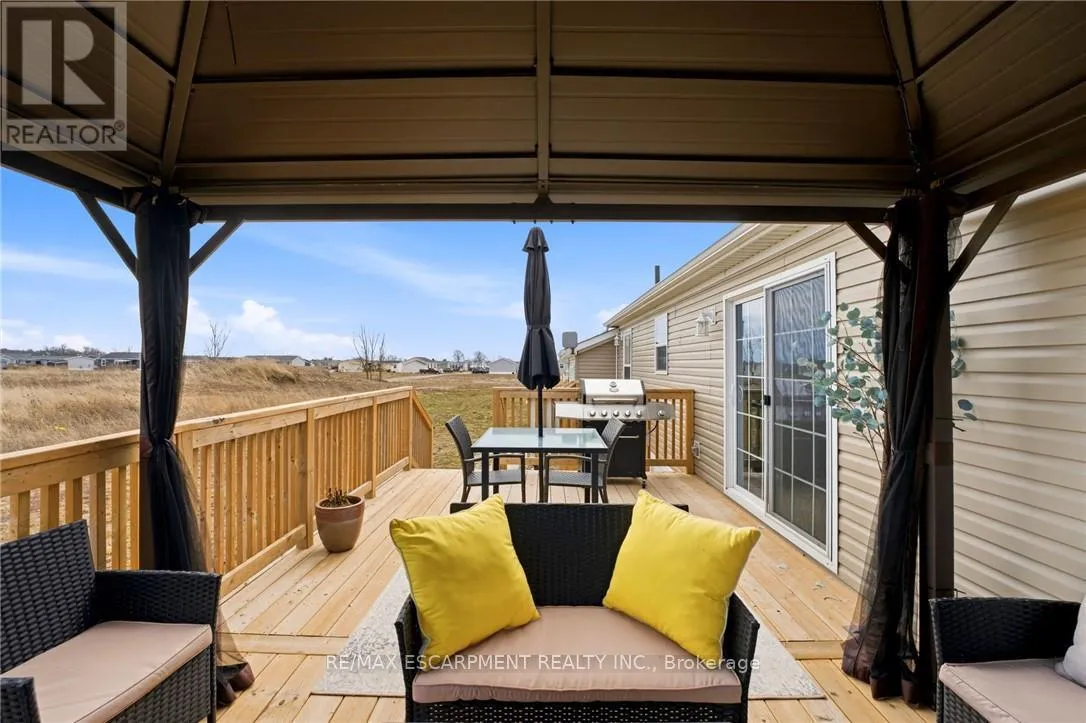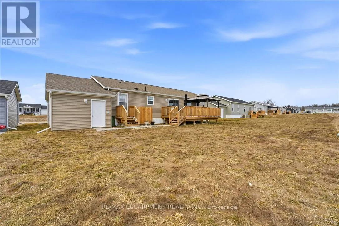 Cross Streets: Cricklewood Crescent. ** Directions: HWY#6 S - left onto HWY#3 - right onto CHEAPSIDE RD - left onto MURPHYS LN - left onto HICKORY HOLLOW. Welcome to Sandusk Creek Community! This beautifully updated 2-bedroom + den, 2-bath bungalow is being offered fully furnished, and is truly move-in ready. Featuring skimmed walls, beautiful millwork, tasteful finishes, and a gourmet kitchen complete with island, pot filler, and garburator, even equipped with a golf cart. this home shows exceptionally well. The open-concept layout is ideal for easy living or entertaining, while the back porch offers a peaceful summer setting to enjoy and watch the dragonflies with open field views. Perfect as a full-time residence or weekend retreat. A rare opportunity for buyers seeking quiet living with low-maintenance appeal. This opportunity comes once in a lifetime!30' garage holds the golf cart and vehicle quite nicely. The pressed treated lumber deck is 22'x12' (id:27476)