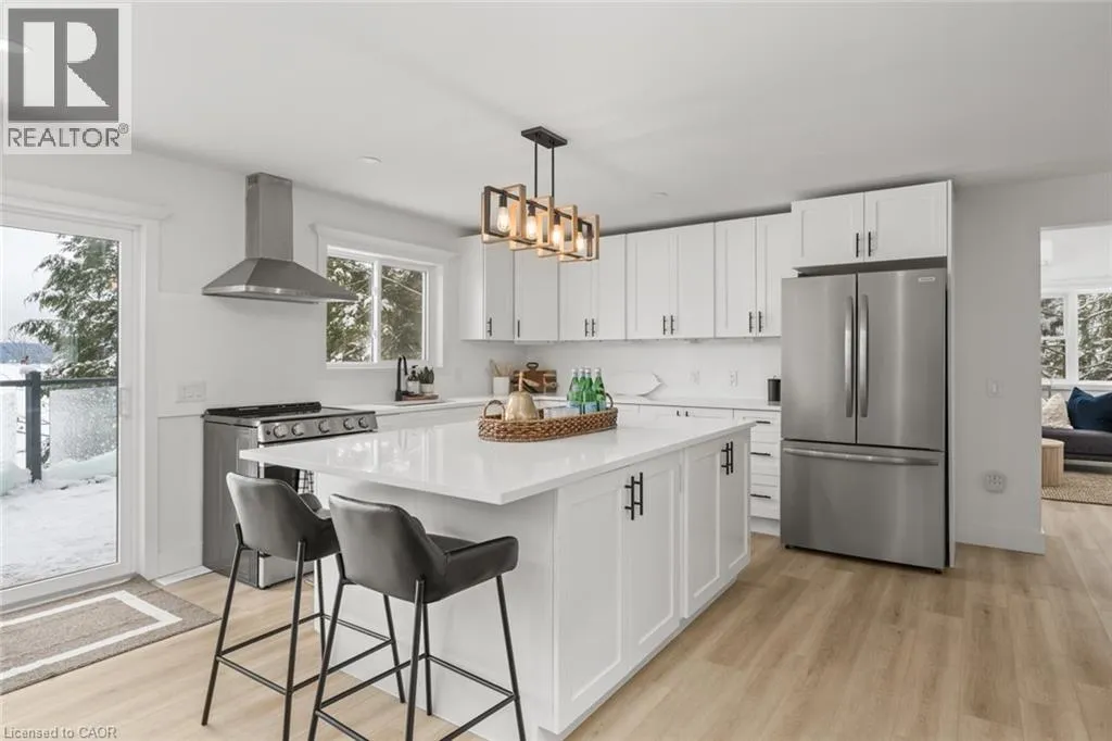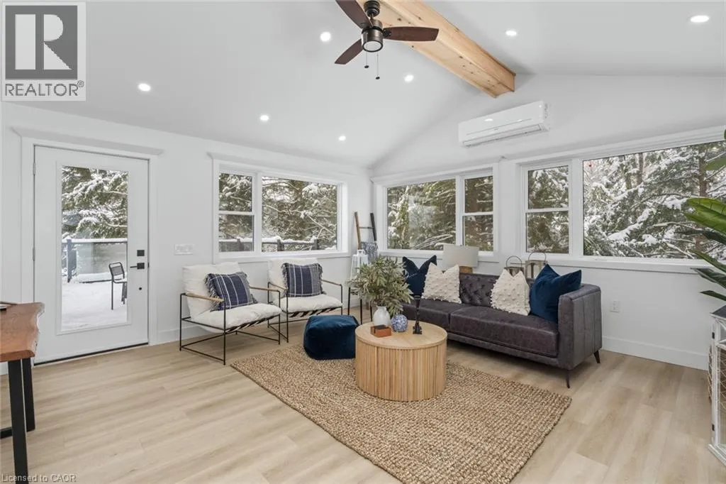 From Highway 118, follow Kennisis Lake Road until sign. A rare opportunity to own a four-season beachfront cottage on iconic Kennisis Lake. Set back from the road with the lake behind the cottage, 5789 Kennisis Lake Road offers a layered sense of privacy that unfolds as you move through the property, creating a calm and intentional connection to the water. Kennisis Lake is one of the largest and most sought-after waterways in the Haliburton Highlands, known for its expansive boating, marina access, and long uninterrupted stretches of open water. This is big lake living with space to breathe and room to slow down. The year-round cottage has been completely rebuilt with long term ease and peace of mind in mind. Gutted to the studs and expanded with an addition, the home features all new septic, drilled well, electrical, insulation, siding, steel roof, landscaping, sauna, and hot tub. Every major system has been replaced. Inside, the cottage is bright and welcoming with private southeast facing lake views throughout. The main level offers three bedrooms, a full bathroom, and an open concept kitchen and dining area that naturally becomes the heart of the home, along with a spacious sunroom suited to every season. The lower level features a king bedroom with lake views, walkout access to the hot tub, and gentle steps leading down to the shoreline. Outdoors an expansive upper deck overlooks the lake for relaxed meals and evening sunsets, while a second deck closer to the shoreline offers a quiet place to unwind by the water. A brand new sauna tucked into the trees creates a private spa like escape. The shoreline is exceptional with hard packed sand and a gentle shallow entry. Close to Sir Samâs Ski, golf, trails, and local amenities, this is where lake life feels simple again. Where days feel unhurried. Where the lake becomes part of your everyday rhythm. (id:27476)