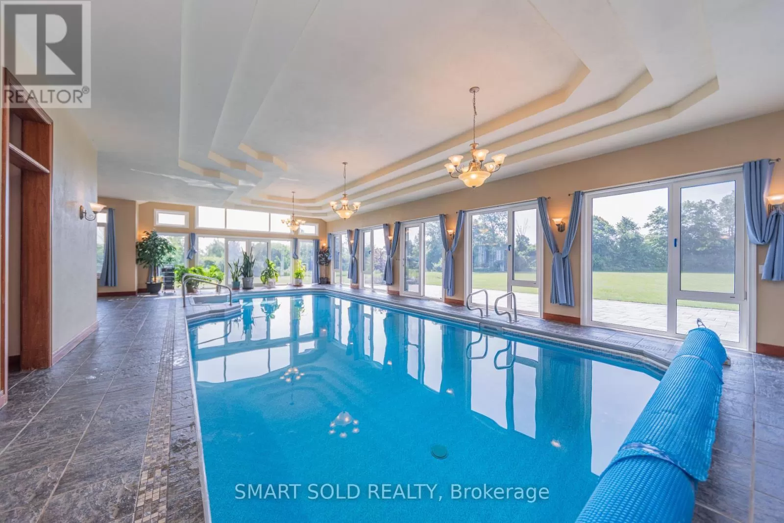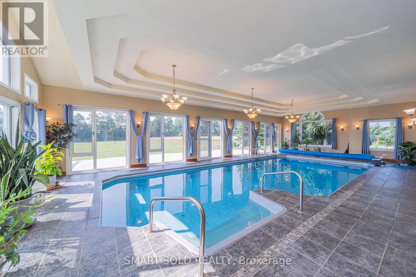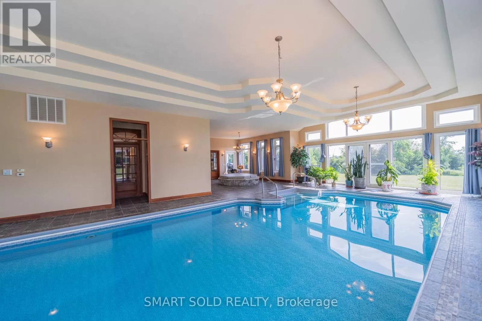 Erin / Halton Townline Set on over 96 acres of rolling countryside, this exceptional estate offers a rare blend of refined living and natural beauty. Thoughtfully designed for comfort and accessibility, the home features an elevator, a wheelchair-friendly layout, an inviting indoor pool, and a relaxing hot tub. A separate apartment above the garage provides ideal space for guests, extended family, or live-in staff. Each second-floor bedroom includes its own ensuite bath, providing comfort and privacy throughout. The lower level currently hosts a home theatre, with a recreation area. Sweeping views, serene surroundings, and timeless architectural charm make this estate a unique opportunity to own a true countryside retreat just minutes from modern amenities. This custom-built residence offers a total of over 10,000 square feet of living space, including approximately 4,320 sq ft on the main floor, 3,466 sq ft on the second level, and a spacious 1,111 sq ft attached garage. See additional details in attachments. (id:27476)