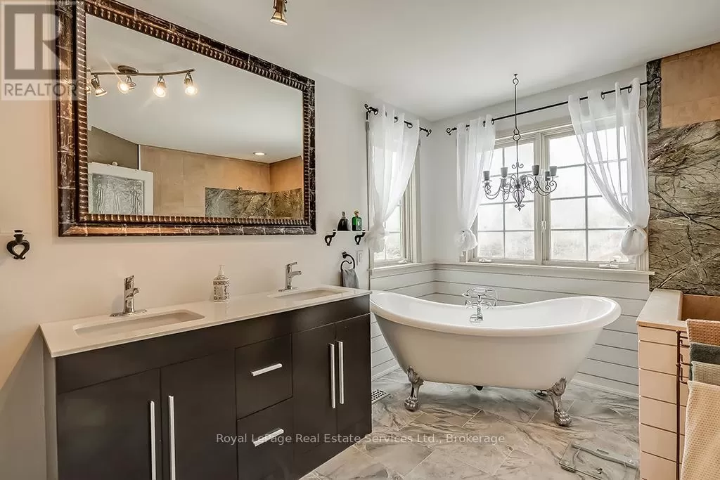 Cross Streets: Dublin Line & Turtle Lake Drive. ** Directions: Dublin Line to Turtle Lake. Welcome to 6 Turtle Lake in beautiful Halton Hills. Situated across from the picturesque and challenging Blue Springs Golf Course. This home was thoughtfully custom built for multigenerational families as it offers two fully contained apartments within the home. Surrounded by stunning landscape and expansive grounds it also can accommodate venues such as weddings, family reunions or the possibility of an airbnb! The home is expansive featuring an appealing main floor primary bedroom and ensuite, with an additional 6 bedrooms and 5 baths. There is space for everyone! Beautiful custom millwork and cabinetry throughout. Features include a second floor laundry and an additional laundry room in the lower level, walk out basement, vaulted ceiling in great room overlooked by the expansive games room on the second floor including bar, light filled breeze way leading to garage and apartment above, several cozy gas fireplaces throughout, renovated baths, lighting and flooring. Gorgeous back patio and deck to entertain family and friends. Minutes to Acton, Georgetown, Milton and the 401. This property offers your family privacy and serenity in a beautiful community yet close to amenities. Perfect for the golf enthusiast, multigenerational families or a family looking for an expansive home to share. (id:27476)