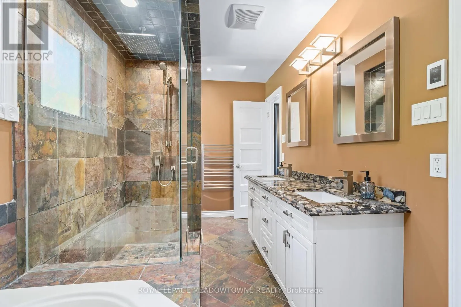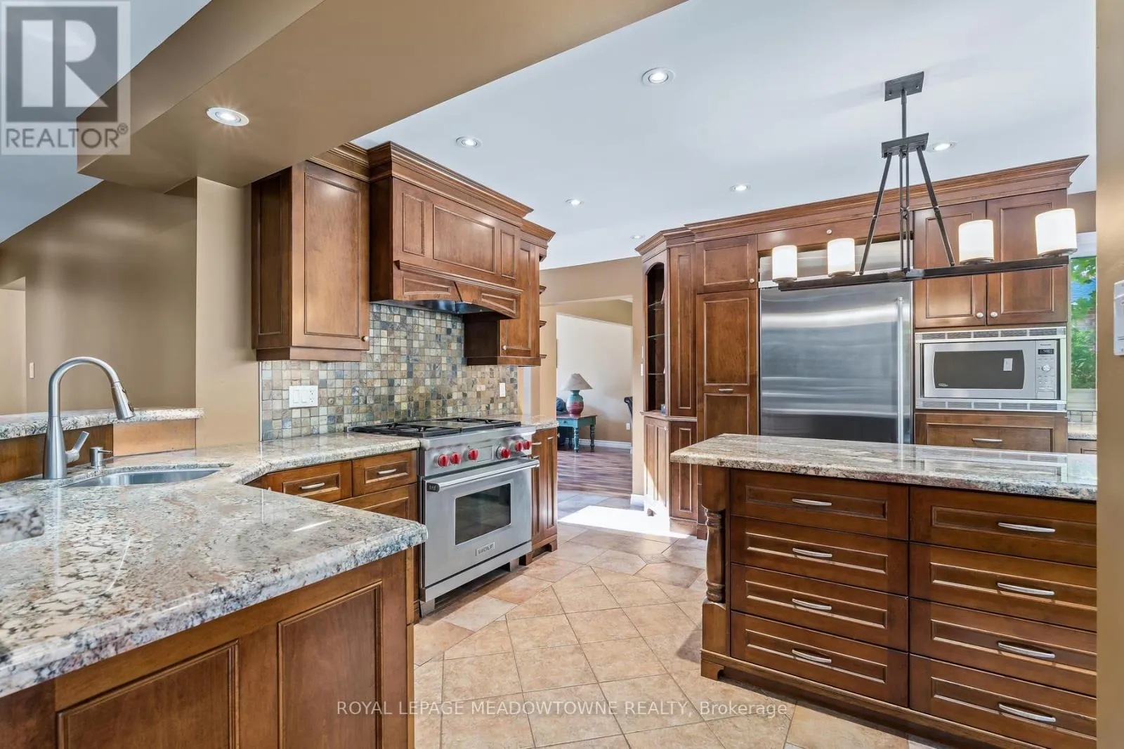 Cross Streets: Ontario/Jason. ** Directions: Hwy 7/Ewing St./Left on Ontario St. to Jason Cres. From the moment you turn onto this amazing street you'll realize just how special it is! One of the most desirable areas of Georgetown for a reason! Curb appeal is 10++. As you enter through the updated front door, you'll realize this home is special too! The perfect space for your family's next move. Hardwood/stone flooring throughout the main floor. Bright living & dining rooms are the ideal spots for family gatherings and entertaining. Speaking of entertaining, the chef in the family will appreciate the custom kitchen featuring granite counters, Wolf gas stove, S/S Fridge, B/I in Double Dishwasher & B/I S/S Microwave + a 2 zone Wine Fridge & Bar Fridge!! Main floor laundry with access to the generously sized double garage. 3 Spacious bedrooms on the upper level share the spa-like main bath with semi ensuite access from the Primary bedroom. If you need overflow space, the fully finished lower level offers an extra bedroom for guests and a luxurious 3 piece bath! While summer is winding down, there's still plenty of time to enjoy the amazing rear yard.so private you'll forget you have neighbours! A short distance to Historic Downtown with all it has to offer including shops, cafes, restaurants, library/cultural centre, seasonal Farmers Market and various annual events. Short drive to GO Train service and the amenities this great town has to offer. Make the move today to this family friendly area you wont regret it! (id:27476)
