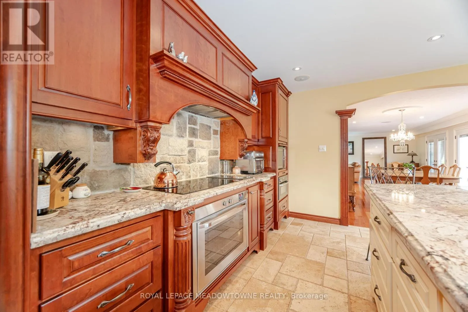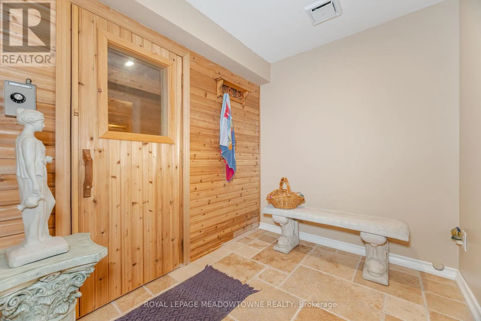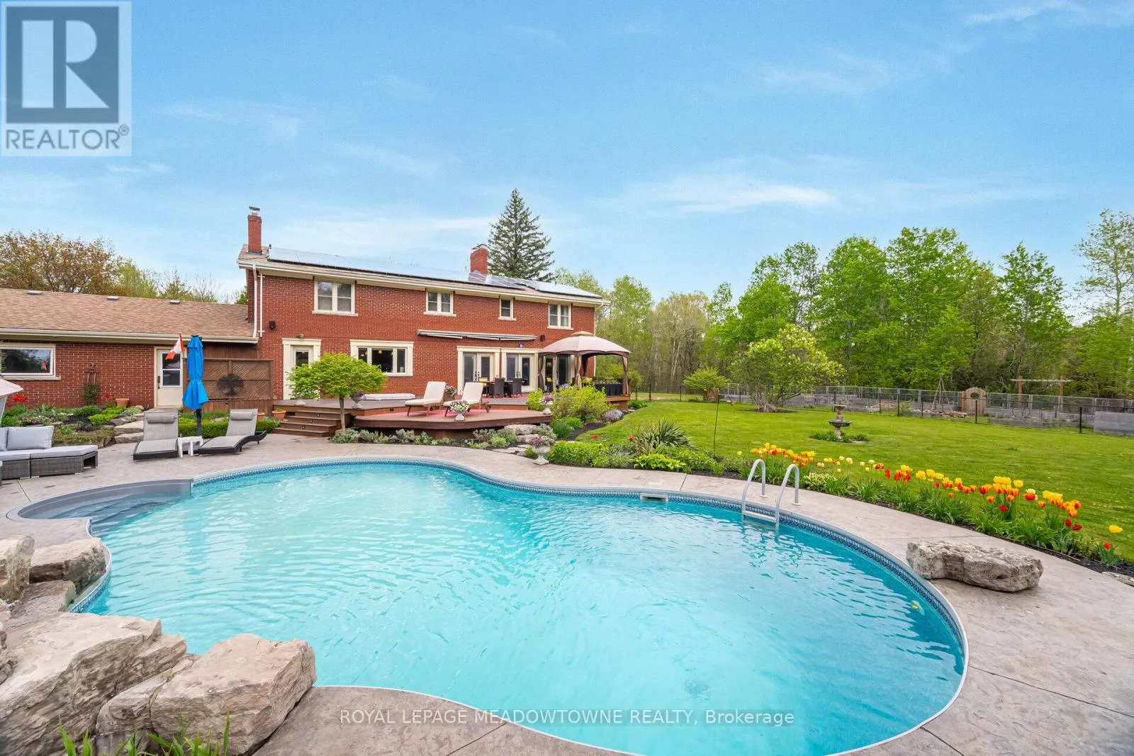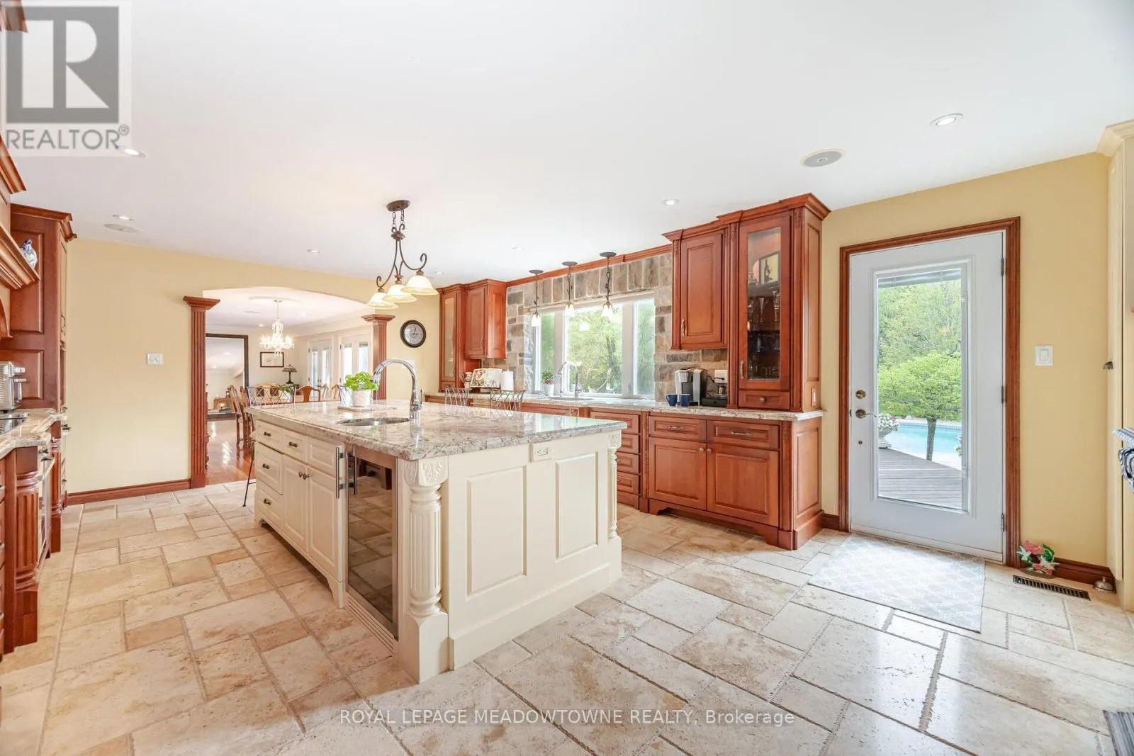 Cross Streets: 15th Sdrd And Regional Rd 25. ** Directions: RR 25 Btwn 15 Sdrd & 17 Sdrd. 19+ ACRES-Elegant Georgian-Style Estate with Luxury & Privacy Set well back from the road, this captivating 3+1 bed (can easily convert a 4th bed upstairs), 4bath Georgianstyle home rests on an expansive & private19+ acres, offering serene country living just minutes from city amenities. Meticulously updated & maintained, this home seamlessly blends timeless architectural elegance wmodern luxury. Upon entering, a grand foyer leads into spacious, sun-filled rooms enhanced by rich hardwood flooring, refined crown moulding, & sweeping views across the property. The great room, anchored by a wood-burning fireplace & expansive bay window, offers both warmth & character. Culinary enthusiasts will delight in the chefs kitchen, featuring custom cherry cabinetry, large granite island, built-in high-end appliances, & a window framing views to the pool & gardens. Step outside directly from the kitchen onto the entertaining deck that overlooks a previous gold-award winning saltwater pool by Halton Pools, hot tub, lush perennial gardens, & a 3080 enclosed vegetable garden with raised beds & cold frames. Upstairs, the luxurious primary suite is a private retreat, boasting motorized blinds, dual closets with custom organizers, & spa-like ensuite with freestanding tub, rain shower, & custom walk-in wardrobe. Two further generous bedrooms share a Jack-&-Jill style bath w'separate wet room. The fully finished basement expands the living space, featuring a rec room with fireplace, games room, a 4th bedroom, sauna, 3pc bath, cold room, & copious storage. Extras abound throughout: a pool house w'bar & change room; den with custom built-ins; a second kitchen; dedicated potting/tool rooms; robust 220-amp electrical service; access to woodland trails & Bruce Trail close by & Speyside Creek. This estate delivers on all fronts: Craftsmanship, Prestige, Amenities, Privacy, Natural Beauty, & unforgettable upscale Country setting. Rare. Exceptional. One-of-one. Dont miss the rare opportunity! (id:27476)