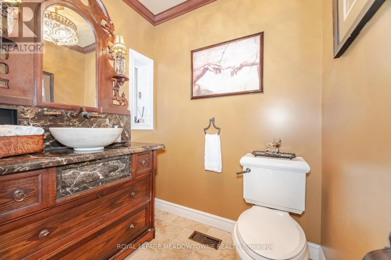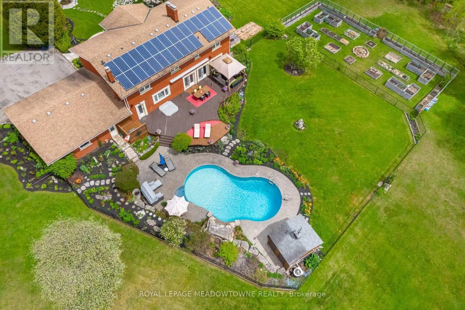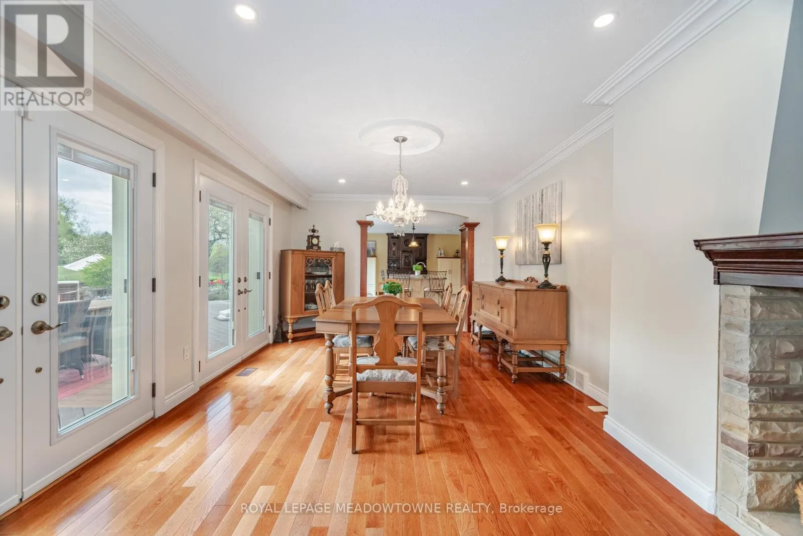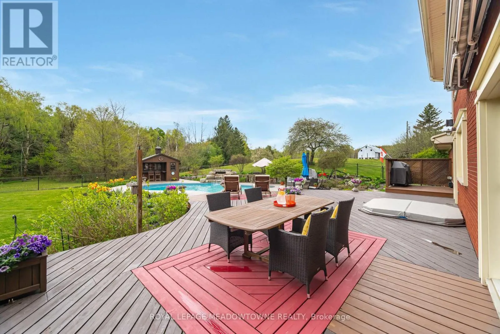 Cross Streets: 15th Sdrd And Regional Rd 25. ** Directions: RR 25 Btwn 15 Sdrd & 17 Sdrd. 19+ ACRES-Elegant Georgian-Style Estate with Luxury & Privacy Set well back from the road, this captivating 3+1 bed (can easily convert a 4th bed upstairs), 4bath Georgianstyle home rests on an expansive & private19+ acres, offering serene country living just minutes from city amenities. Meticulously updated & maintained, this home seamlessly blends timeless architectural elegance wmodern luxury. Upon entering, a grand foyer leads into spacious, sun-filled rooms enhanced by rich hardwood flooring, refined crown moulding, & sweeping views across the property. The great room, anchored by a wood-burning fireplace & expansive bay window, offers both warmth & character. Culinary enthusiasts will delight in the chefs kitchen, featuring custom cherry cabinetry, large granite island, built-in high-end appliances, & a window framing views to the pool & gardens. Step outside directly from the kitchen onto the entertaining deck that overlooks a previous gold-award winning saltwater pool by Halton Pools, hot tub, lush perennial gardens, & a 3080 enclosed vegetable garden with raised beds & cold frames. Upstairs, the luxurious primary suite is a private retreat, boasting motorized blinds, dual closets with custom organizers, & spa-like ensuite with freestanding tub, rain shower, & custom walk-in wardrobe. Two further generous bedrooms share a Jack-&-Jill style bath w'separate wet room. The fully finished basement expands the living space, featuring a rec room with fireplace, games room, a 4th bedroom, sauna, 3pc bath, cold room, & copious storage. Extras abound throughout: a pool house w'bar & change room; den with custom built-ins; a second kitchen; dedicated potting/tool rooms; robust 220-amp electrical service; access to woodland trails & Bruce Trail close by & Speyside Creek. This estate delivers on all fronts: Craftsmanship, Prestige, Amenities, Privacy, Natural Beauty, & unforgettable upscale Country setting. Rare. Exceptional. One-of-one. Dont miss the rare opportunity! (id:27476)