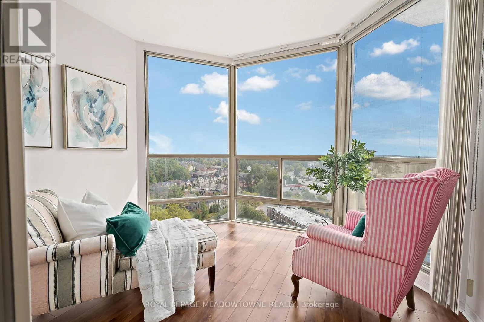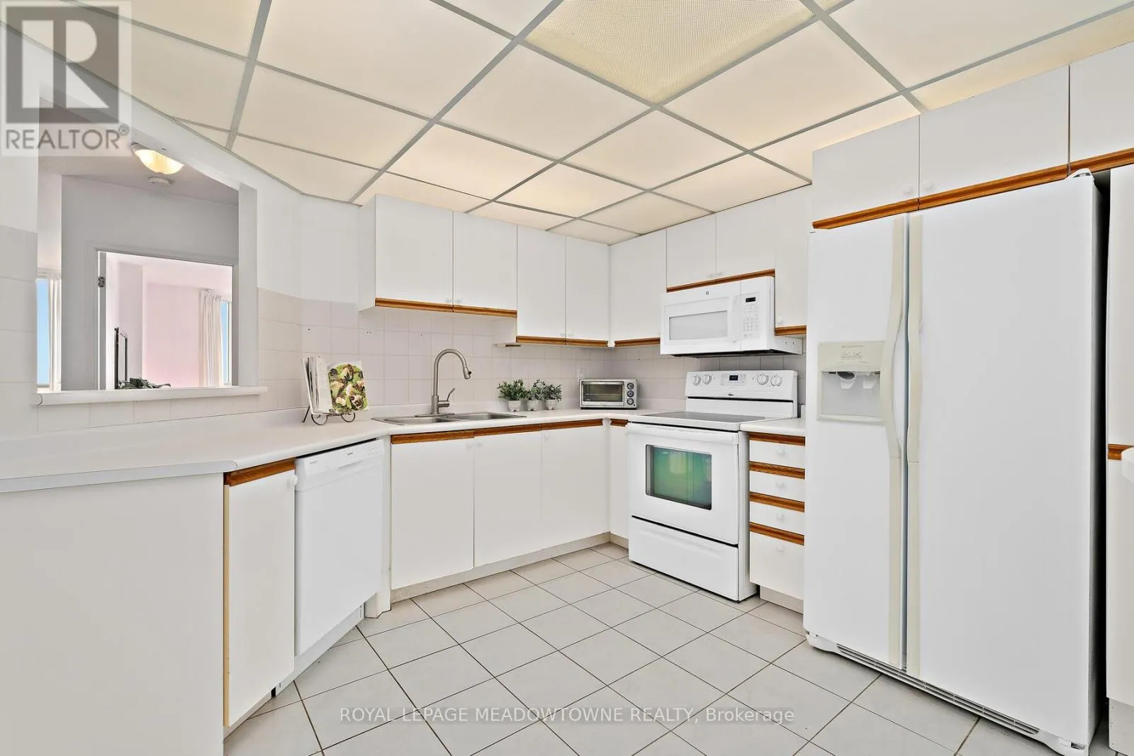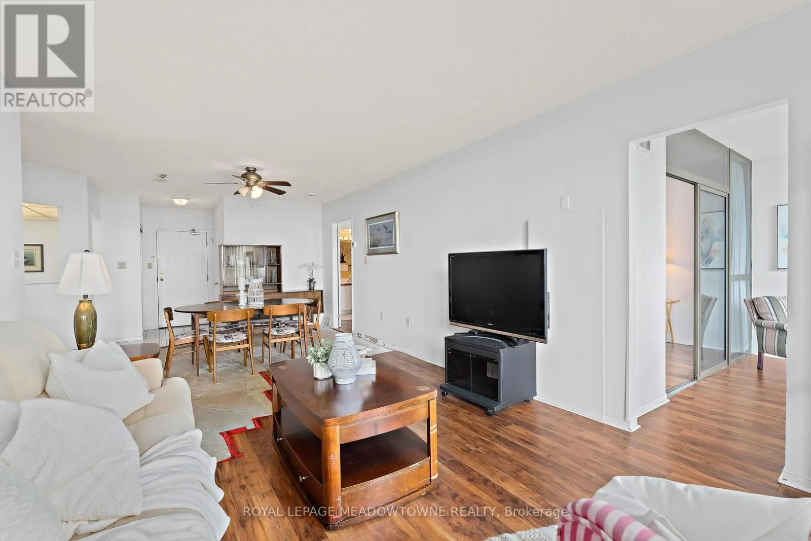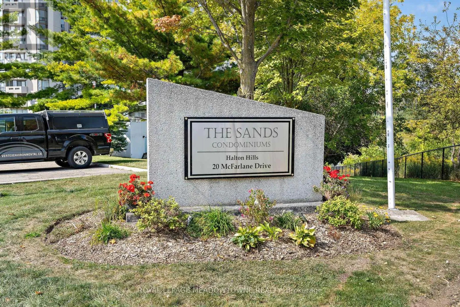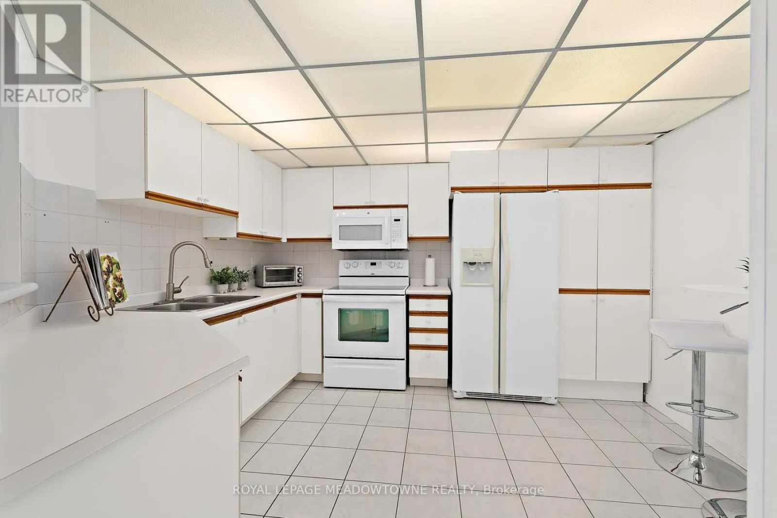 Hwy 7/Guelph St & McFarlane Welcome to Penthouse living at 'The Sands' with 2 bedrooms, sunroom, 2 full baths & rare parking for 4 vehicles (2 double/tandem spaces)! This spacious condo delivers not only an incredible lifestyle but also features you wont find elsewhere ** Located on the top floor, the suite offers higher ceilings and rooms that are filled with natural light from the floor-to-ceiling windows with sweeping southerly views of city skylines plus the escarpment. Enjoy your morning coffee or evening unwind on the private balcony or versatile sunroom while soaking in the views ** This suite offers a functional layout with a spacious open-concept living/dining area, and a large eat-in kitchen with white cabinets & pantry. The primary bedroom includes a walk-in closet and 4-piece ensuite. There's a convenient in-suite laundry with a stacked washer/dryer ** Another feature that sets this condo apart are the 2 owned tandem parking spaces with room for up to 4 vehicles conveniently located on level P1 just steps to the elevator. This is a huge bonus for multi-car households or those who value additional space. There's also an owned locker on P2 for extra storage. ** Life at 'The Sands' is carefree and amenity-rich! Condo fees include loads of amenities, Bell Fibe TV, High-speed internet, water, and more! Enjoy the indoor pool, whirlpool, sauna, fitness centre, library, hobby room/workshop, party room plus games room with billiards, ping pong, dartboard & shuffleboard. The fabulous outdoor amenities consist of a tennis/pickleball court, gazebo, sundeck and BBQ area ** If you like to keep busy, there's lots going on at this smoke-free property, from exercise classes & walking groups to happy hours, movie nights & potlucks ** This is low-maintenance easy condo living at its best with trails, shops, restaurants, grocery stores, the GO bus, and so much more nearby ** Don't miss the chance to call this fabulous penthouse your home! (id:27476)