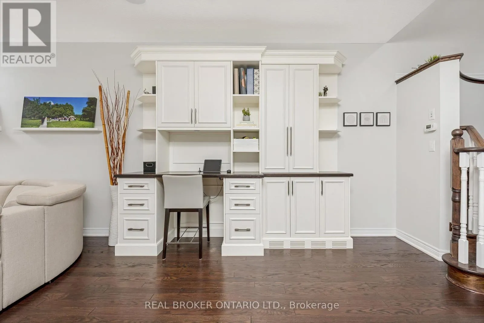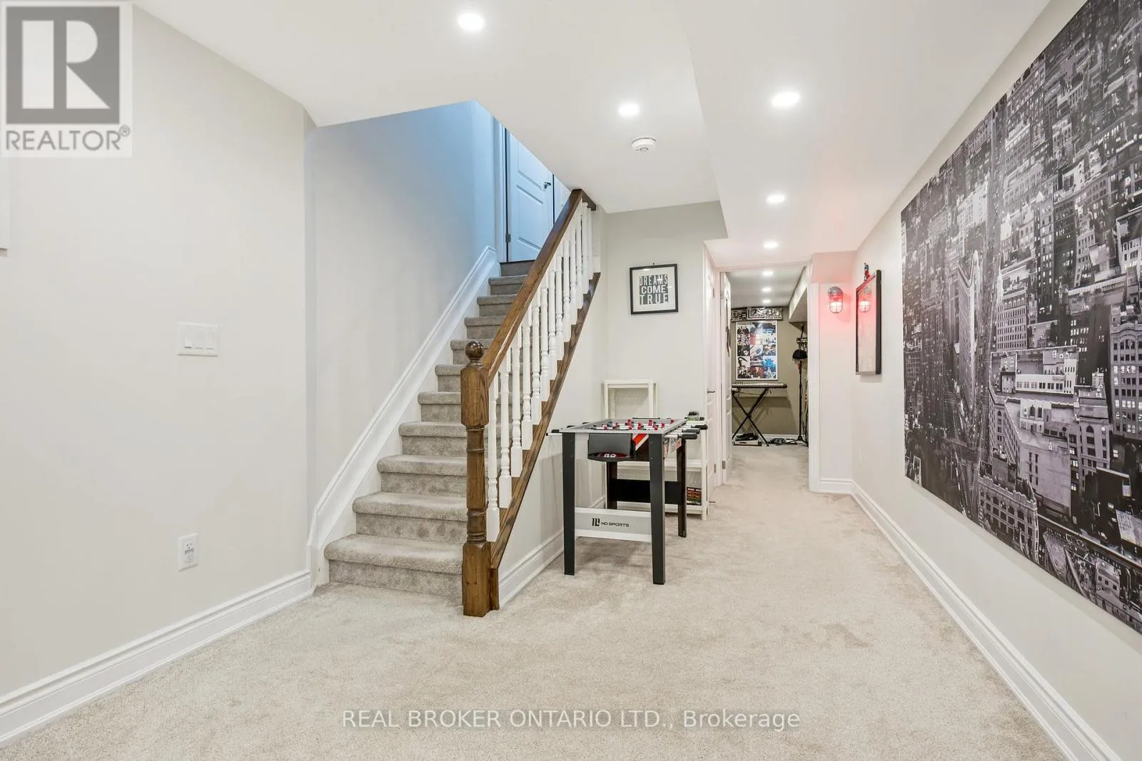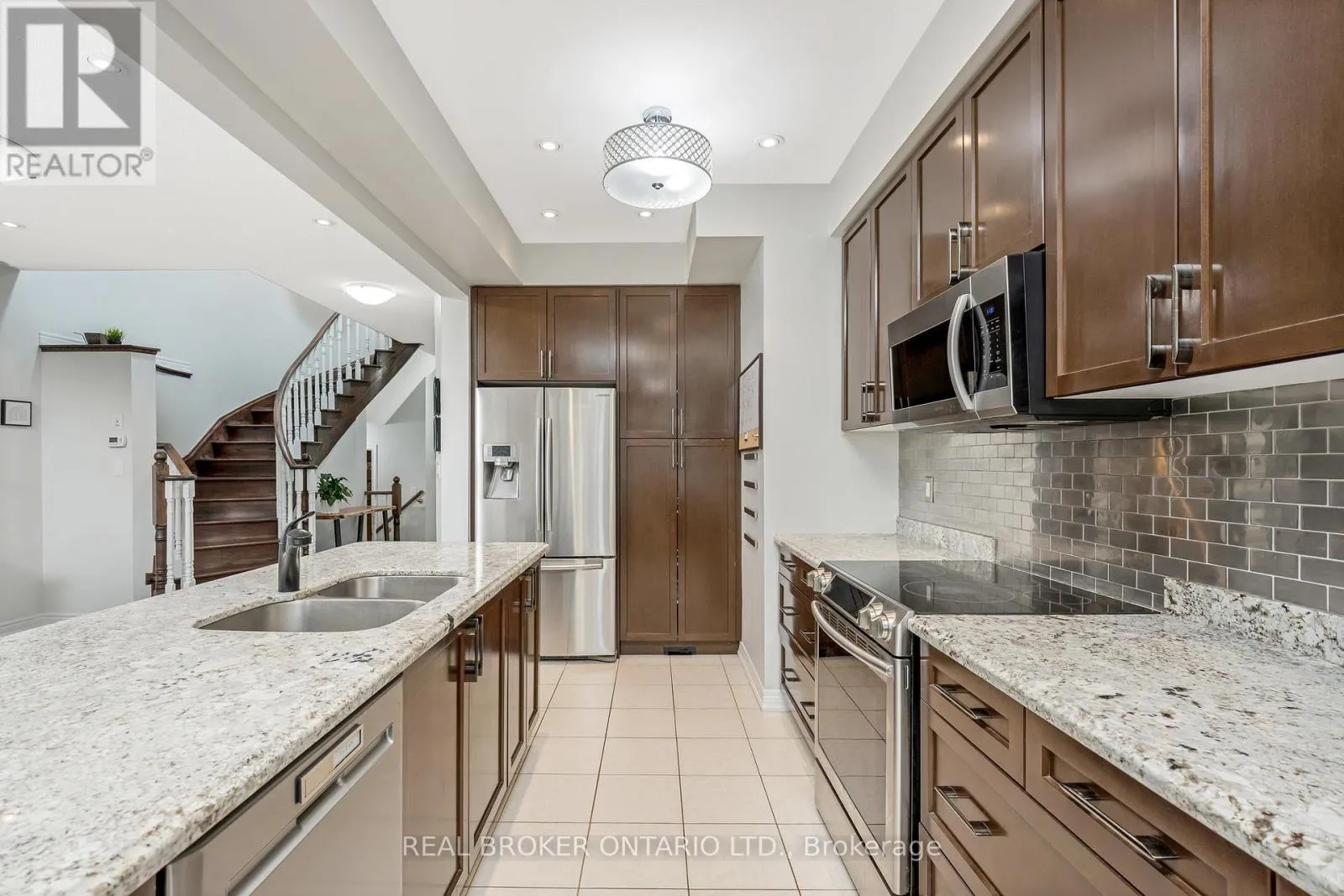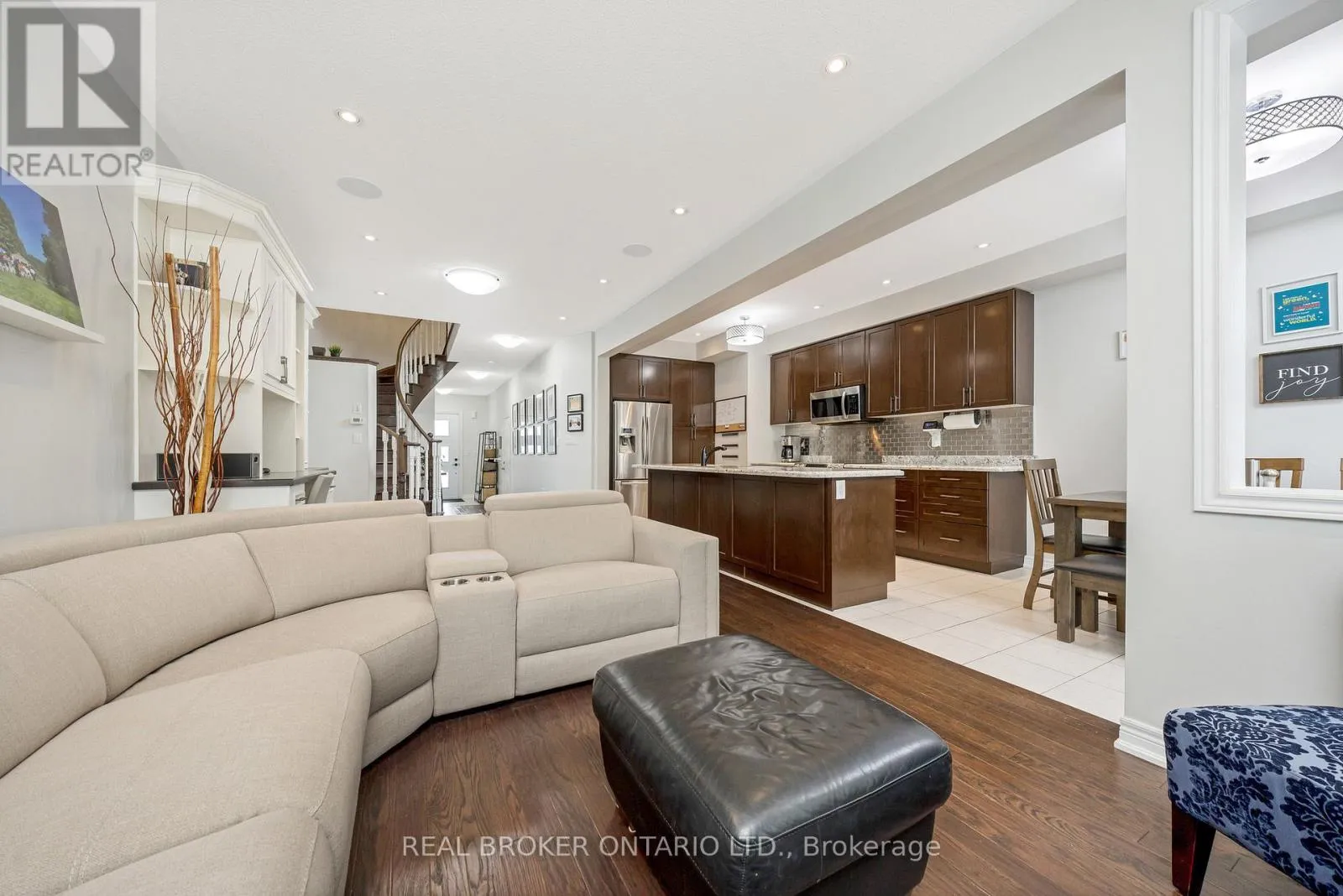 Danby Rd/Diamond Leaf Ln This gorgeous executive townhome offers 3 beds, 2.5 baths and a finished basement! Steps from schools, parks, shops and everything Georgetown South has to offer! The main floor offers 9' ceilings, hardwood floors, potlights throughout, a large living room combined with an office/flex space with a custom built-in wall unit, a spacious foyer with upgraded oversized front door, direct garage access, in-ceiling speakers and a 2pc bath. The gorgeous kitchen has extended uppers, stainless steel appliances, granite countertops, a pantry, a huge island with breakfast bar, pot drawers and a dining area with access to the backyard. Upstairs offers a huge primary suite with a walk-in closet and 5-pc ensuite with glass shower and soaker tub, plus 2 more good size bedrooms & a main 4pc bath. The fully finished basement offers a large rec room with a fireplace, potlights, and a private den/office plus great storage! The backyard offers low maintenance living with custom landscaping/patio! (id:27476)