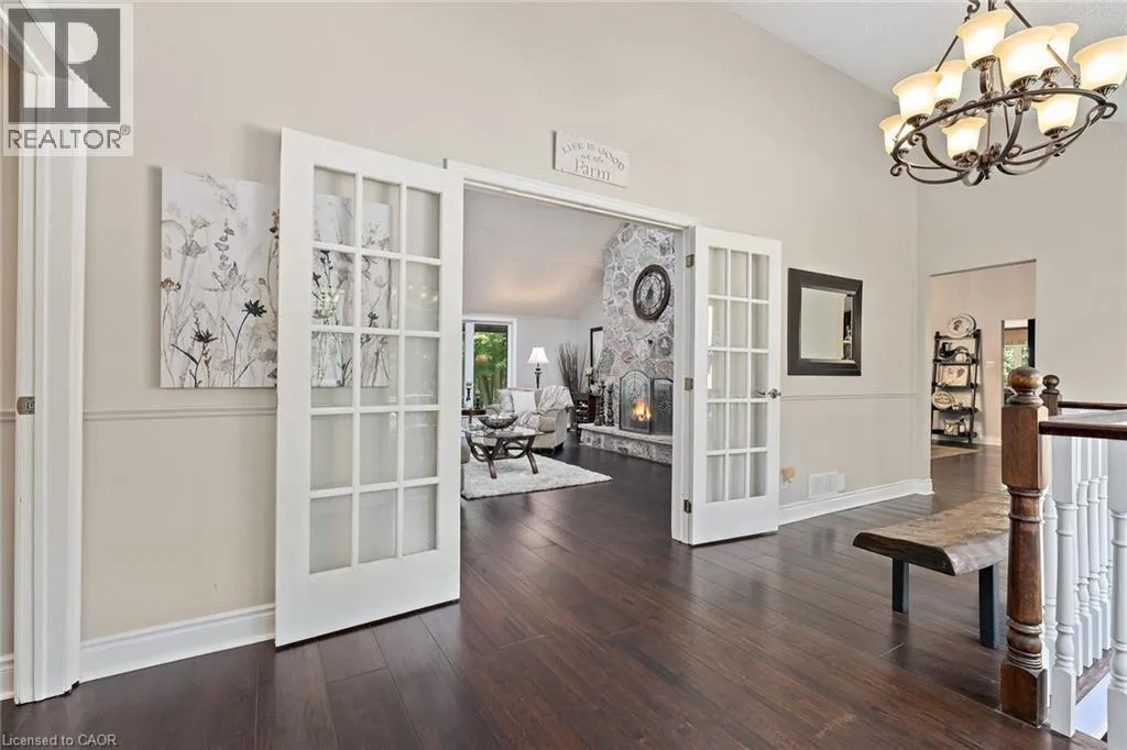 17th Sideroad to Dublin Line Truly magical 10+ acre Halton Hills country estate offering an ideal equestrian set up, hobby farm, and absolute peace and tranquility that country living has to offer. Potential for an in-law suite and the versatility to accommodate a multi-generational family. At the heart of the property sits a fully renovated home offering over 5,000 square feet of thoughtfully designed living space. Inside, the scale of the home impresses immediately, soaring ceilings, expansive living areas, oak/walnut hand scraped hardwood flooring and natural light streaming through the oversized windows. A grand living room offers the perfect setting to gather by the cozy flag stone double sided wood burning fireplace radiating heat to both the living room and the dining room/kitchen area. Visitors will agree that the covered lanai situated just off the primary suite is one of the most serene spaces within the home. Take note of the sigh you release once you see this spa like space and to add a cherry on top, you can head over to the hot tub for further relaxation. Mature trees, including Maple trees, carefully preserved and nurtured over generations, create a breathtaking landscape that changes with the seasons. Walking paths weave through the grounds, inviting you to explore the property at your own pace, whether its an early morning stroll, a quiet afternoon horseback ride with nature, or a sunset walk under a canopy of leaves. Every corner of the land feels alive. If you are seeking a move from the hustle and bustle of the city while remaining in close proximity to all conveniences, this property offers the ideal balance of privacy and accessibility. (id:27476)