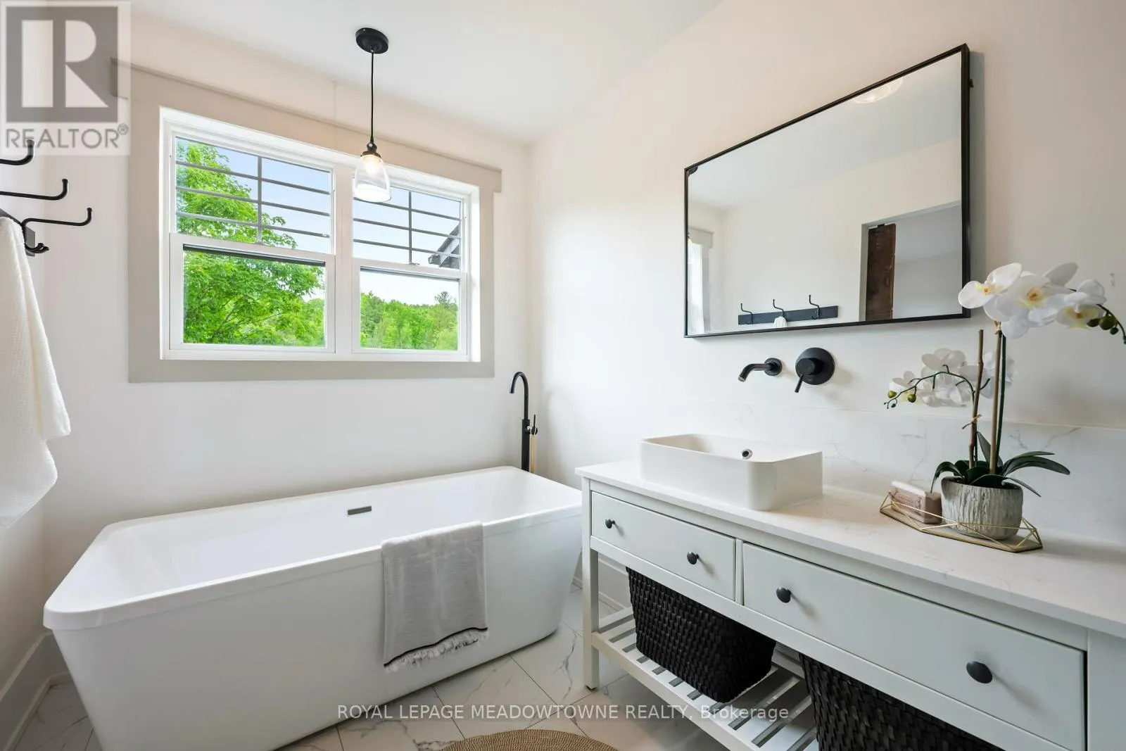 TENTH LINE & 27 SDRD Custom Built 2019 Modern Farmhouse Retreat Surrounded by Nature w approx 3300sq ft finished sq ft, 5 bdrms, 2 kitchensNestled between the Silver Creek and Terra Cotta Conservation Areas, this custom-built modern farmhouse offers the perfect country retreat just 10 minutes from Georgetown, Erin, and Brampton, with easy access to highways.Situated on just under 2 exquisite acres abutting conservation areas, minutes to the Credit River and the GlenWilliams Arts District shops and restaurantsDesigned with a seamless blend of contemporary style and country charm, made for family living & entertaining with wide open spaces and a welcoming layout.The chefs kitchen is a showstopper, featuring a full-size side-by-sidefridge and freezer, a dual fuel five-burner gas stove, and abundant custom cabinetry. Originally designed as afour-bedroom home, the current owners have converted the 4th bdrm into an expansive dressing room connected tothe primary suite complete with balconey The conversion is easily reversible as the original framing remains. Theprimary ensuite features a standalone, oversized soaker tub perfectly positioned beneath windows that framebreathtaking views of the Niagara Escarpment.The two additional bedrooms are generously sized with large closetsand picturesque views from every window. The finished lower level offers a private one-bedroom suite with aseparate side entranceideal for guests, multi-generation or teen hangouts. A separate home gym adds functionalityto the space.Enjoy landscaped grounds, gated long private driveway , a covered front porch, and a serene covered back porchoverlooking mature trees and open skies. The oversized two-car garage includes convenient rear yard access andEVCWell is exceptional with 5 gallon/minute flow rate ( attachment) Home drawings pdf avail. Generlink transfer switchfor back up power.Septic, furnace, windows, shingles, electrical (200amp), plumbing 2019. AC 2025.Garage electric upgrade 2024 (id:27476)