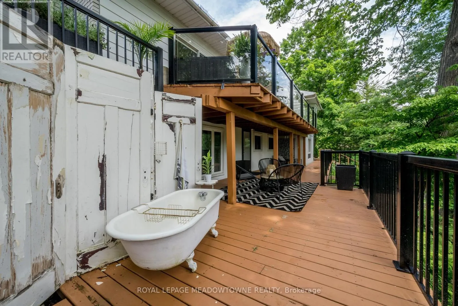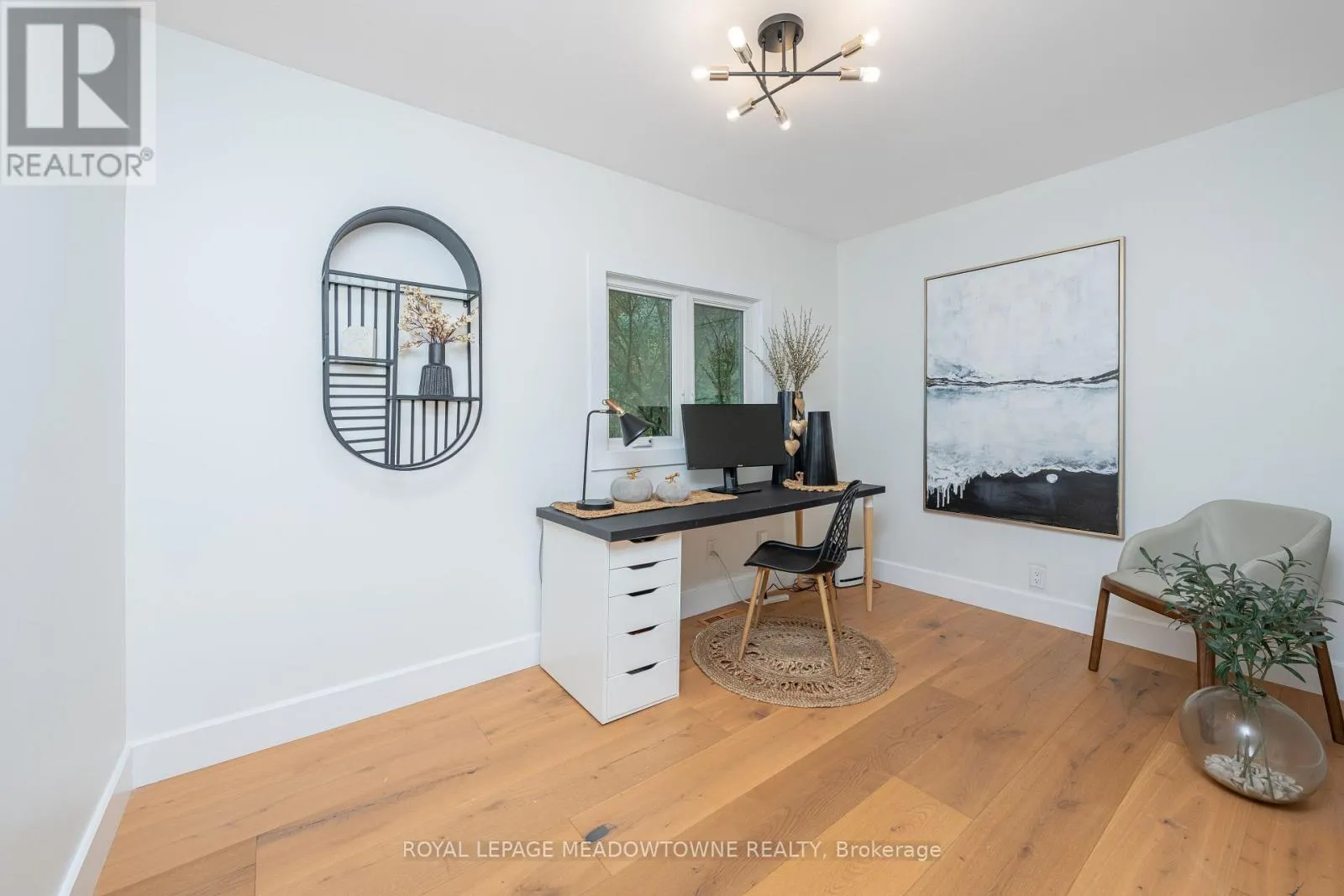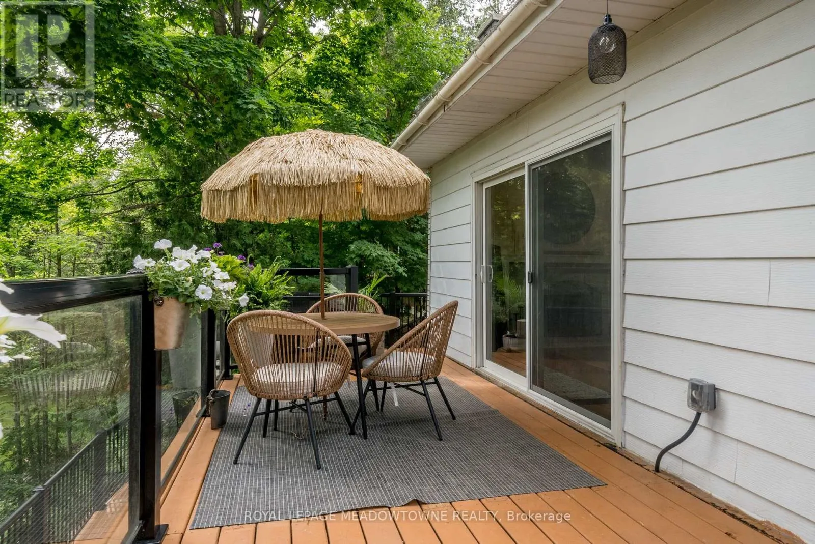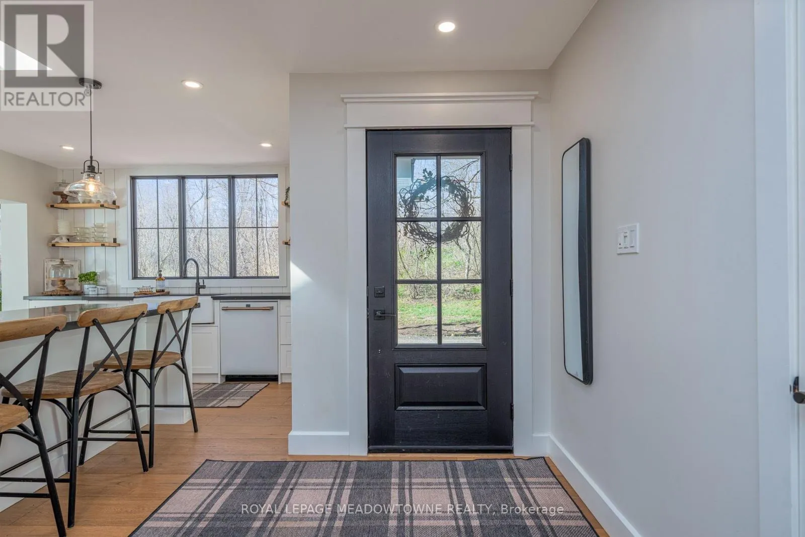Cross Streets: Main St / Mountain St. ** Directions: . Welcome to this beautifully reimagined 4-bedroom home, privately nestled along a quiet gravel lane in the scenic village of Glen Williams. Set on nearly an acre with uninterrupted, year-round views of the Credit River, this property offers a rare fusion of peaceful nature and modern elegance. Step into the inviting sunroom -- bathed in natural light, its the perfect space to welcome guests, set up a creative home office, or simply relax with a good book. Inside, the main floor features stunning white oak floors and a breezy, open-concept layout that effortlessly connects the kitchen, dining, and living areas -- ideal for both everyday life and memorable entertaining. At the heart of the home, the chef-inspired kitchen combines functionality with elevated design. It boasts top-of-the-line Café appliances, ample cabinetry, and a striking picture window above the sink, framing views of the surrounding landscape. Upstairs, the serene primary suite offers a generous retreat, complete with a contemporary ensuite and space to unwind. Glass railings lead to the fully finished walkout basement, where abundant natural light and luxury vinyl plank flooring create a warm, open ambiance. This level includes a spacious family room, an additional bedroom and full bathroom, plus a versatile workshop area that could easily serve as a guest suite or creative studio. Outside, expansive decks provide a front-row seat to the river's beauty -- perfect for morning coffee, weekend lounging, or evenings under the stars. Offering the best of both worlds, this secluded escape is just seven minutes from the Georgetown GO Station, putting city access within easy reach while enjoying the charm and tranquility of Glen Williams. (id:27476)
