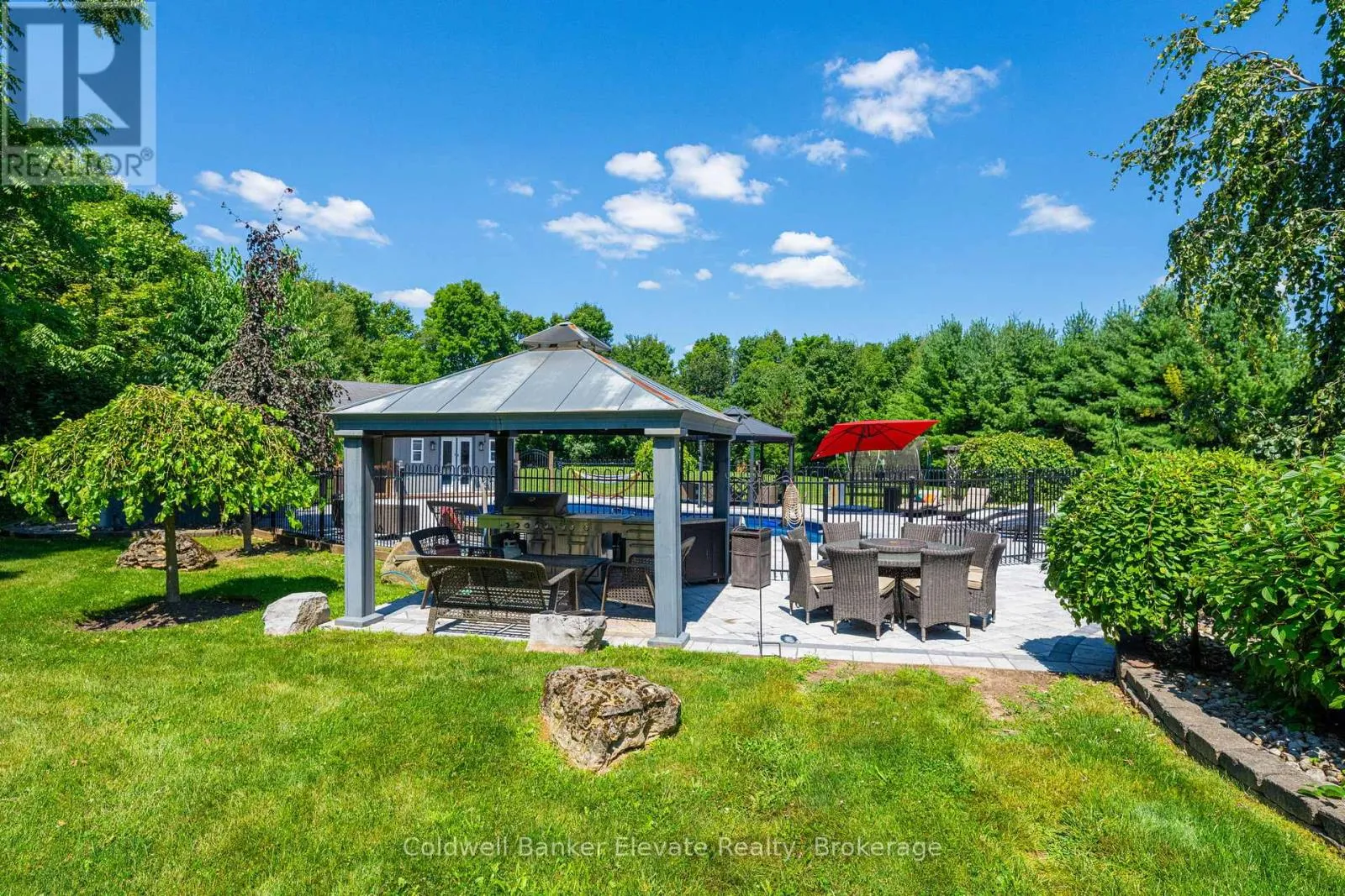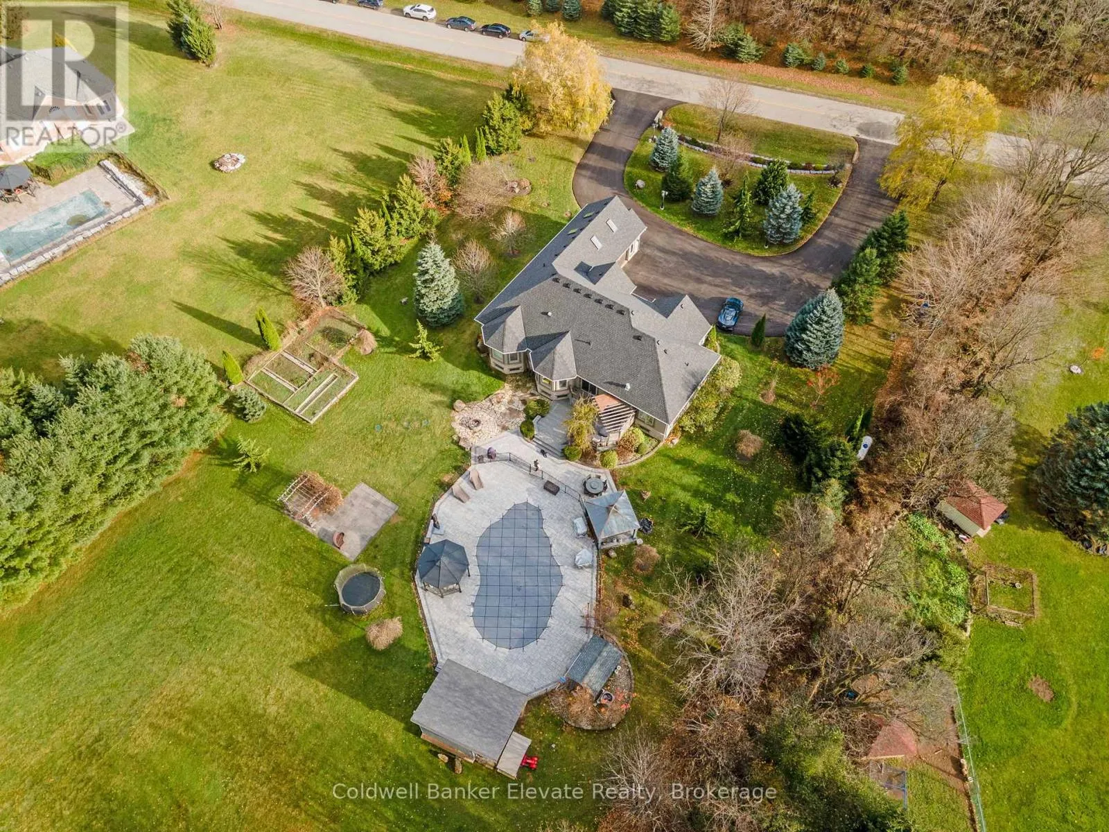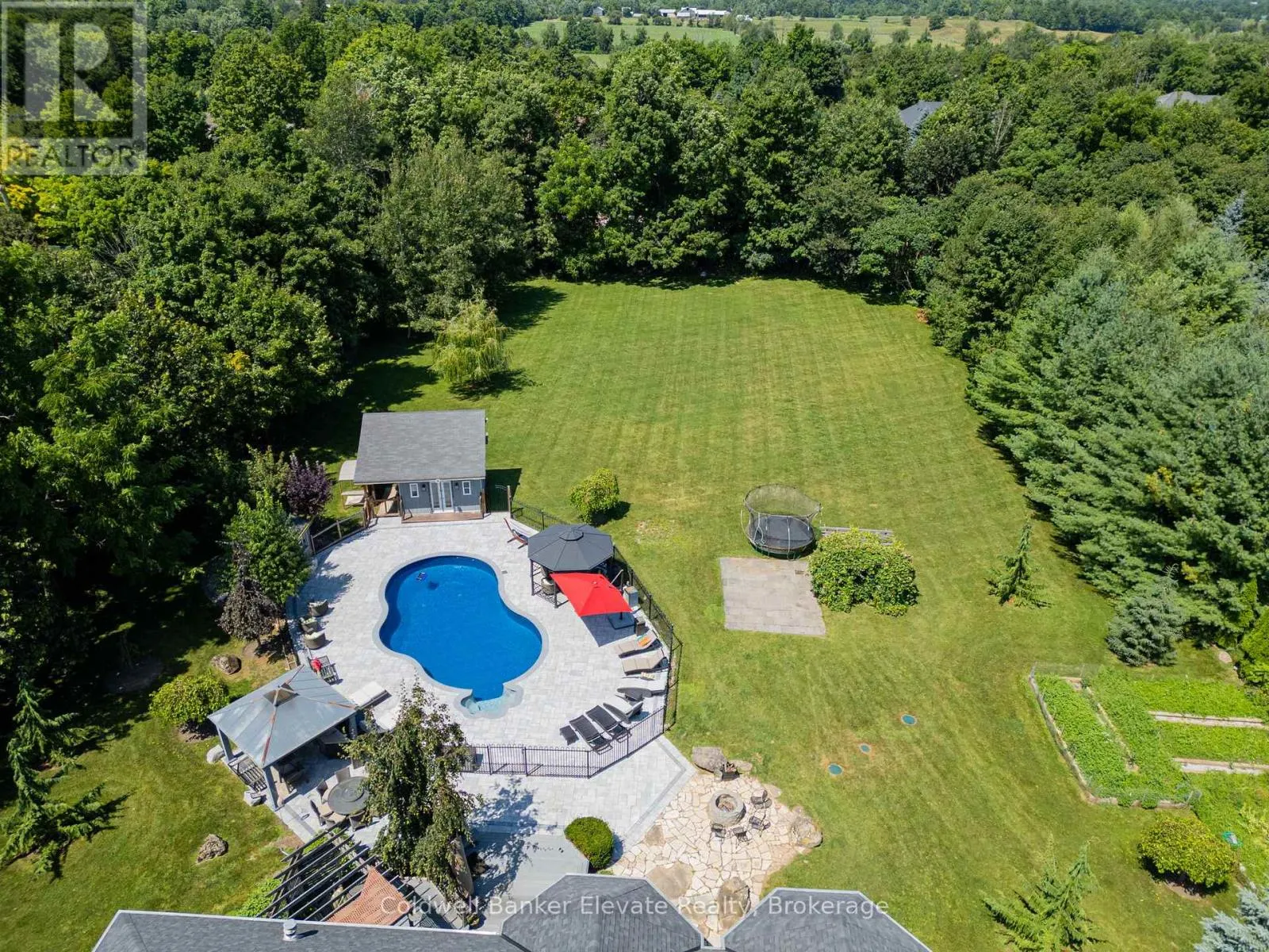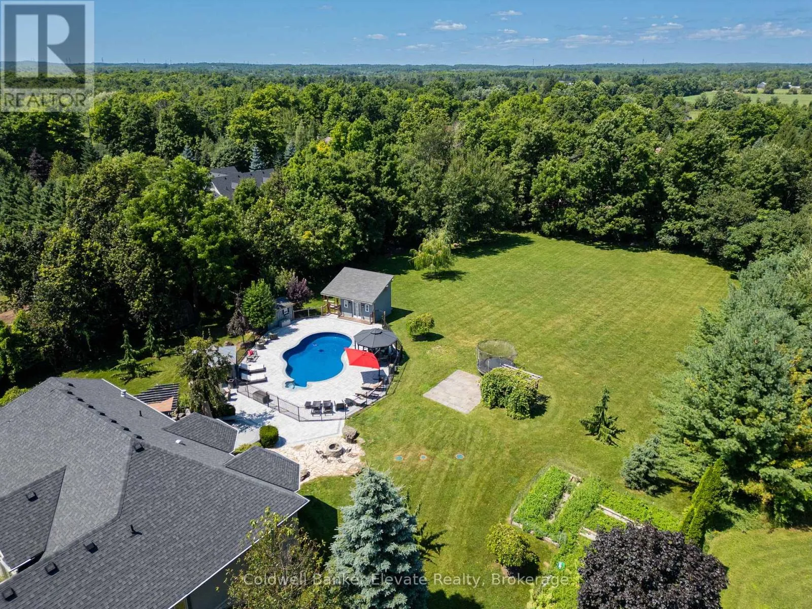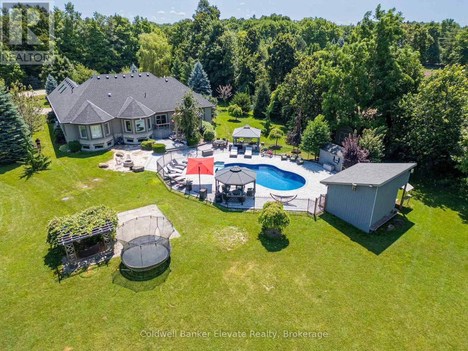 Cross Streets: 8 Line & Abbitt Crescent. ** Directions: Continue North on Hwy 7. Turn right on Side Rd 27 then continue on 8 Line to Abbitt Crescent. Turn right on Abbitt Cresent. Welcome to 4 Abbitt Crescent, a custom-built home offering unparalleled luxury & privacy on over 2 acres of beautifully treed land. With 5 spacious bedrooms & 3 modern, upgraded bathrooms, this residence combines elegance & comfort at every turn. Upon entering, you're greeted by an expansive open-concept layout with soaring high ceilings & large windows that fill the home with natural light. The upgraded chefs kitchen features stainless steel appliances, sleek Caesarstone countertops, and an oversized island, seamlessly connecting to the living and dining areas perfect for both everyday living & entertaining. Radiant floor heating runs throughout, and the home is carpet-free (excluding staircases). The bright loft, featuring large skylights, currently serves as a bedroom but offers flexible potential as a home office, entertainment space, or additional lounge area. The modern bathrooms showcase contemporary fixtures, with the primary ensuite offering a spa-like retreat complete with a soaking tub & glass shower. Downstairs, the open layout of the recreation room includes an impressive in-home gym, sauna, tanning booth, offering a full wellness experience while still providing ample space. The fully finished basement also features one of the bedrooms and an office with built-in cabinetry, which can easily be converted into a sixth bedroom ideal for guests or extended family. A 2.5-car garage and a newly paved circular driveway accommodate over 20 vehicles, adding both functionality and convenience. Recent updates include a new roof & windows (completed in the last few years), extensive professional landscaping throughout. The backyard features a private oasis with an inground saltwater pool & large pool house, surrounded by mature trees & lush shrubbery. The pool area has been enhanced with brand-new interlocking & updated equipment, including a new pump! As a bonus, ownership includes a certificate for 1/20th of the 43 shared acres held by residents of Abbitt Cres. (id:27476)