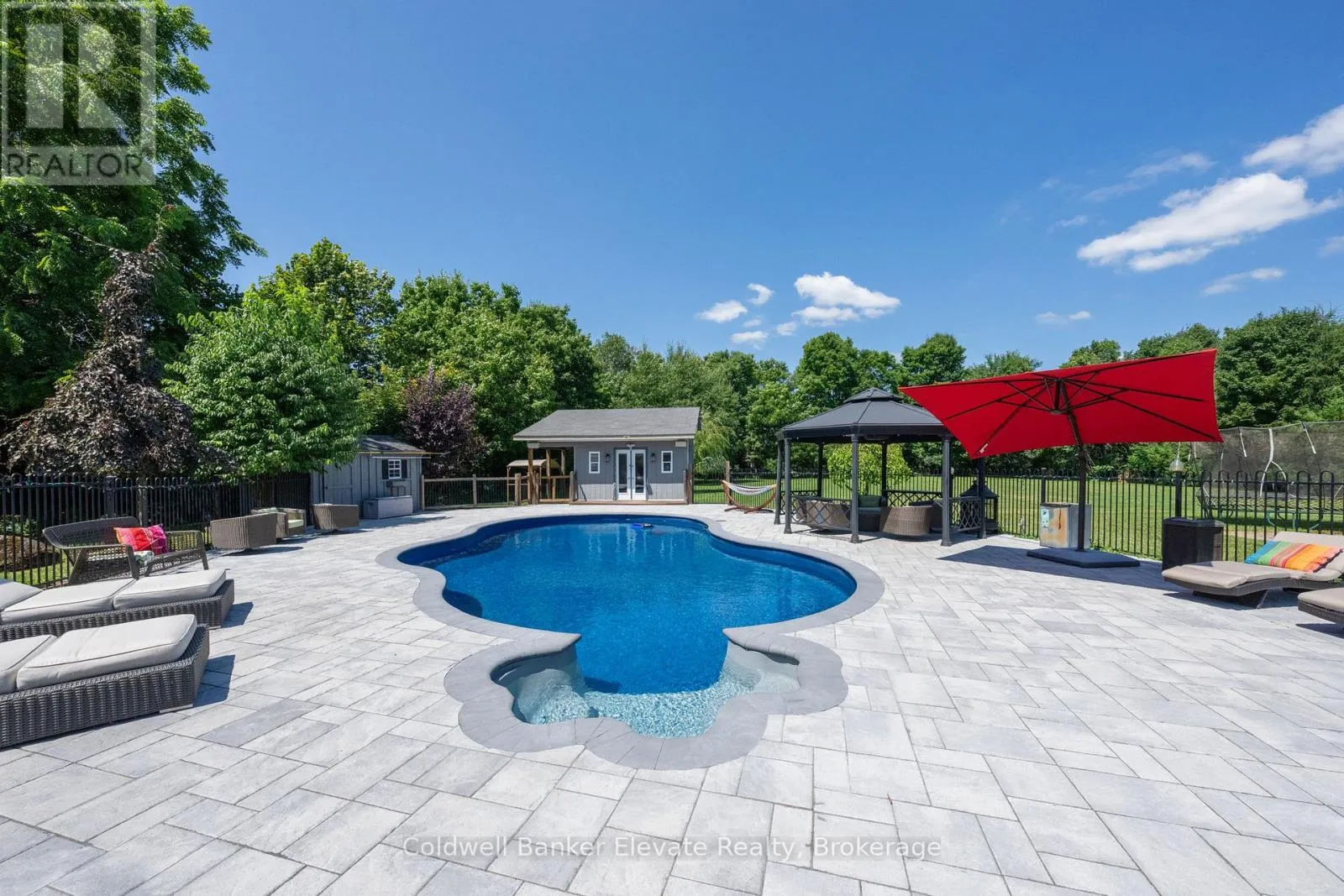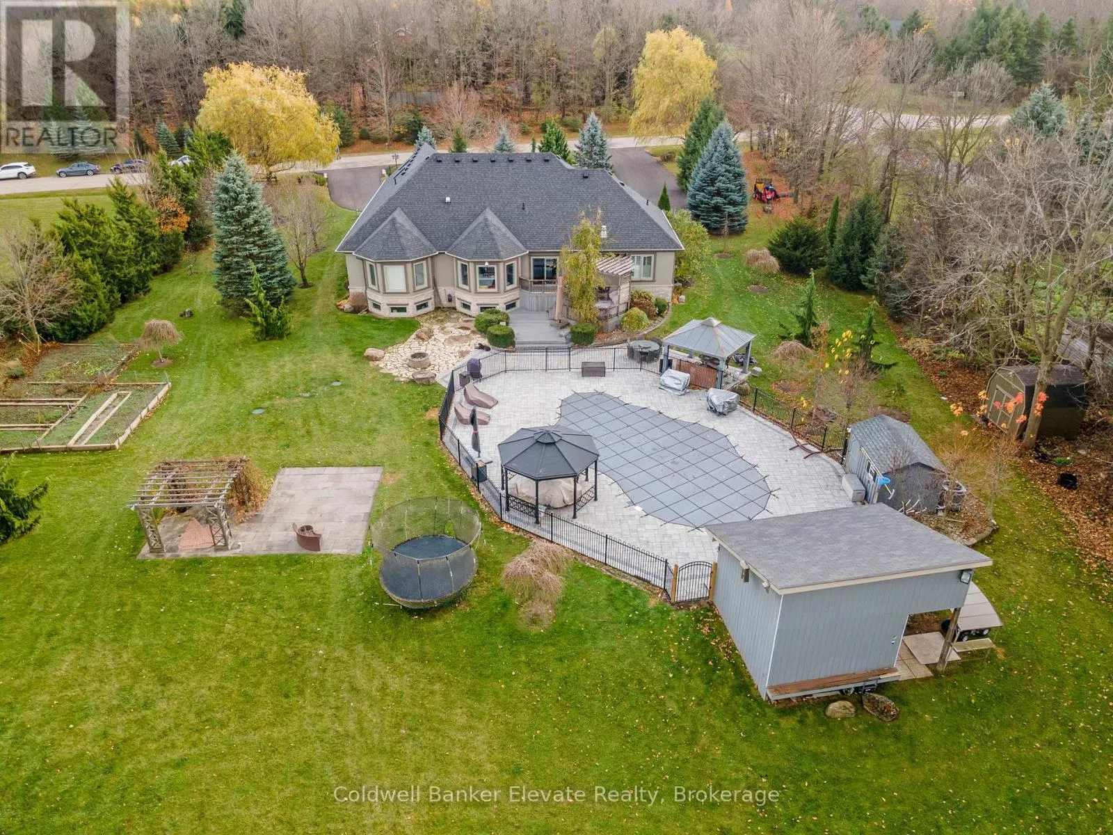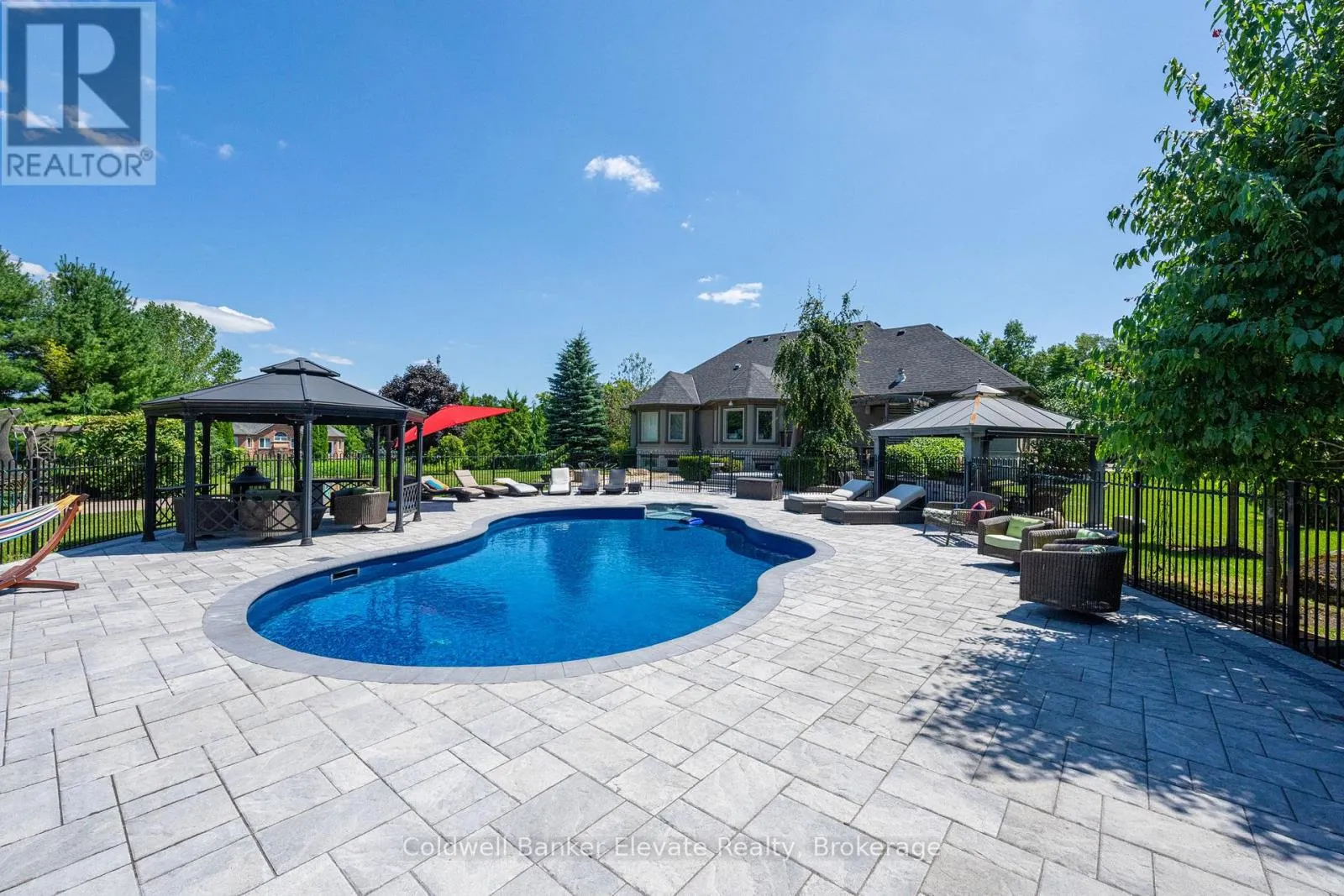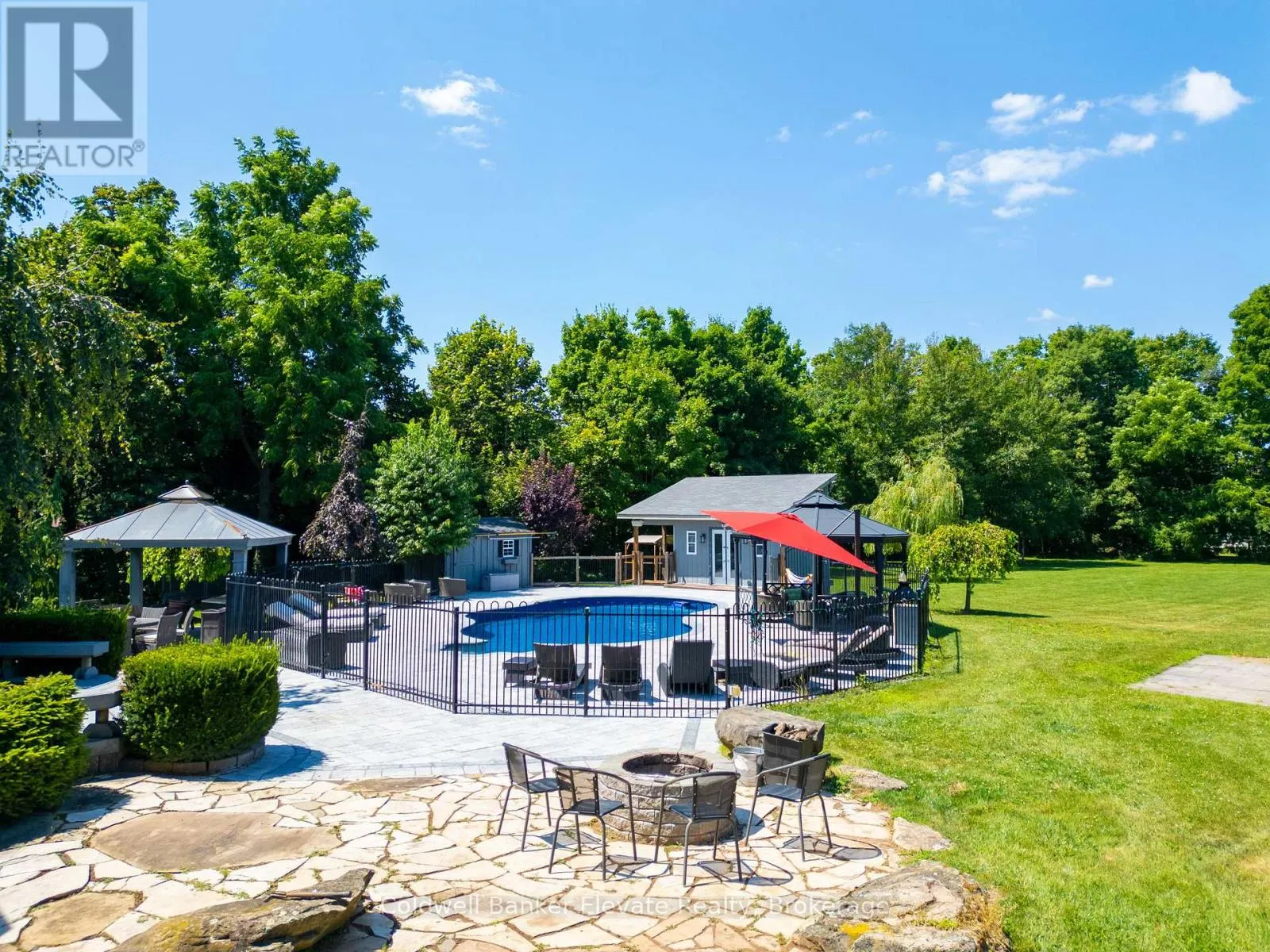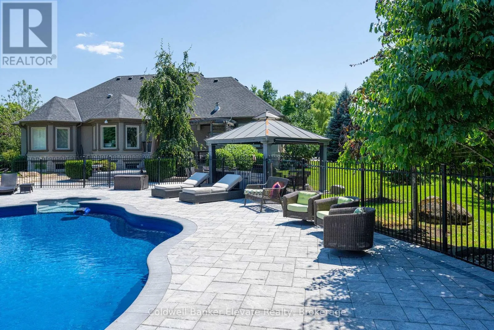 Cross Streets: 8 Line & Abbitt Crescent. ** Directions: Continue North on Hwy 7. Turn right on Side Rd 27 then continue on 8 Line to Abbitt Crescent. Turn right on Abbitt Cresent. Welcome to 4 Abbitt Crescent, a custom-built home offering unparalleled luxury & privacy on over 2 acres of beautifully treed land. With 5 spacious bedrooms & 3 modern, upgraded bathrooms, this residence combines elegance & comfort at every turn. Upon entering, you're greeted by an expansive open-concept layout with soaring high ceilings & large windows that fill the home with natural light. The upgraded chefs kitchen features stainless steel appliances, sleek Caesarstone countertops, and an oversized island, seamlessly connecting to the living and dining areas perfect for both everyday living & entertaining. Radiant floor heating runs throughout, and the home is carpet-free (excluding staircases). The bright loft, featuring large skylights, currently serves as a bedroom but offers flexible potential as a home office, entertainment space, or additional lounge area. The modern bathrooms showcase contemporary fixtures, with the primary ensuite offering a spa-like retreat complete with a soaking tub & glass shower. Downstairs, the open layout of the recreation room includes an impressive in-home gym, sauna, tanning booth, offering a full wellness experience while still providing ample space. The fully finished basement also features one of the bedrooms and an office with built-in cabinetry, which can easily be converted into a sixth bedroom ideal for guests or extended family. A 2.5-car garage and a newly paved circular driveway accommodate over 20 vehicles, adding both functionality and convenience. Recent updates include a new roof & windows (completed in the last few years), extensive professional landscaping throughout. The backyard features a private oasis with an inground saltwater pool & large pool house, surrounded by mature trees & lush shrubbery. The pool area has been enhanced with brand-new interlocking & updated equipment, including a new pump! As a bonus, ownership includes a certificate for 1/20th of the 43 shared acres held by residents of Abbitt Cres. (id:27476)