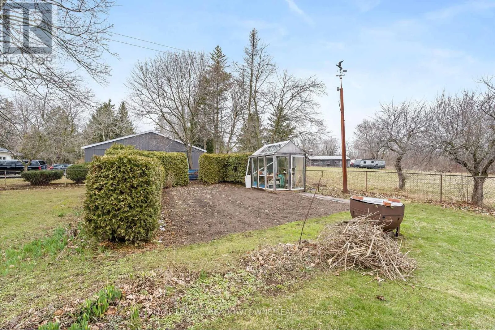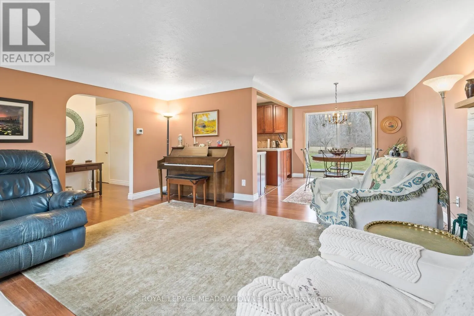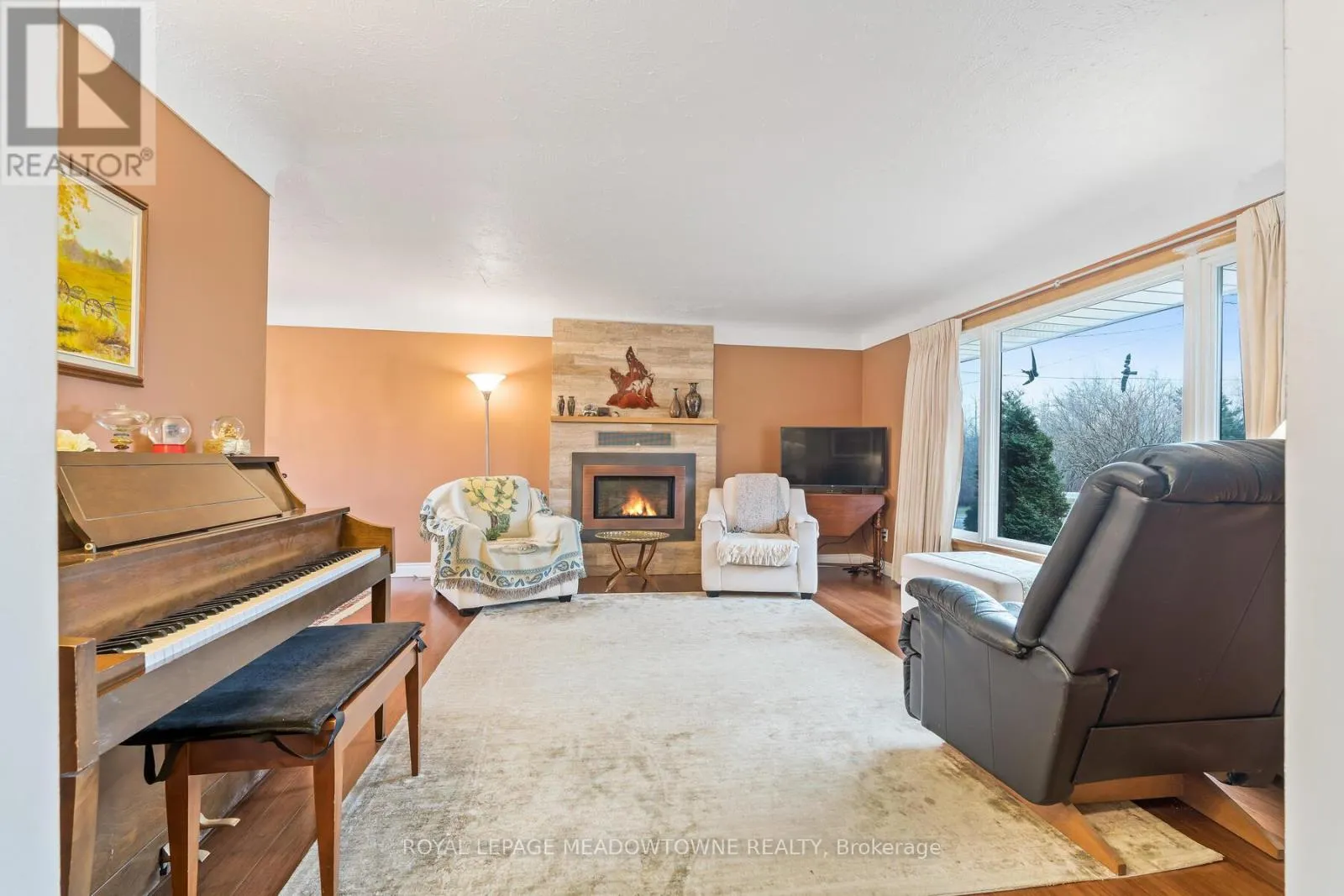 Cross Streets: HWY 25 BETWEEN 15&17TH SIDEROADS. ** Directions: HWY 25 NORTH OF 15TH SIDEROAD. Welcome to this well maintained country 3 bedroom bungalow offering 1300 sqft + 1300 basement with garage access. Located on a beautiful 1/2 acre property, you'll love sitting in the screened in porch (27'x15') overlooking the farmland beyond or gardening in the greenhouse. The open concept living & dining rooms have bamboo floors, beautiful picture window and propane fireplace for those cozy winter evenings. The kitchen has been updated with pantry, backsplash, breakfast bar and walk-out to the screened in porch. Updated 4 piece bathroom. For additional living space you'll find the partially finished basement, laundry room with rough-in for sink, large storage room & utility room. Access from garage to basement. **Brand new propane furnace (June 2025) (id:27476)