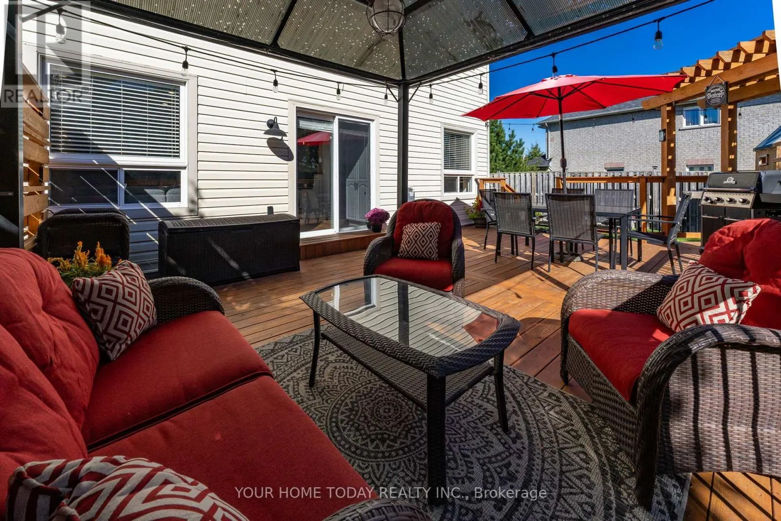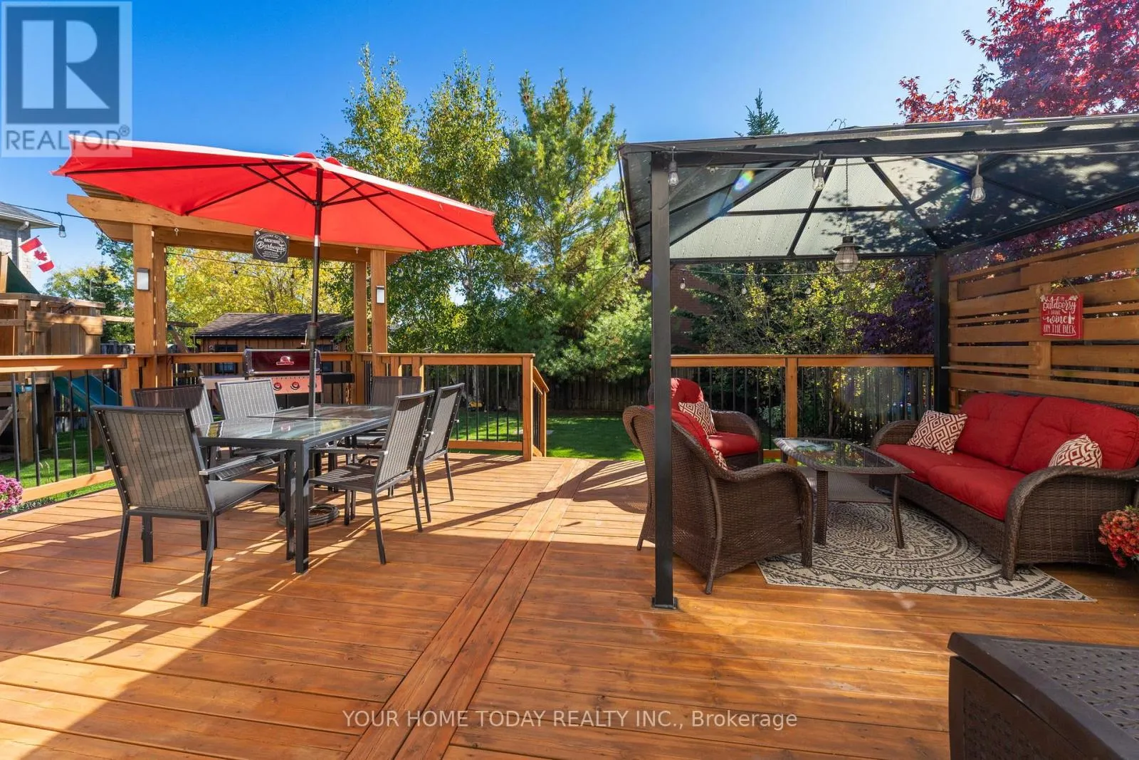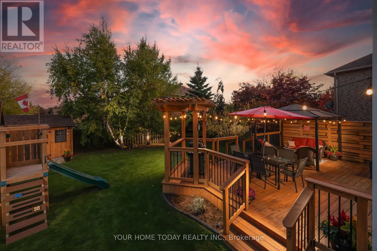 Cross Streets: Trafalgar and Berton. ** Directions: Trafalgar, Berton, Atwood, Mowat. An inviting covered porch welcomes you into this lovely family home that has been updated with attention to detail and a designer flair. The main level features stylish flooring, pot lights and tasteful finishes throughout. The kitchen enjoys neutral white cabinetry, subway tile backsplash, breakfast bar, pantry and walkout to a party-sized deck overlooking the nicely landscaped and very private yard. A large dining room with corner gas fireplace is ideal for entertaining a crowd while the sun-filled living room (open to the breakfast area) is perfect for family time. A nicely updated powder room and garage access complete the level. The upper level offers the same flair and attention to detail found on the main level with three spacious bedrooms and two full bathrooms. The primary bedroom enjoys a luxurious 3-piece ensuite and a superb walk-in closet with built-in shelving and two separate pocket doors. Two remaining bedrooms share the nicely updated 4-piece bathroom. An office nook/den overlooking the staircase completes the level. The lower level, also decorated with a designer flair, adds to the living space with a rec room featuring an eye-catching built-in fireplace, an enviable laundry room and plenty of storage/utility space. For your outdoor fun - the backyard offers a huge deck with privacy panel, pergola and gazebo overlooking the large pie-shaped yard complete with mature trees and lovely gardens. A good-sized shed and play structure add to the enjoyment. Wrapping up the package is the well-equipped garage with attached shelving, loft storage and slatwall panels for added convenience. Located in a quiet family friendly neighbourhood just steps to community sports field, park and trail and close to Trafalgar Sports Park, schools, hospital, fairgrounds, downtown shops, library and more. Easy access to main roads for commuters is a bonus! (id:27476)