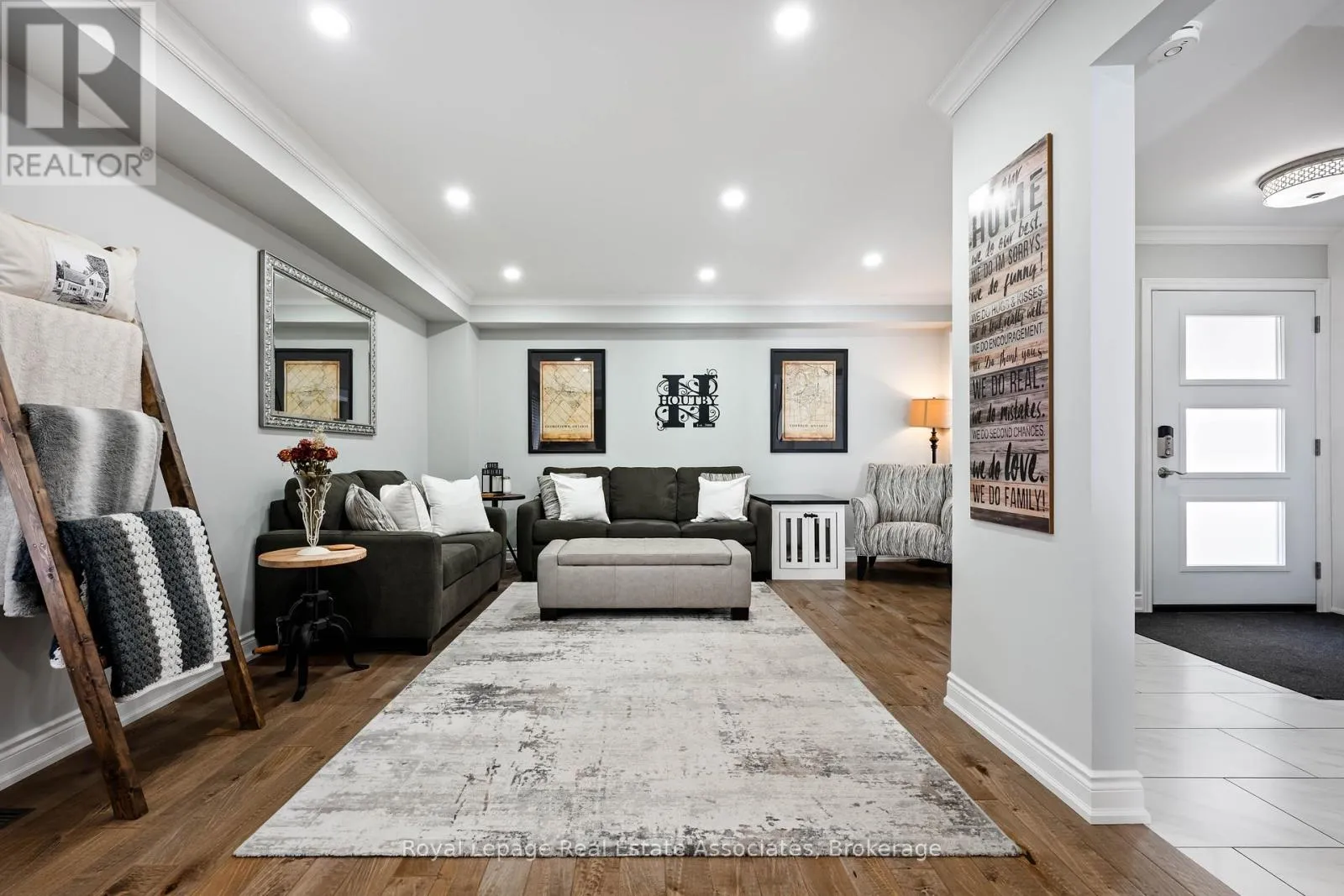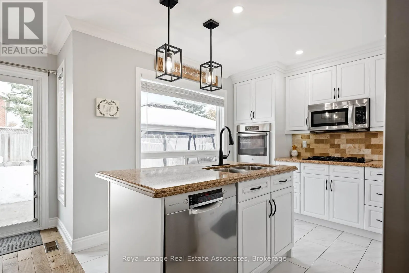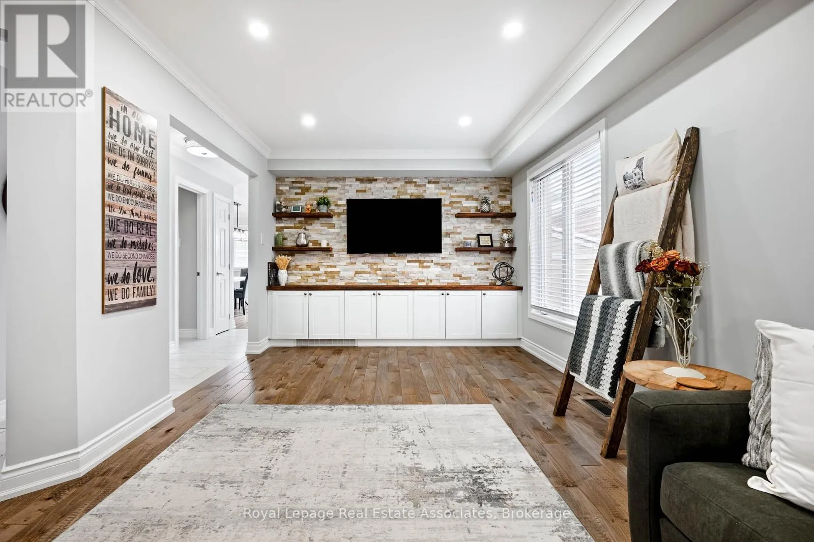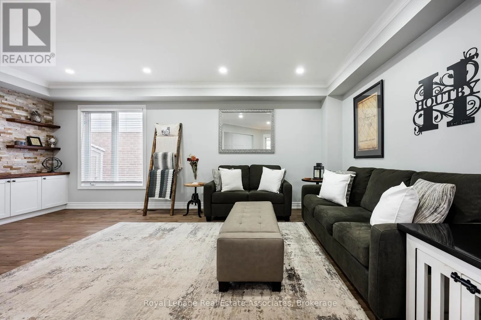 Cross Streets: Eaton Street and Curry Crescent. ** Directions: Eaton Street to Curry Crescent. This beautifully upgraded 4-bed, 4-bath detached home is nestled in one of South Georgetowns quietest and most sought-after neighbourhoods. This home is located just steps from trails, parks, schools, and the Gellert Community Centre, offering everything you need for an active family lifestyle. As you enter, the living room greets you with a warm, inviting atmosphere. Large windows fill the space with natural light, highlighting the rich hardwood floors and tasteful finishes. This elegant space is perfect for family time, unwinding after a busy day, or entertaining friends. Every detail has been upgraded, from the hardwood floors that flow seamlessly across all levels, to the crown moulding, accent walls, and LED pot lighting throughout. The open layout is enhanced by smart-home features, including Wi-Fi lighting and switches, a smart thermostat, and smoke detectors that integrate with Google or Alexa. The bright, spacious eat-in kitchen boasts modern finishes, including a countertop gas range, ample counter space, and a kitchen island perfect for family gatherings. Upstairs, the recently renovated bathrooms offer a touch of luxury, including a Jacuzzi tub in the main bath. The primary bedroom features a walk-in closet with custom organizers and an upgraded private ensuite. The fully finished basement adds valuable living space, with a bedroom, three-piece bathroom, laundry room with storage. The lower level also offers the perfect space for cozy family movie nights, featuring a built-in projector screen. The exterior is equally well-maintained, with a concrete walkway & patio, and driveway parking for 4 vehicles. The attached two-car garage is fully insulated, drywalled, and heated, with epoxy flooring, built-in shelving, and hot and cold water access. Outdoor living is effortless with a natural gas line for your BBQ and fire table, soffit lighting, and a sprinkler system. This turn-key home must be seen in person to truly appreciate its upgrades. (id:27476)
