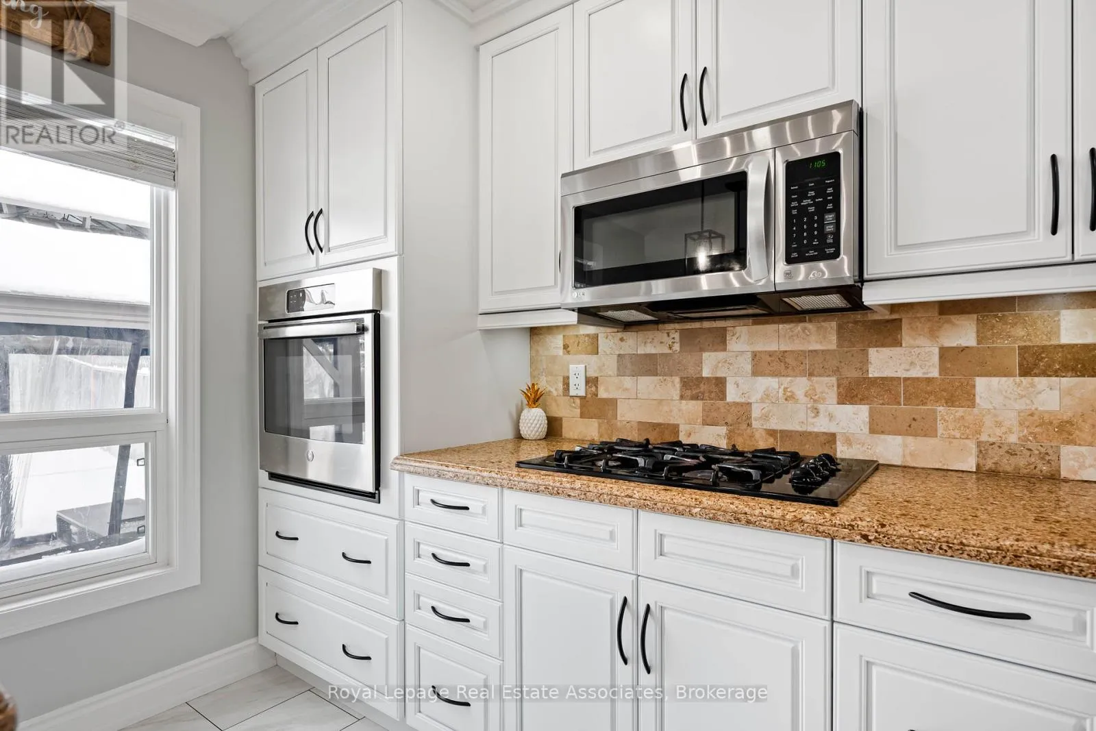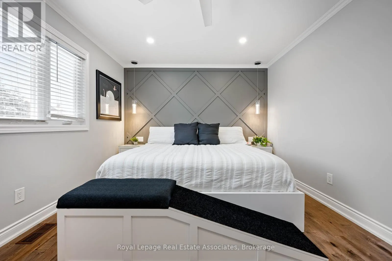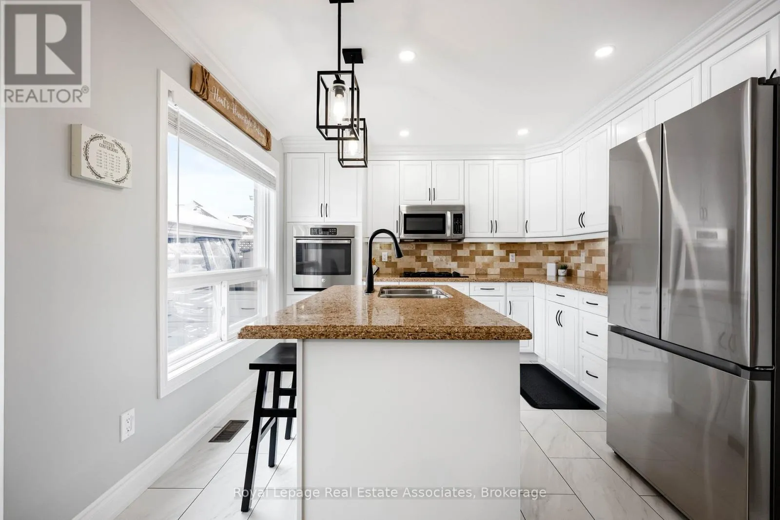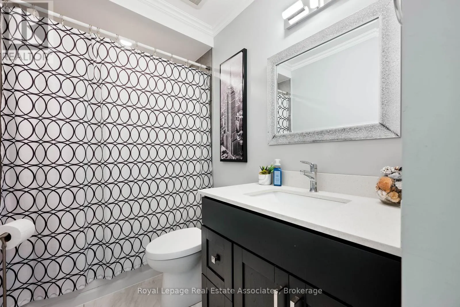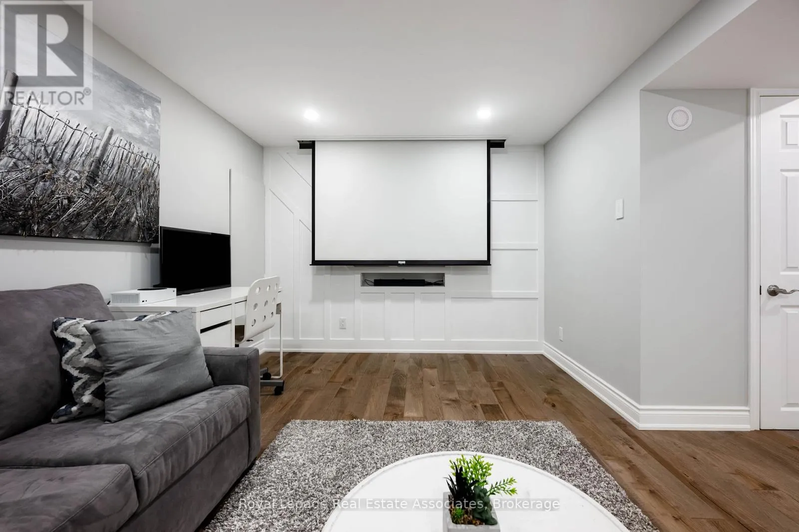 Cross Streets: Eaton Street and Curry Crescent. ** Directions: Eaton Street to Curry Crescent. This beautifully upgraded 4-bed, 4-bath detached home is nestled in one of South Georgetowns quietest and most sought-after neighbourhoods. This home is located just steps from trails, parks, schools, and the Gellert Community Centre, offering everything you need for an active family lifestyle. As you enter, the living room greets you with a warm, inviting atmosphere. Large windows fill the space with natural light, highlighting the rich hardwood floors and tasteful finishes. This elegant space is perfect for family time, unwinding after a busy day, or entertaining friends. Every detail has been upgraded, from the hardwood floors that flow seamlessly across all levels, to the crown moulding, accent walls, and LED pot lighting throughout. The open layout is enhanced by smart-home features, including Wi-Fi lighting and switches, a smart thermostat, and smoke detectors that integrate with Google or Alexa. The bright, spacious eat-in kitchen boasts modern finishes, including a countertop gas range, ample counter space, and a kitchen island perfect for family gatherings. Upstairs, the recently renovated bathrooms offer a touch of luxury, including a Jacuzzi tub in the main bath. The primary bedroom features a walk-in closet with custom organizers and an upgraded private ensuite. The fully finished basement adds valuable living space, with a bedroom, three-piece bathroom, laundry room with storage. The lower level also offers the perfect space for cozy family movie nights, featuring a built-in projector screen. The exterior is equally well-maintained, with a concrete walkway & patio, and driveway parking for 4 vehicles. The attached two-car garage is fully insulated, drywalled, and heated, with epoxy flooring, built-in shelving, and hot and cold water access. Outdoor living is effortless with a natural gas line for your BBQ and fire table, soffit lighting, and a sprinkler system. This turn-key home must be seen in person to truly appreciate its upgrades. (id:27476)