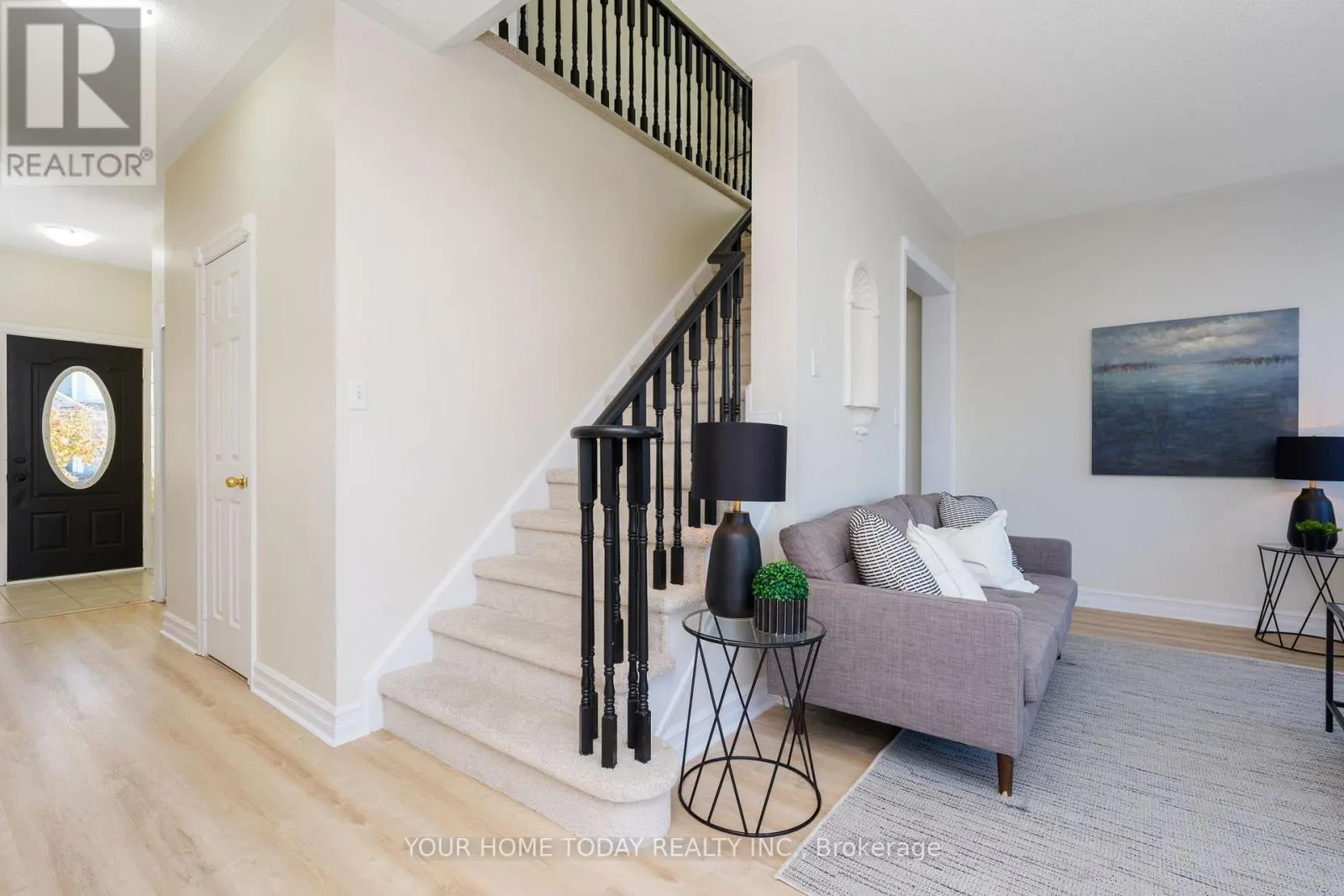 Cross Streets: Highway 7/Queen and Tanners. ** Directions: Highway 7 aka Queen, Tanners, Somerville. A charming covered front porch welcomes you to this 1,850 sq. ft. two storey home in the heart of a vibrant family neighborhood, close to recreation centers, shopping, GO Transit, and the friendly small town lifestyle where neighbors know you by name. This warm and bright 4 bedroom, 2.5 bath home features 9 foot ceilings on the main floor, freshly laid vinyl plank flooring, brand new carpet upstairs, and professional painting throughout. With an upgraded kitchen showcasing sleek quartz countertops and proximity to excellent schools, it offers the perfect blend of comfort, style, and convenience. (id:27476)