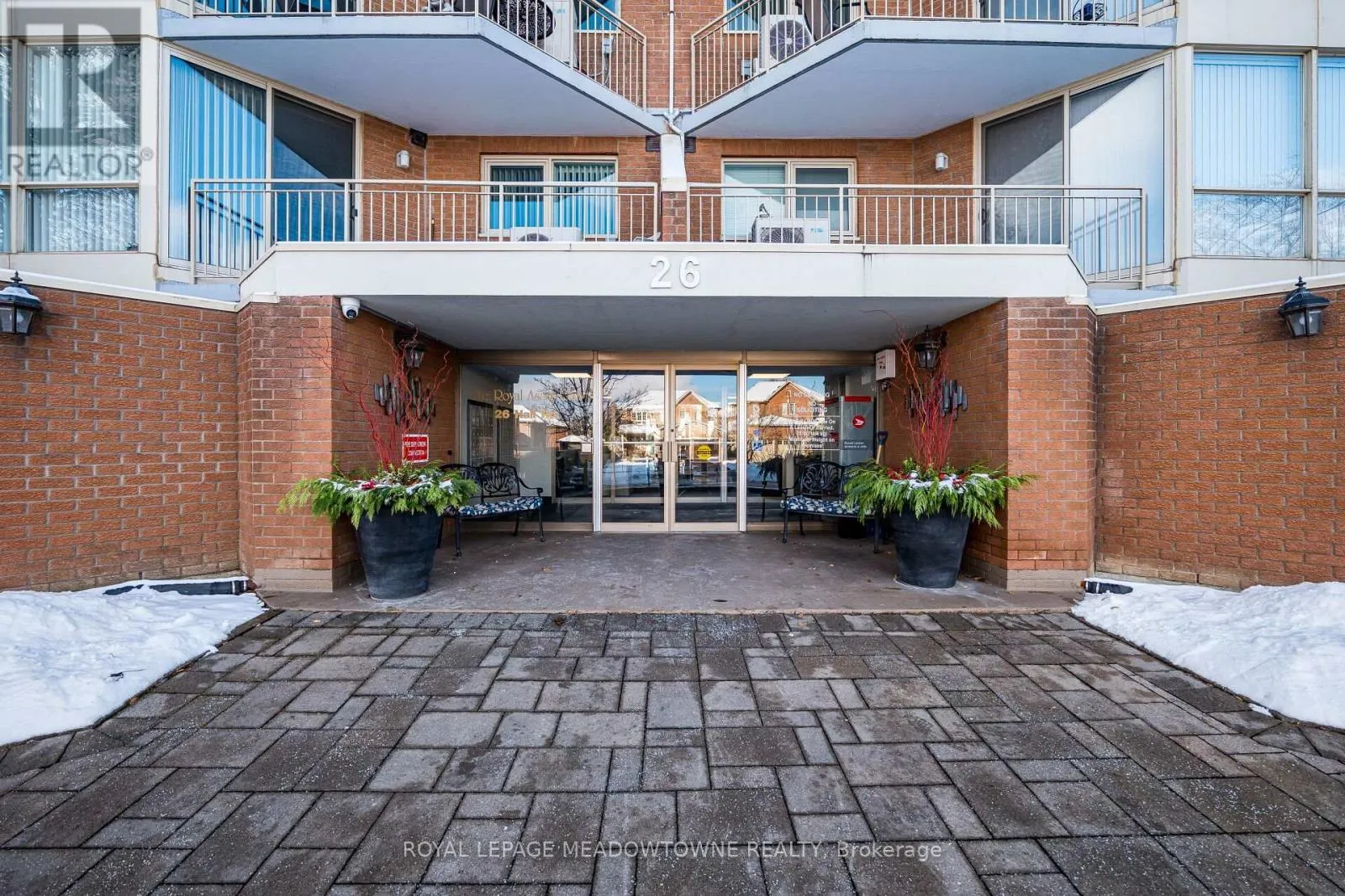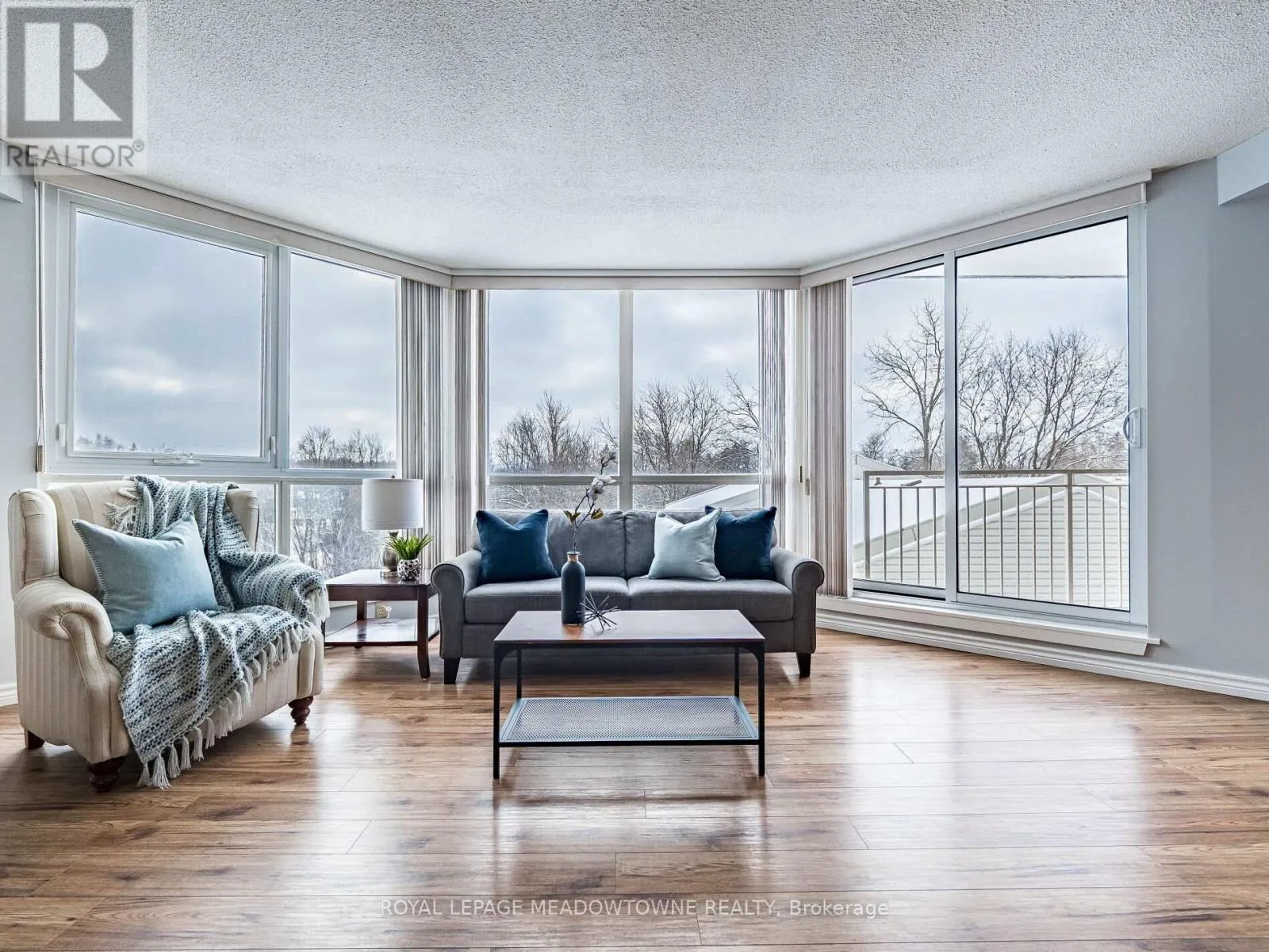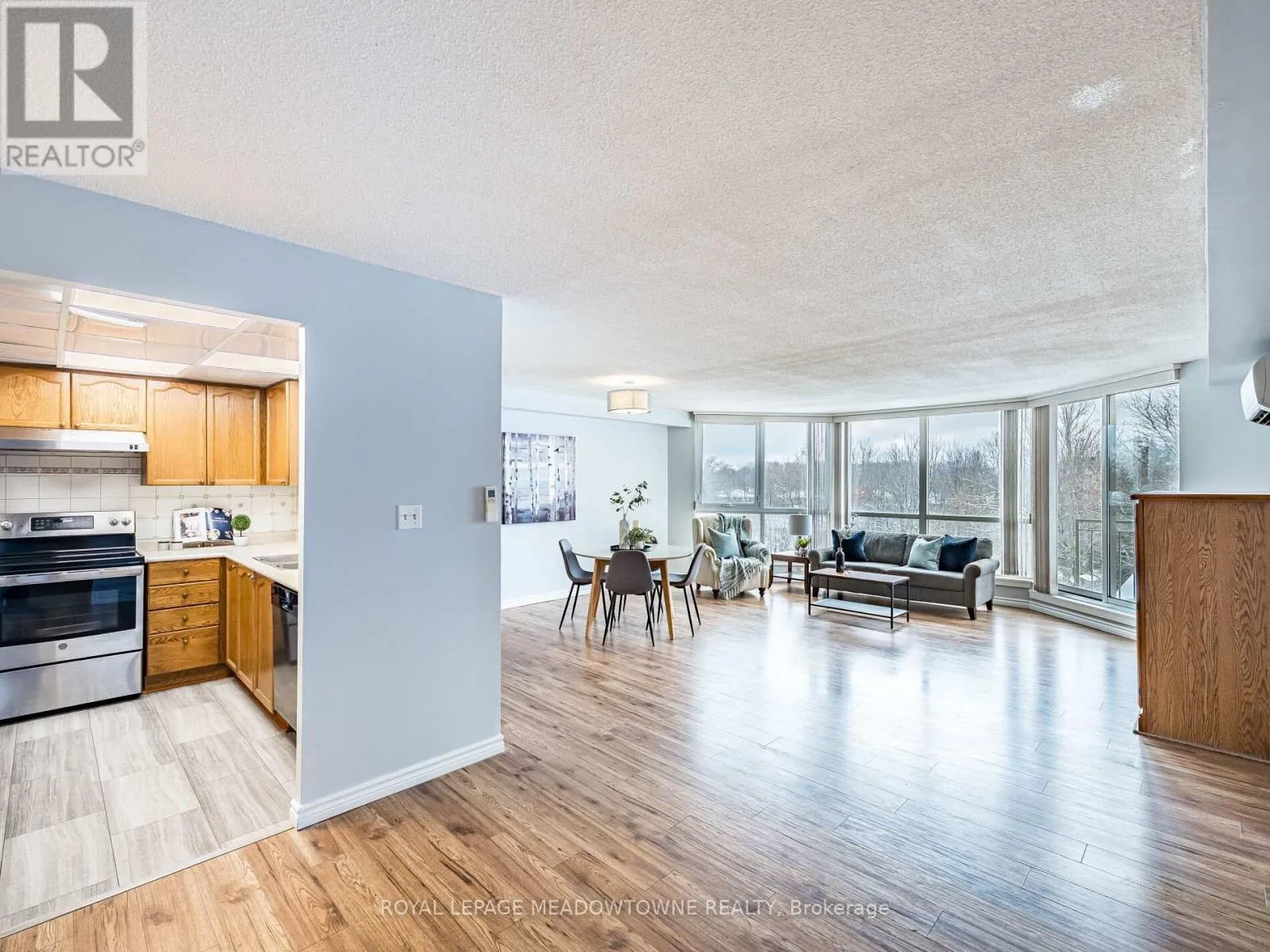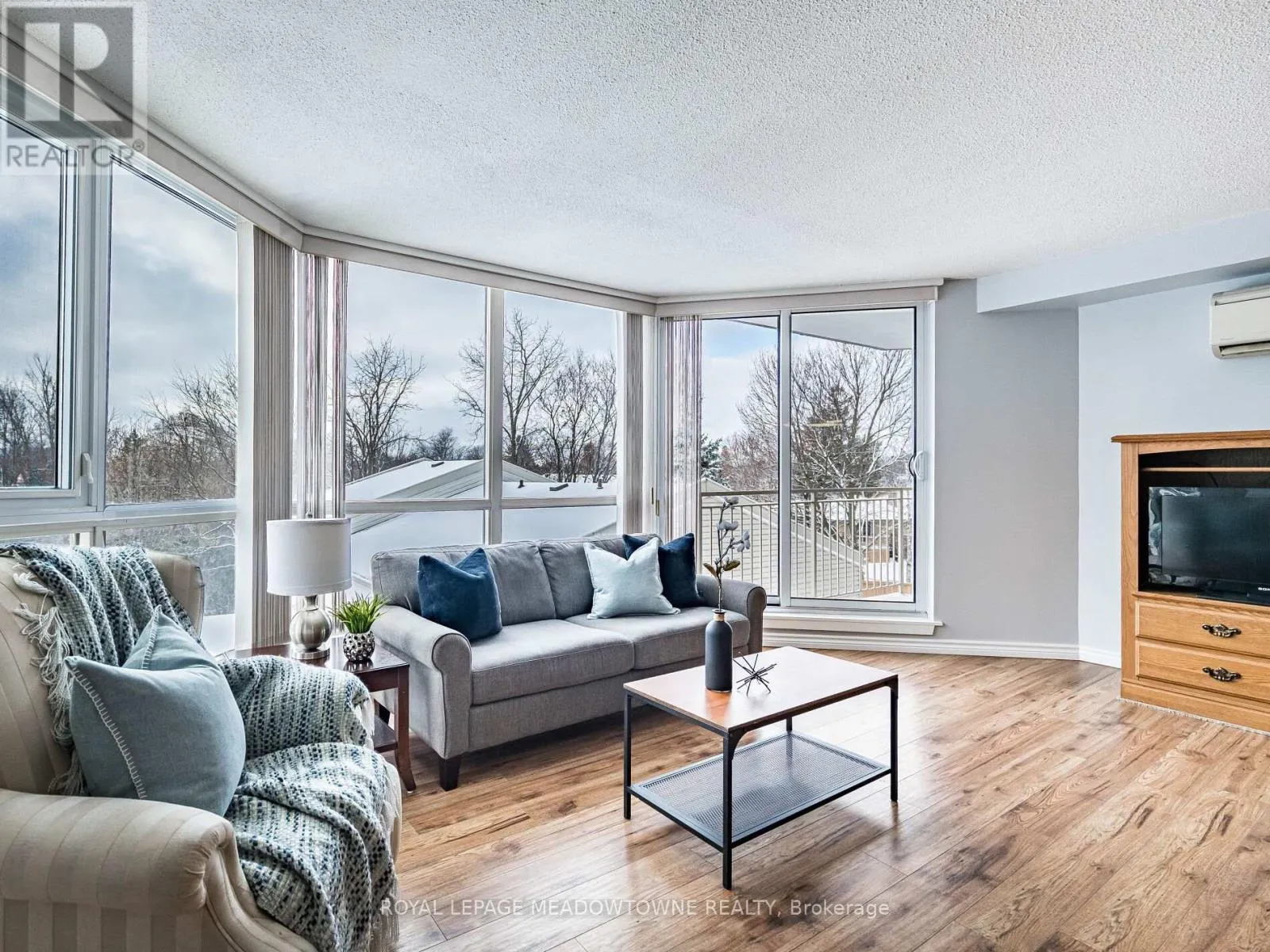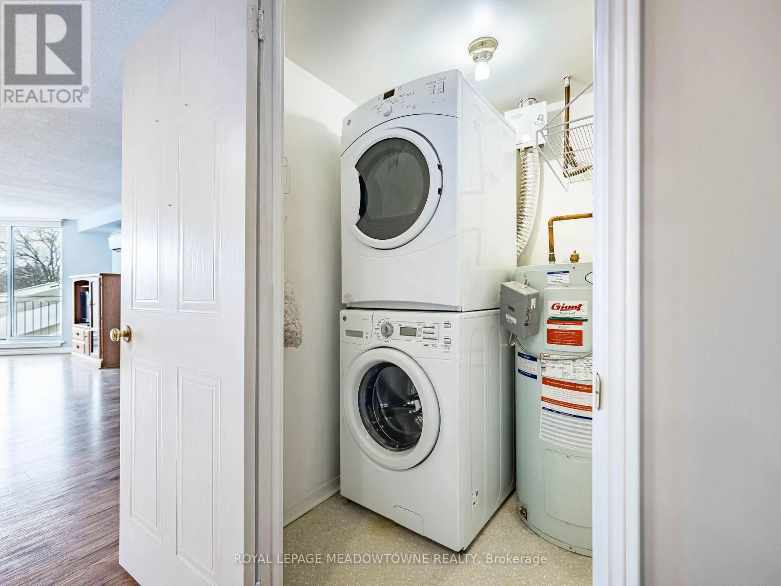 Guelph St / Hall Rd Welcome to Royal Ascot, one of Georgetown's hidden gems! This 1-bedroom plus den suite has been beautifully renovated throughout, featuring newer flooring and appliances, an upgraded bathroom, and fresh paint. At approximately 1,100 sq. ft., this unit is ideal for downsizers, first-time buyers, or investors. The condo offers an open concept living and dining area with a walkout to a private balcony. The kitchen provides generous cupboard and counter space, newer stainless-steel appliances, and a clear view into the living/dining area. The den adds valuable flexibility and can be used as a guest room or home office. The spacious primary bedroom includes a walk-in closet and a second entrance to the bathroom. Enjoy the convenience of in-suite laundry and storage. Royal Ascot is a well-managed and well-maintained building with reasonable fees and excellent amenities, including a party room with kitchen, exercise room, games room, car wash, BBQ area, bike storage, and plenty of visitor parking. One surface-level parking space is included.Located just steps from the scenic Hungry Hollow Trail and within walking distance to parks, restaurants, shops, and more. Don't miss this incredible opportunity to get into the market! (id:27476)