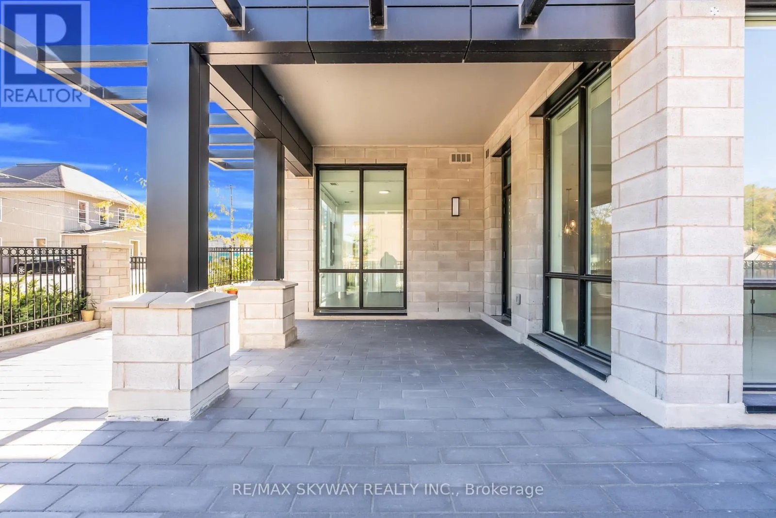 Guelph St/ Mill St An exceptional ground level corner suite that truly redefines luxury condo living. Located in one of Georgetown's most sought after boutique buildings, this nearly 1,400 sq. ft. luxury residence with a spectacular 1,200 sq. ft. wraparound patio offers the comfort and feel of a bungalow with the convenience of a condo the best of both worlds! - Step inside to discover an open concept layout flooded with natural light from floor to ceiling windows and 9.5 ft ceilings. The chef's kitchen boasts quartz countertops, built in high end appliances, and generous storage and prep space. Beautiful marble tile flooring flows seamlessly through the kitchen, living, and dining areas, while both bedrooms feature engineered hardwood floors for warmth and elegance to both rooms. Each of the two spacious bedrooms enjoys its own private ensuite, providing the ultimate in comfort and privacy. Outside patio offers direct street access which is perfect for entertaining or welcoming guests through your own private entrance. Comes with two premium parking spots (1 & 2). Built less than two years ago, this exclusive low-rise building is known for its contemporary design and top-tier amenities including a fully equipped gym, elegant party room, library, dog wash station, and community BBQs. Located just steps from downtown Georgetown, GO, Community shops, John Elliott Theatre and close to main road. If you're ready to enjoy spacious, stylish, and carefree living in one of Georgetown's premier addresses, this remarkable suite is the one to call home. (id:27476)