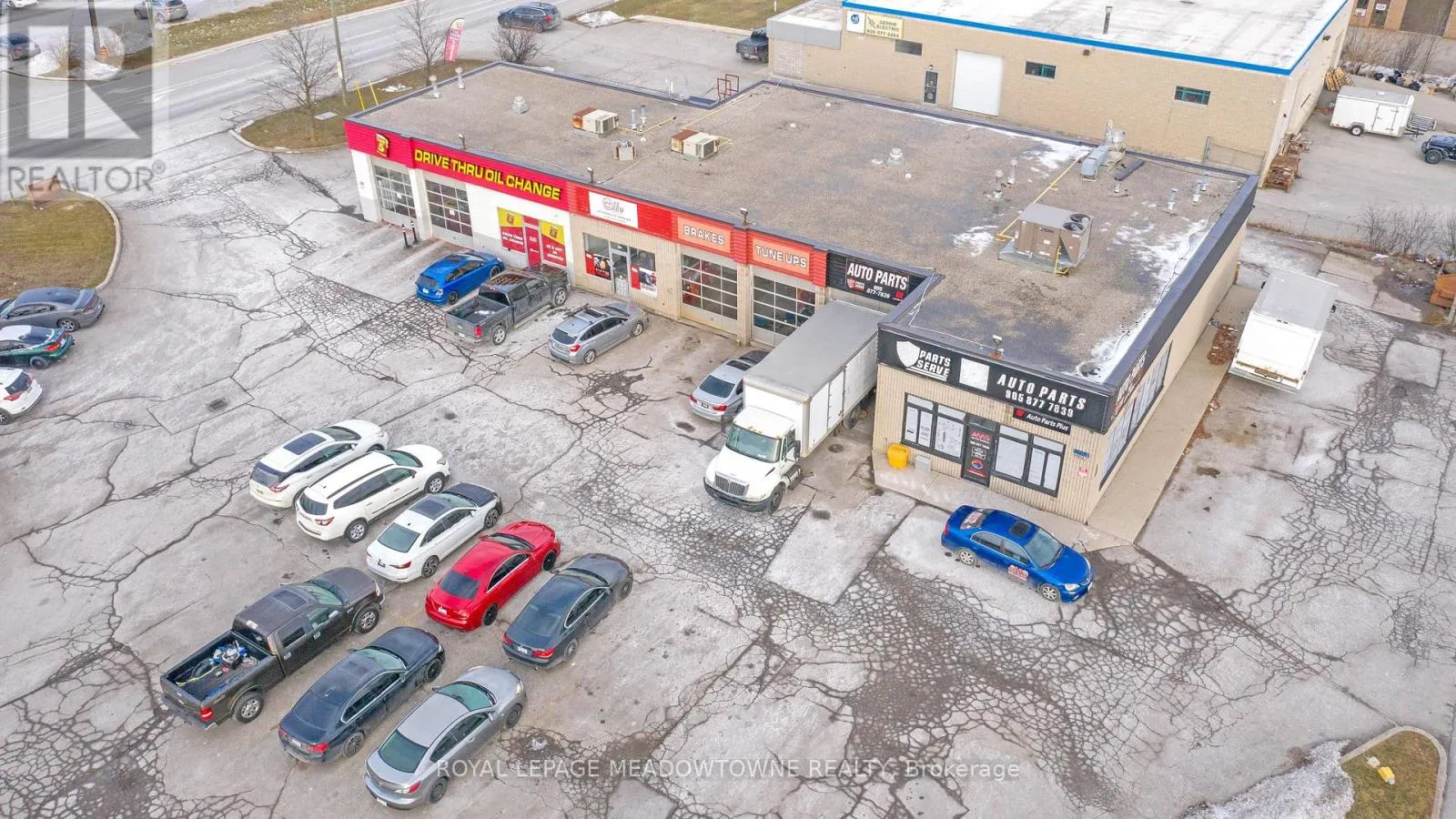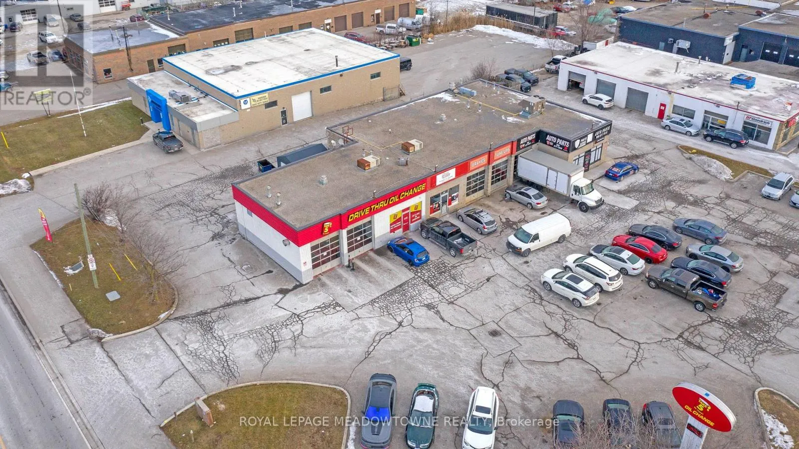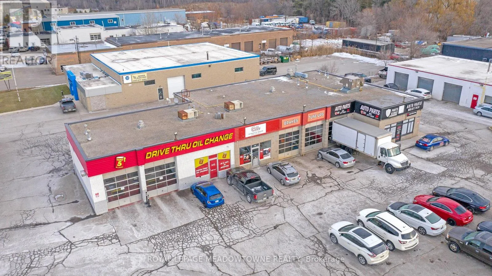 Corner of Armstrong St and Guelph St (Hwy 7) This multi-unit automotive complex is prominently located on the corner of Armstrong Avenue and Guelph Street (Highway 7) in Georgetown. The 0.811-acre property is supported by established long-term tenants, providing a secure and durable investment opportunity.Zoned Corridor Commercial, the property permits a wide range of commercial uses. The approximately 5,700+ square foot plaza features eleven [11] grade-level drive-in doors of varying widths and depths, making it well suited for automotive and service-oriented operations. Ample on-site parking is available at the front of the property for both tenants and customers. Building features include three [3] natural gas meters, four [4] hydro meters, five [5] washrooms, and three [3] gas rooftop HVAC units. All three [3] tenants are on term leases.The property is being sold on an "as is, where is" basis, without representations or warranties of any kind. The sale excludes all tenant possessions, fixtures, and equipment. The buyer must assume the existing tenants. Please do not approach tenants or their customers directly. The Vendor may consider Vendor Take-Back (VTB) financing for a qualified buyer. A financial summary is available upon receipt of an accepted Confidentiality Agreement. (id:27476)