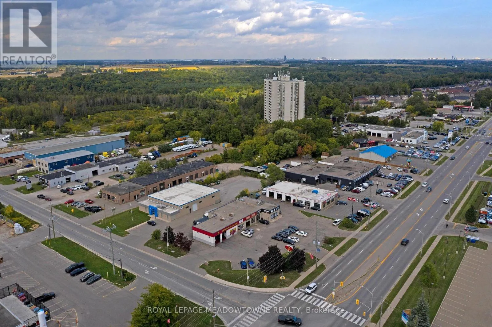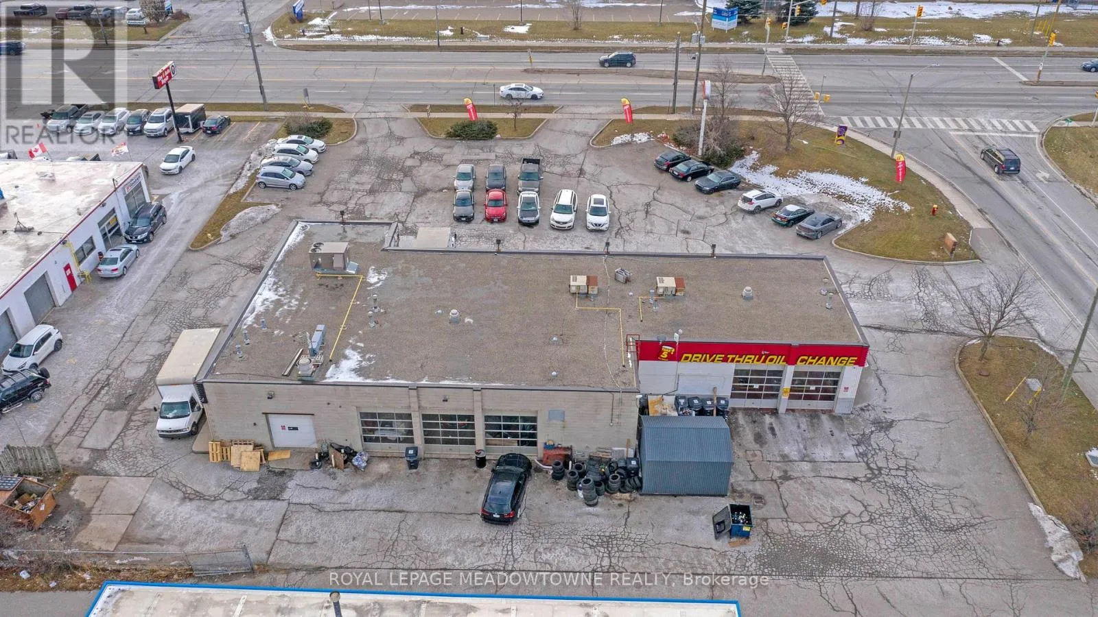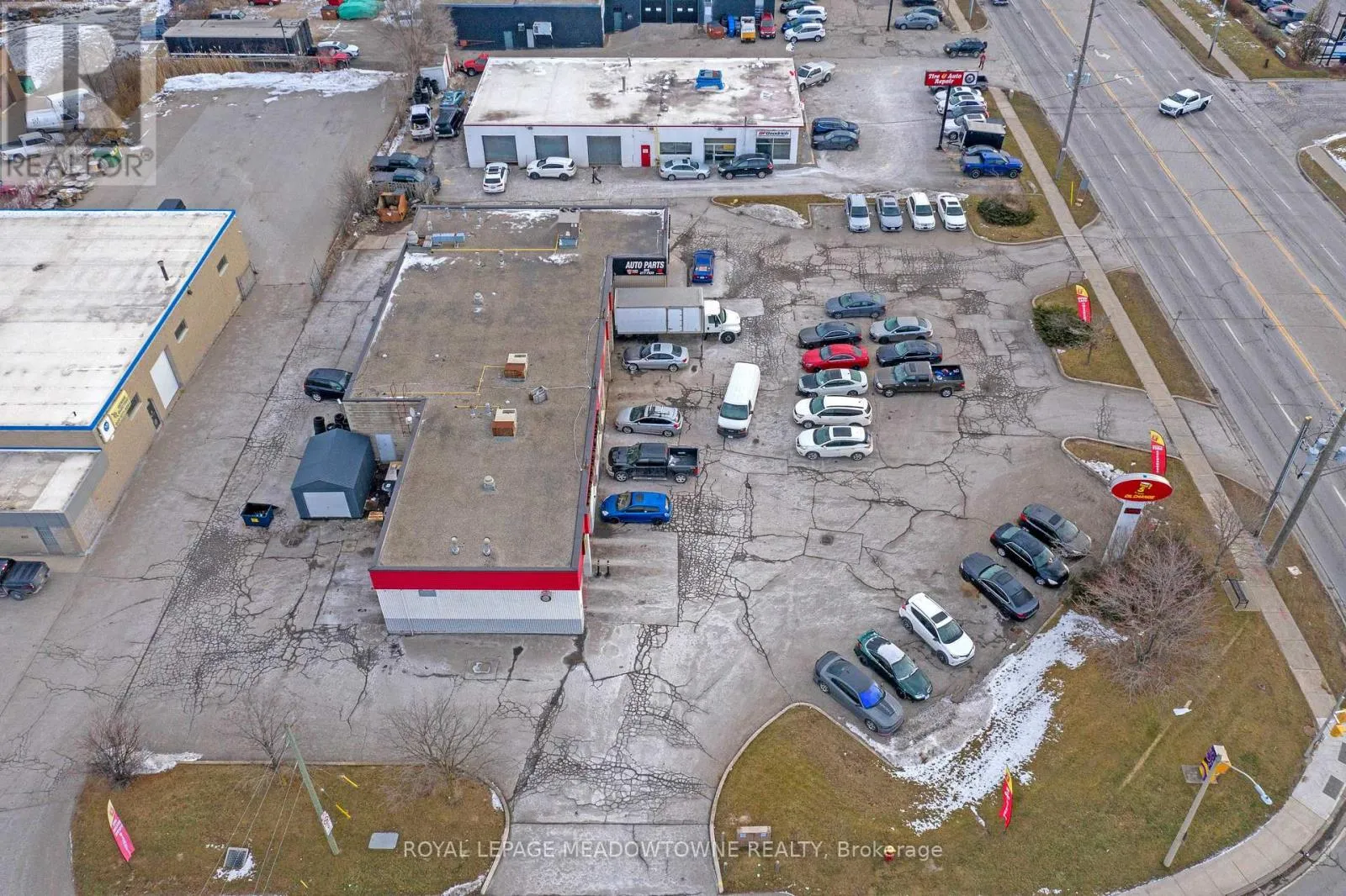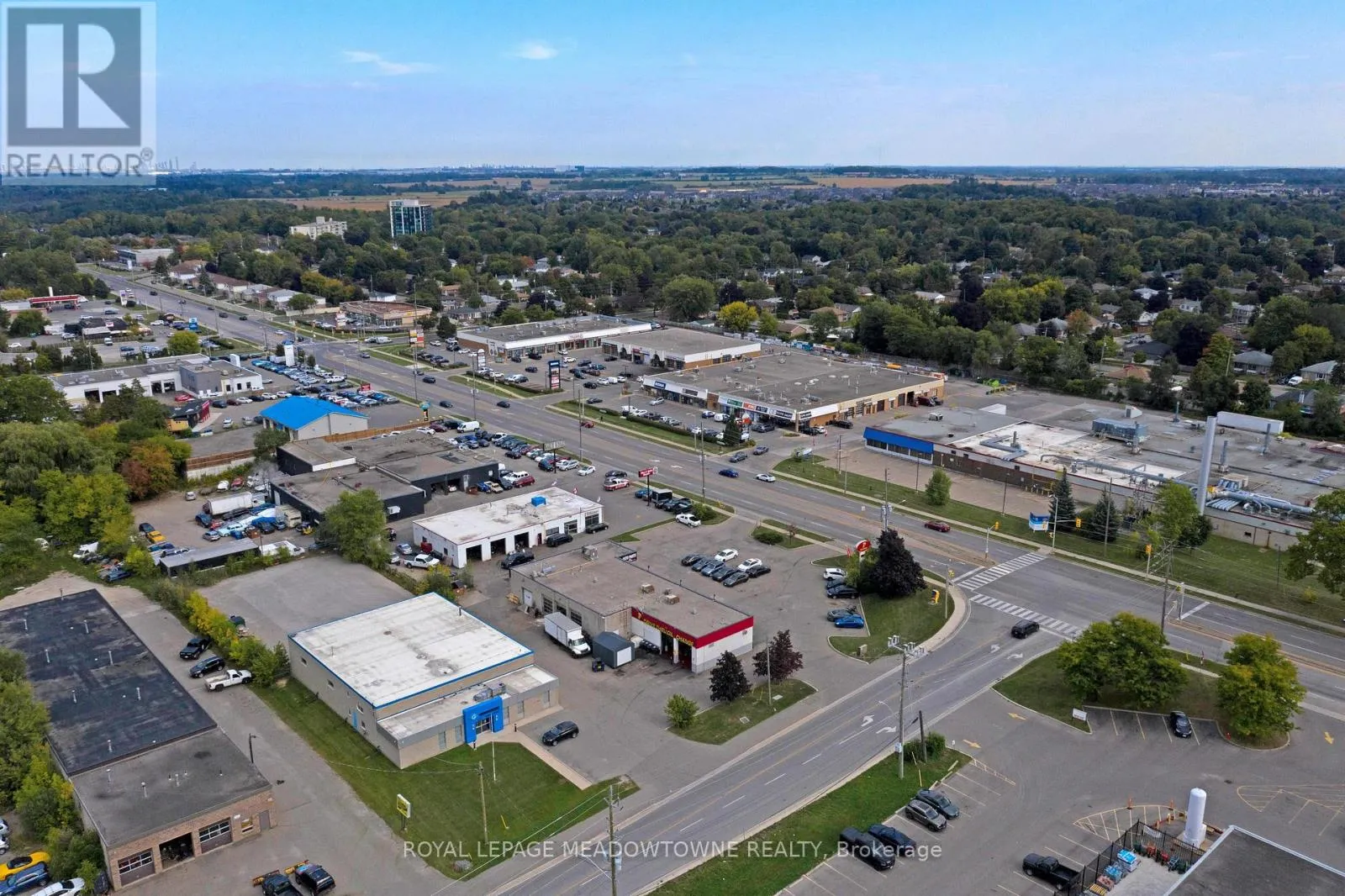 Corner of Armstrong St and Guelph St (Hwy 7) This multi-unit automotive complex is prominently located on the corner of Armstrong Avenue and Guelph Street (Highway 7) in Georgetown. The 0.811-acre property is supported by established long-term tenants, providing a secure and durable investment opportunity.Zoned Corridor Commercial, the property permits a wide range of commercial uses. The approximately 5,700+ square foot plaza features eleven [11] grade-level drive-in doors of varying widths and depths, making it well suited for automotive and service-oriented operations. Ample on-site parking is available at the front of the property for both tenants and customers. Building features include three [3] natural gas meters, four [4] hydro meters, five [5] washrooms, and three [3] gas rooftop HVAC units. All three [3] tenants are on term leases.The property is being sold on an "as is, where is" basis, without representations or warranties of any kind. The sale excludes all tenant possessions, fixtures, and equipment. The buyer must assume the existing tenants. Please do not approach tenants or their customers directly. The Vendor may consider Vendor Take-Back (VTB) financing for a qualified buyer. A financial summary is available upon receipt of an accepted Confidentiality Agreement. (id:27476)