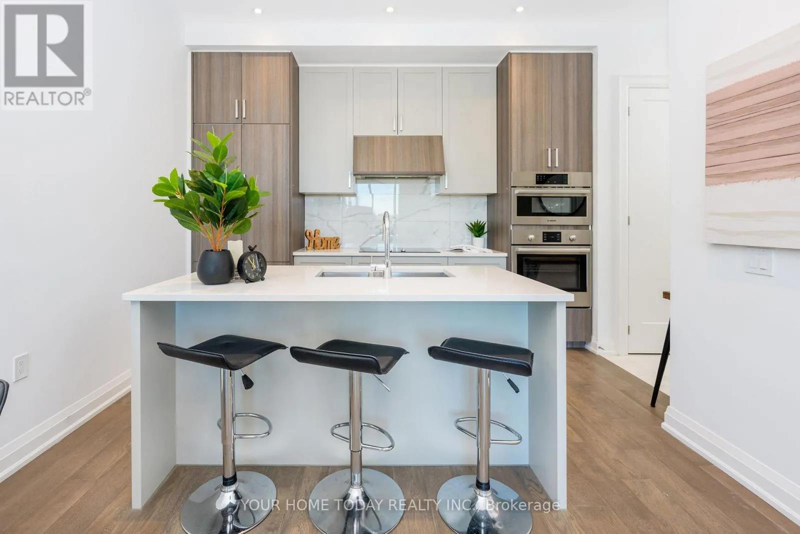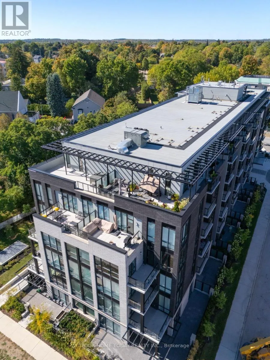 Highway 7 and Mill Spectacular is the only way to describe this 2-bedroom, 2-bathroom penthouse in The Mill Landing an exclusive condo located in the sought-after downtown area. If youre looking for luxury living and a lock and leave lifestyle this is the building for you! An opulent lobby welcomes you into the building where you will find superb facilities including an impressive party/meeting room, exercise room, gorgeous terrace with barbeques and so much more. This upgraded penthouse unit offers soaring 10.5 ceiling height, two terraces, tasteful ceramic and hardwood flooring and a fabulous open concept floor plan. The welcoming foyer offers a large closet and access to the well-equipped laundry area. The chef approved kitchen features two-tone cabinetry with integrated fridge, dishwasher and vent very classy! A huge island with seating, quartz counter, pot drawers, pot lights and open concept layout provides a seamless entertaining/living space. The combined living and dining room enjoy a built-in electric fireplace and floor to ceiling windows allowing the sunlight in. Two bedrooms, the primary with walkout to terrace, walk-in closet and luxurious 4-piece ensuite and a second bedroom with walkout to a larger terrace, large closet and access to the main 4-piece bathroom complete the unit. Wrapping up the package is the underground parking space and locker both owned. Great location. Short walk to GO, downtown, library, John Elliott Theatre, shops and close to main road for commuters. (id:27476)