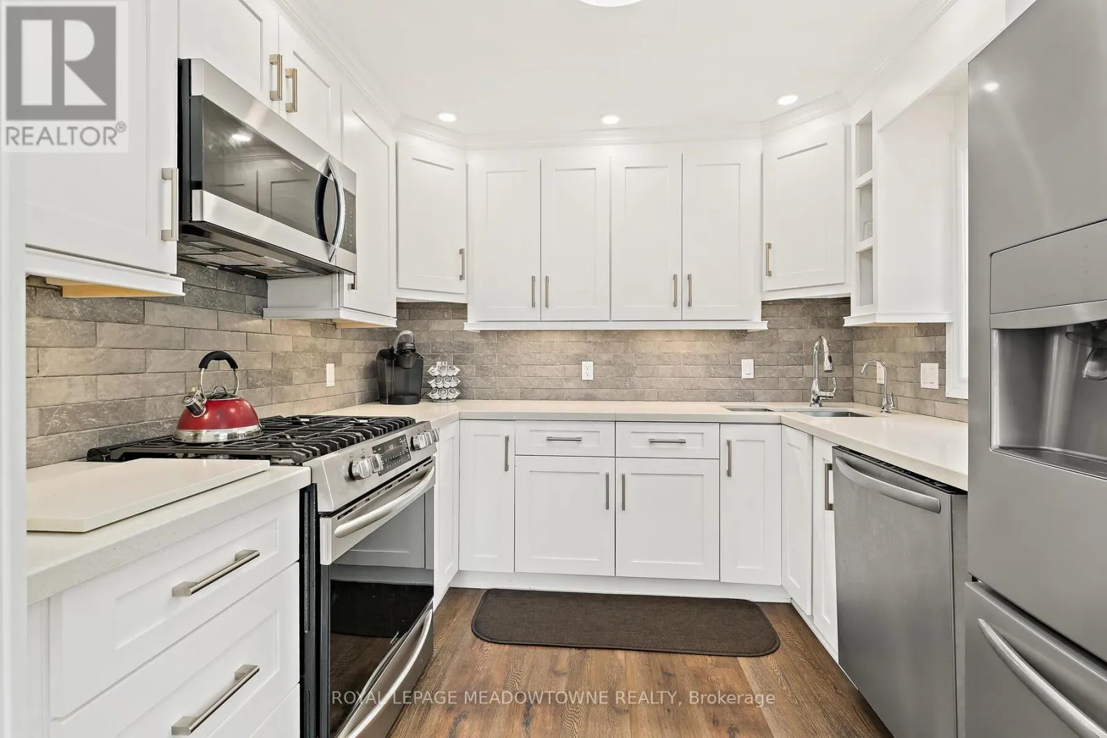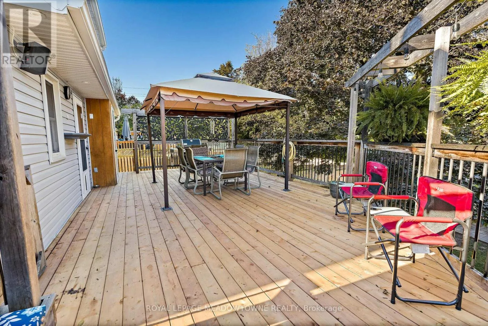 Cross Streets: Guelph St and Ewing St. ** Directions: Guelph/ Ewing/Temple. Very few homes come up for sale on Temple Street... Georgetown's friendliest street! Organized neighbourhood events and everyone looks out for each other offering a safe haven & a community you can call home. Deceptive from the street-this home is MUCH larger than it looks. This 4 bedroom 3 full bath home with a walk out basement(8ft tall) has been renovated top to bottom and sits on a 132 ft deep lot. Arrive at the charming front porch with composite decking with sunny street views. Gorgeous chef's kitchen installed in 2020 features pantry with roll outs, pot lights, quartz countertops, gas stove and additional serving station with extra storage built into the bay window area. Dining area allows for table extension for large family gatherings & is open concept to the living room which feature pot lights as well. 4 pc bath on main level was renovated in 2024. 4th bedroom on main floor. Upper level offers 3 bedrooms including a huge primary suite with large closet and ensuite bath. The lower level is fabulous for entertaining with additional kitchen cabinets (no stove) and bar area- large TV area and gorgeous 3 pc bath reno'd in 2024. The walk out brightens the space and combined with the tall ft ceilings- it sure doesn't feel like a basement! The expansive deck with canopy, BBQ, lighting and privacy screens provide ample entertaining space for large crowds and a surprising amount of privacy. There are 2 additional sheds-both with power to take care of your storage/workshop needs. This turn key home is offered for a buyer who does not want a "to do" list. A home you will love is waiting for you at 7 Temple Rd. FAQ's: shingles approx 7 years old, Lennnox Furnace and a/c approx 7 years old. 2 renovated baths in 2024, vinyl windows throughout replaced gradually over the past 20 years. Water softener is owned. Tank is rented. Driveway paved Nov 2025 (id:27476)