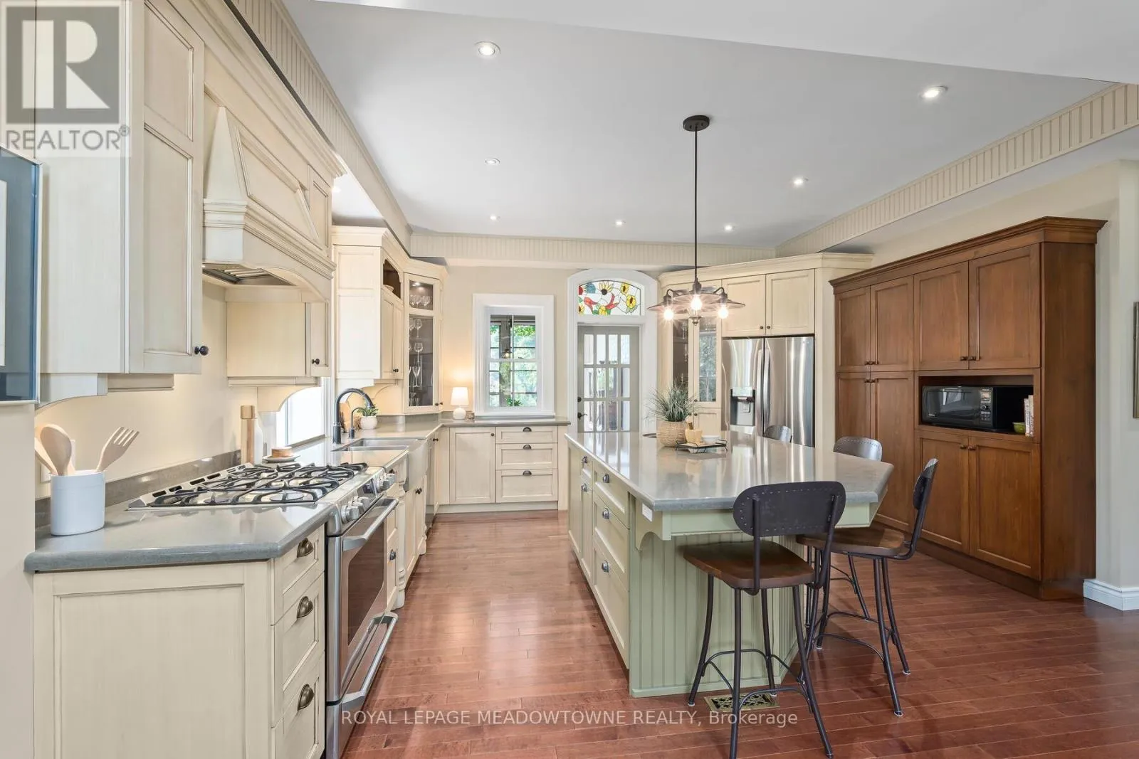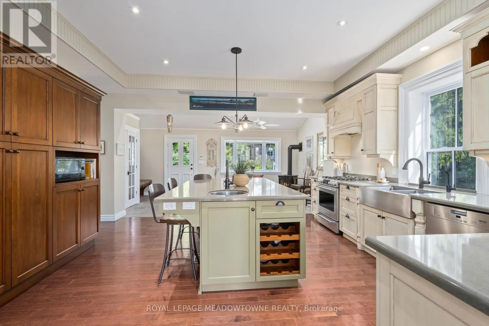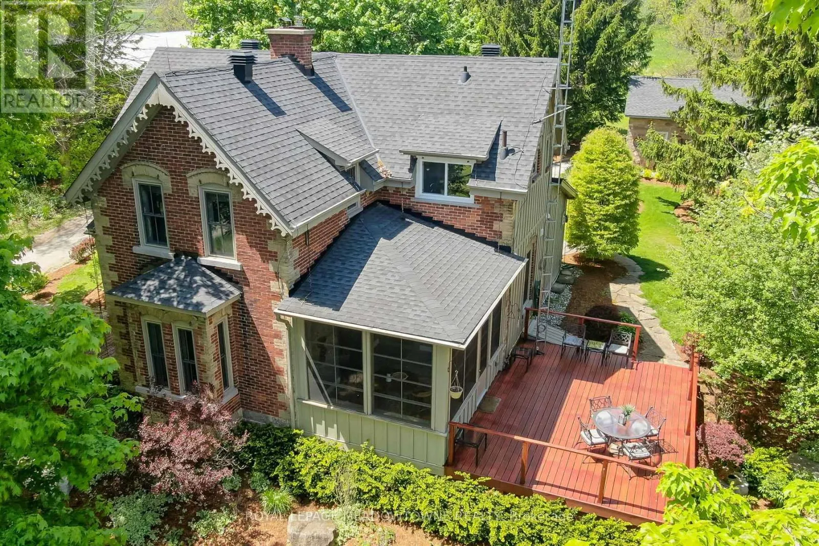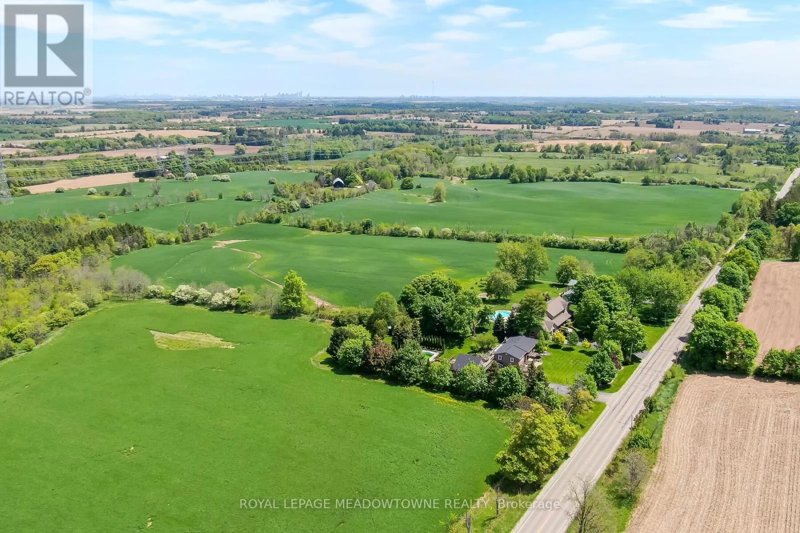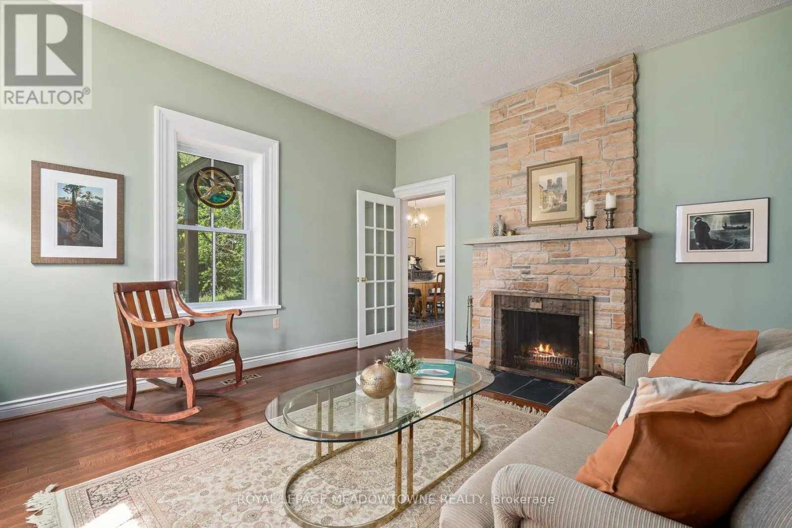 15 Sideroad and Fourth Line Picture perfect setting on 84+ beautiful acres in the heart of Halton Hills Country! Fabulous tree-lined drive and professionally landscaped gardens welcome you to this gorgeous century home in mint condition and completely updated with lovely country views from every window, spectacular stone studio with tons of charm and incredible barn plus a 5-bay driveshed. Versatile living space. The stone house can be used for an office, teenagers getaway, inlaw suite and so much more. Stunning open concept kitchen with quartz counters, breakfast bar, stainless steel appliances open to a sitting room with gas stove, formal living room w/cozy wood burning fireplace (with WETT compliance certificate), pretty dining room, primary suite with walk-in closet and luxurious ensuite, spacious three-season room boasting country views and tons of storage in the basement. The formal living room could work as a main floor bedroom ideal for an elderly family member making it a three bedroom home. Heated floors at entrance, hardwood flooring, main floor laundry, updated plumbing and electrical, skylights, pot lighting, wainscotting & more. Tastefully designed keeping all the charming character but with modern conveniences. Forced air gas heating - a rare find in the country! Also includes solar panels. Approx 65 acres farmed. Prime location centrally located close to Georgetown, Milton and Acton and minutes to the 401 & the GO. It's the perfect country package! (id:27476)