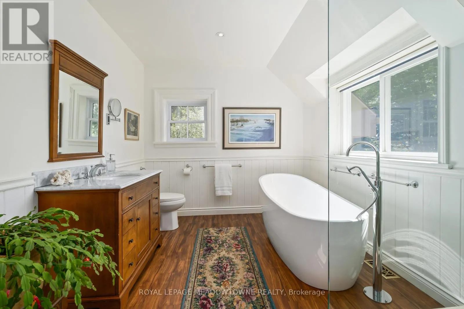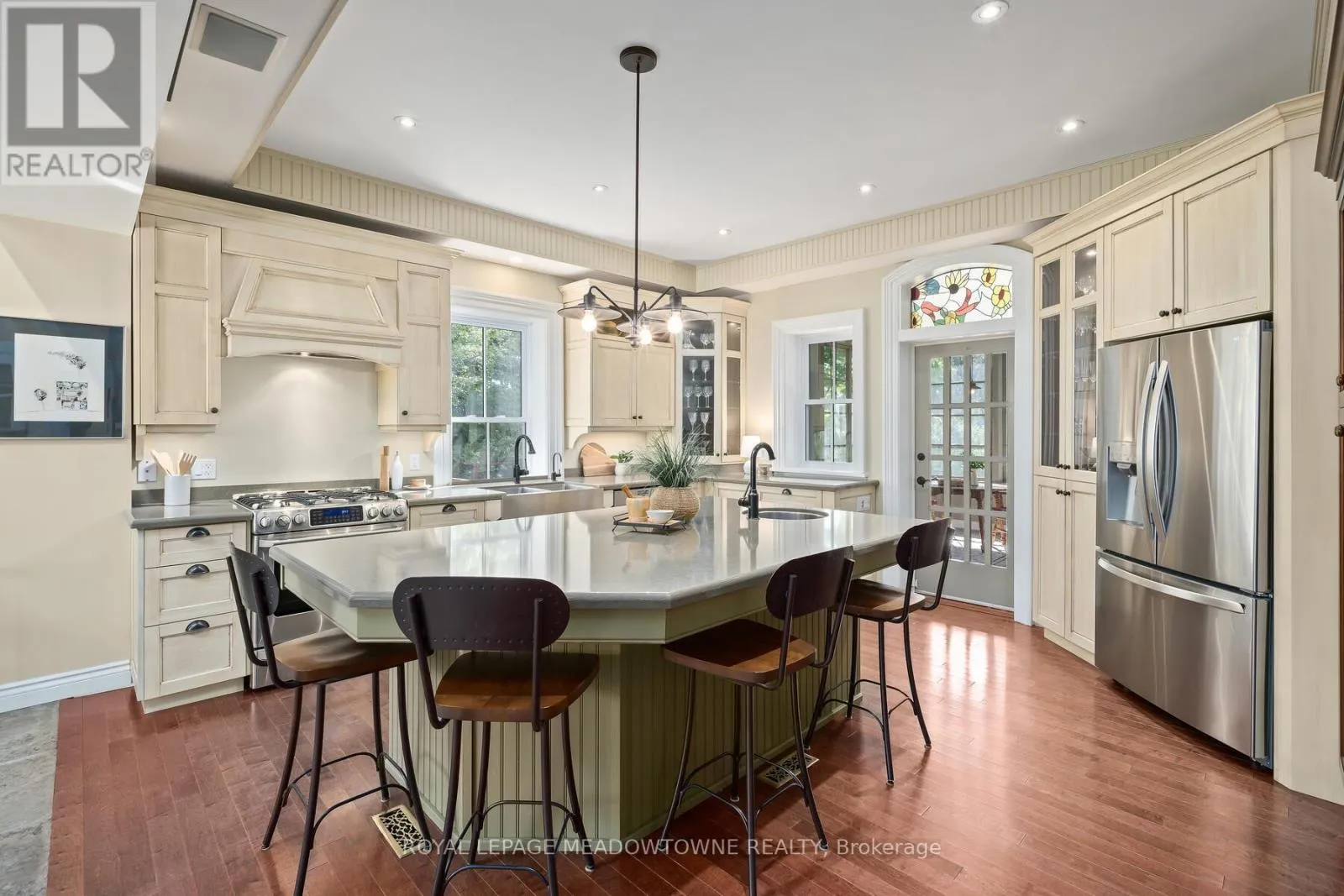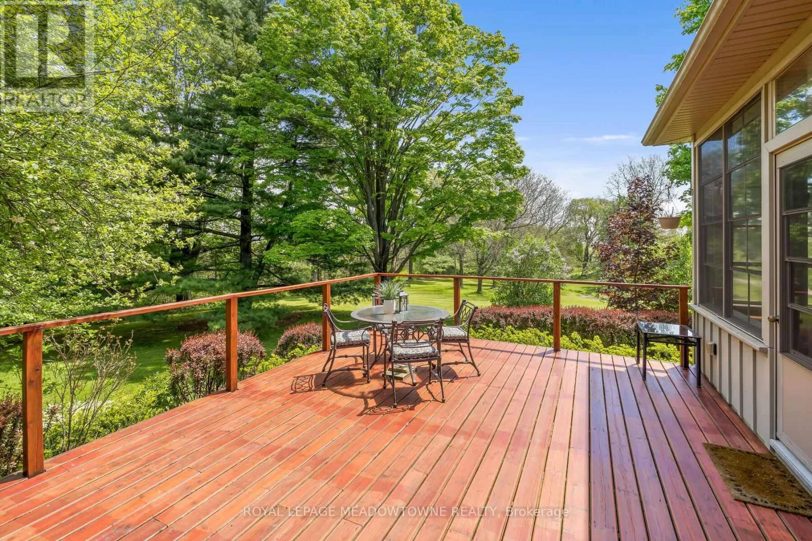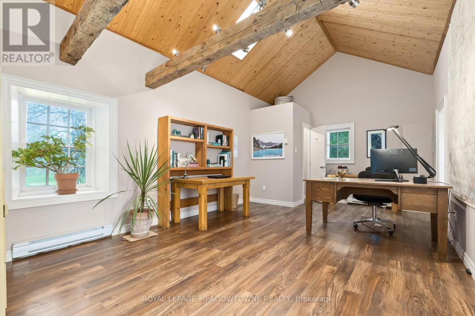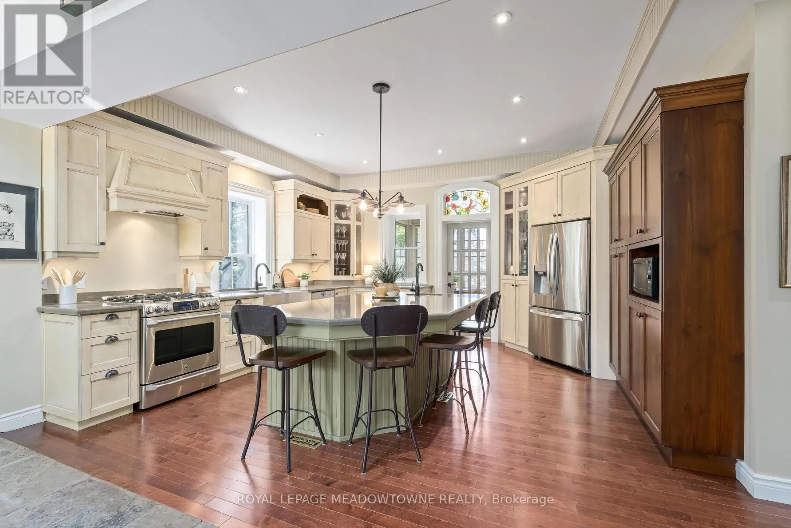 15 Sideroad and Fourth Line Picture perfect setting on 84+ beautiful acres in the heart of Halton Hills Country! Fabulous tree-lined drive and professionally landscaped gardens welcome you to this gorgeous century home in mint condition and completely updated with lovely country views from every window, spectacular stone studio with tons of charm and incredible barn plus a 5-bay driveshed. Versatile living space. The stone house can be used for an office, teenagers getaway, inlaw suite and so much more. Stunning open concept kitchen with quartz counters, breakfast bar, stainless steel appliances open to a sitting room with gas stove, formal living room w/cozy wood burning fireplace (with WETT compliance certificate), pretty dining room, primary suite with walk-in closet and luxurious ensuite, spacious three-season room boasting country views and tons of storage in the basement. The formal living room could work as a main floor bedroom ideal for an elderly family member making it a three bedroom home. Heated floors at entrance, hardwood flooring, main floor laundry, updated plumbing and electrical, skylights, pot lighting, wainscotting & more. Tastefully designed keeping all the charming character but with modern conveniences. Forced air gas heating - a rare find in the country! Also includes solar panels. Approx 65 acres farmed. Prime location centrally located close to Georgetown, Milton and Acton and minutes to the 401 & the GO. It's the perfect country package! (id:27476)