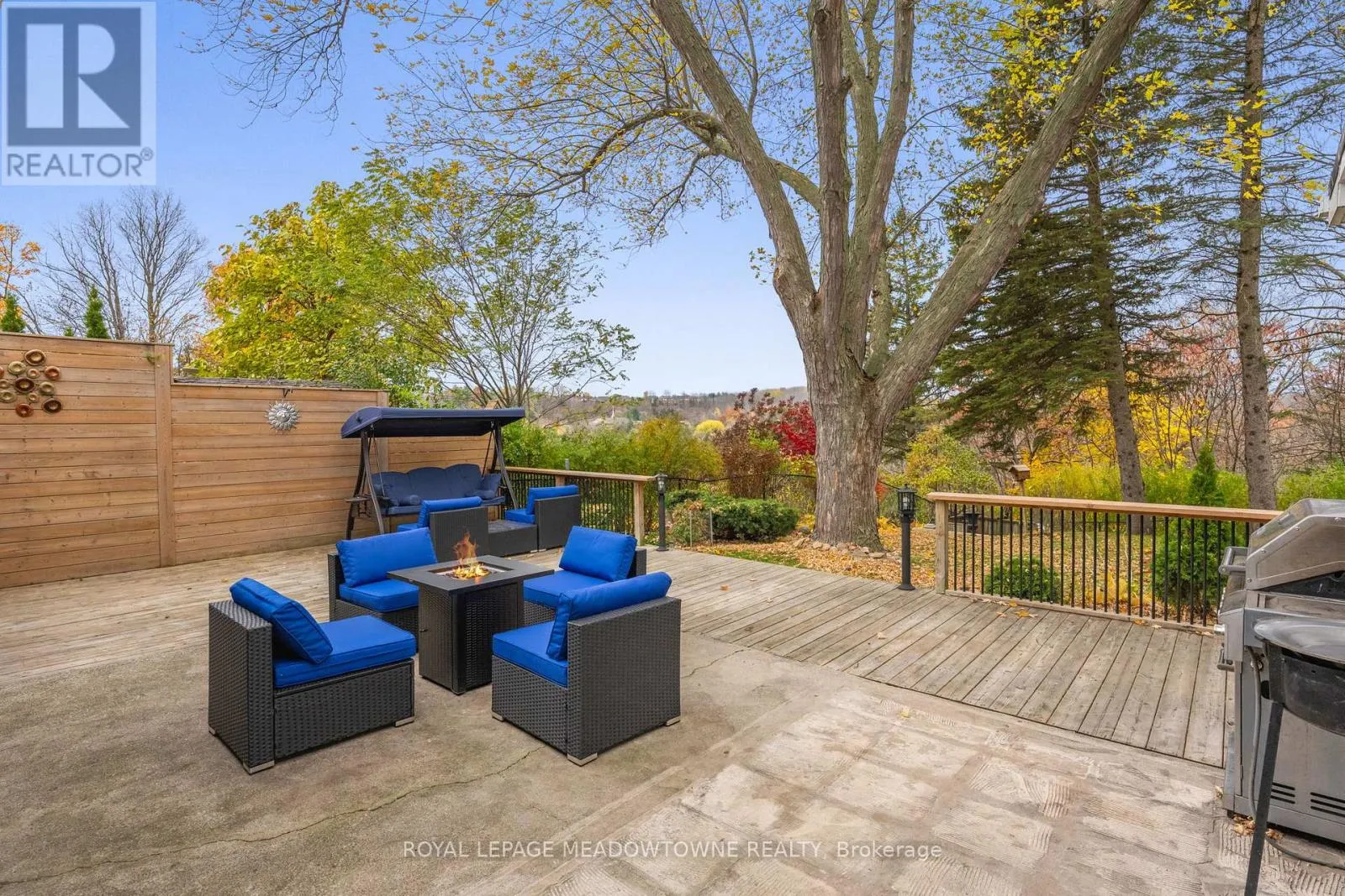 Cross Streets: Rexway Drive & Sargent Road. ** Directions: Sargent Rd to Rexway Drive to Chipper Court. Tucked away in the center of mature Georgetown is the stunning Chipper Court. This quiet, private cul-de-sac combines the walkable convenience of restaurants, shopping & schools but the utmost privacy of large lots, mature tree cover and stunning ravine views. When you enter the foyer, you'll be immediately stunned by this extensively renovated bungalow - smooth ceilings, pot lights and engineered hardwood run throughout the main floor as you flow through the family friendly layout. The dining room and kitchen have breathtaking ravine views through the oversized picture windows flooding the space with natural night. The brand-new kitchen showcases new cabinetry, an oversized island, stainless steel appliances quartz countertops & a skylight above the stove. Bonus space continues in the family room addition with electric fireplace surrounded in stone and two separate walk-outs to the huge deck that spans the entire back of the home. The main floor is completed by a separate wing of the home featuring 3 great sized bedrooms, all with oversized windows. The primary holds a sunken walk-in closet and an elegant 3-piece ensuite with standing glass shower, storage pantry and floating vanity. This wing is completed by an equally stunning 4-piece bathroom with oversized tiles, pantry storage and floating vanity. Downstairs in the finished basement you'll find bonus living space with the rec room, 4th bedroom featuring pot lights and luxury vinyl flooring. The basement has been thoughtfully designed with multiple, extensive storage areas, a rough-in for a wet bar and the potential to add a third bathroom next to the 4th bedroom. Outside offers a rare, flat lot with something for the entire family. Enough space for the kids to play and enjoy the outdoors, beautiful outdoor eating areas and lounge space will offer breathtaking sunset views over the ravine - everyone will love the outdoor living features of this property just as much as the indoor highlights. New furnace (2026) (id:27476)