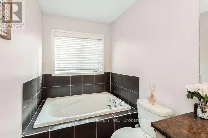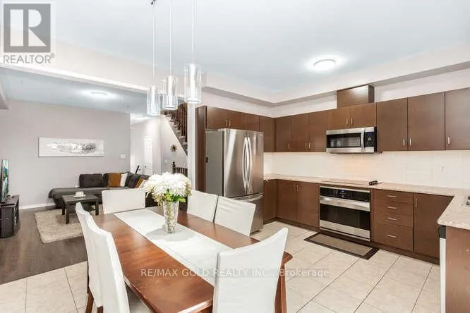 HWY 7 and Jersey Lane Well-maintained modern executive 3-bedroom, 3-bathroom townhouse situated on a premium lot in a highly sought-after community. Featuring 9-ft ceilings on the main floor, this home offers an open and inviting layout. The large modern kitchen is equipped with stainless steel appliances and a walk-out to a private deck-perfect for Entertaining. The upper level boasts a spacious primary bedroom with large windows and two full bathrooms, including a primary ensuite and a second full bath in the hallway. The professionally finished basement is thoughtfully designed with space for a home office and gym, and includes a walk-out to a fully fenced, low-maintenance backyard finished with interlocking pavers-eliminating the need for lawn care. Property Highlights: Close proximity to GO Station, Georgetown Hospital, library, Sports Centre, Marketplace, parks, recreation, and Schools . A small POTL fee of $ 132.66/ month covers garbage collection, snow removal, and maintenance of common park areas within the complex. (id:27476)