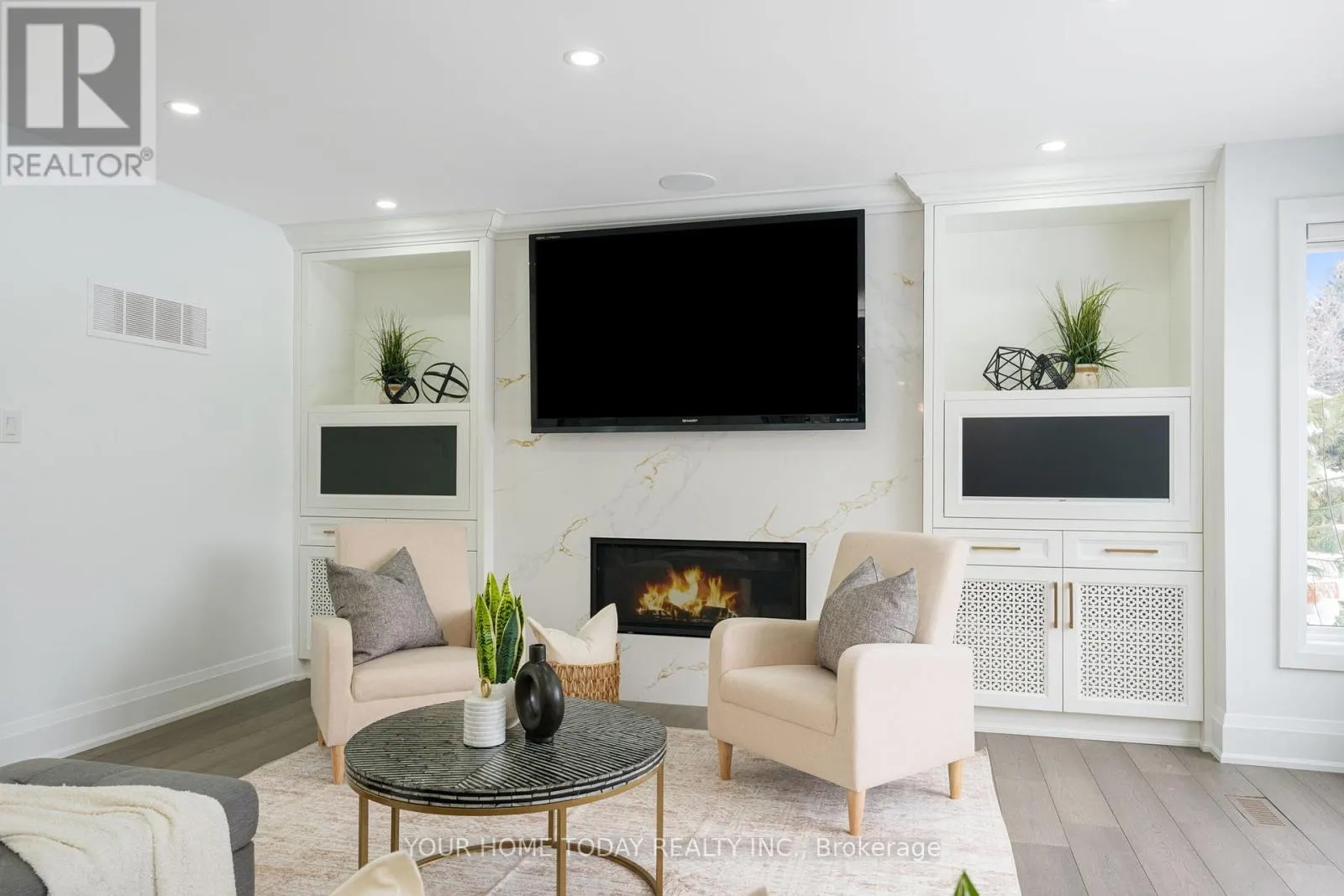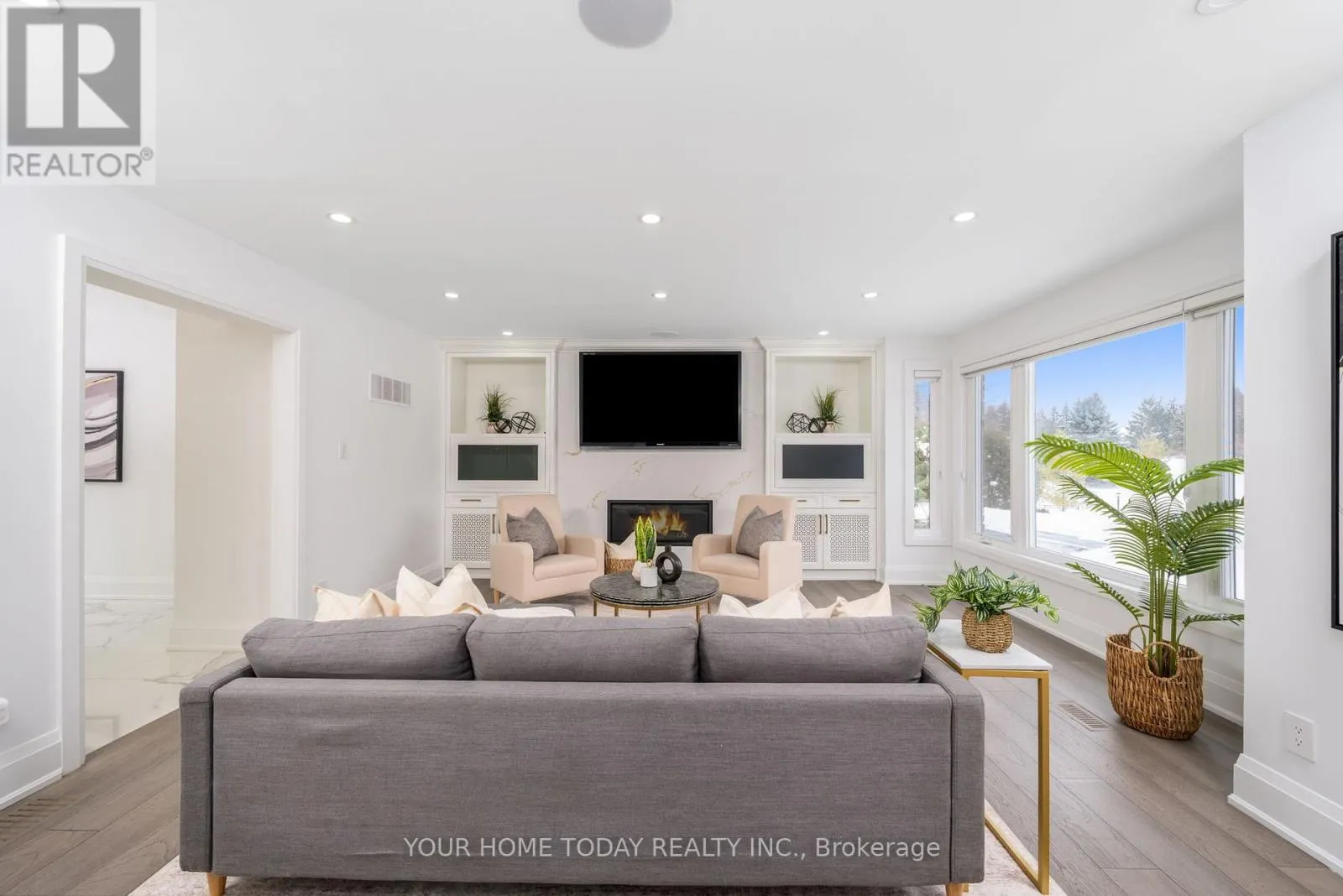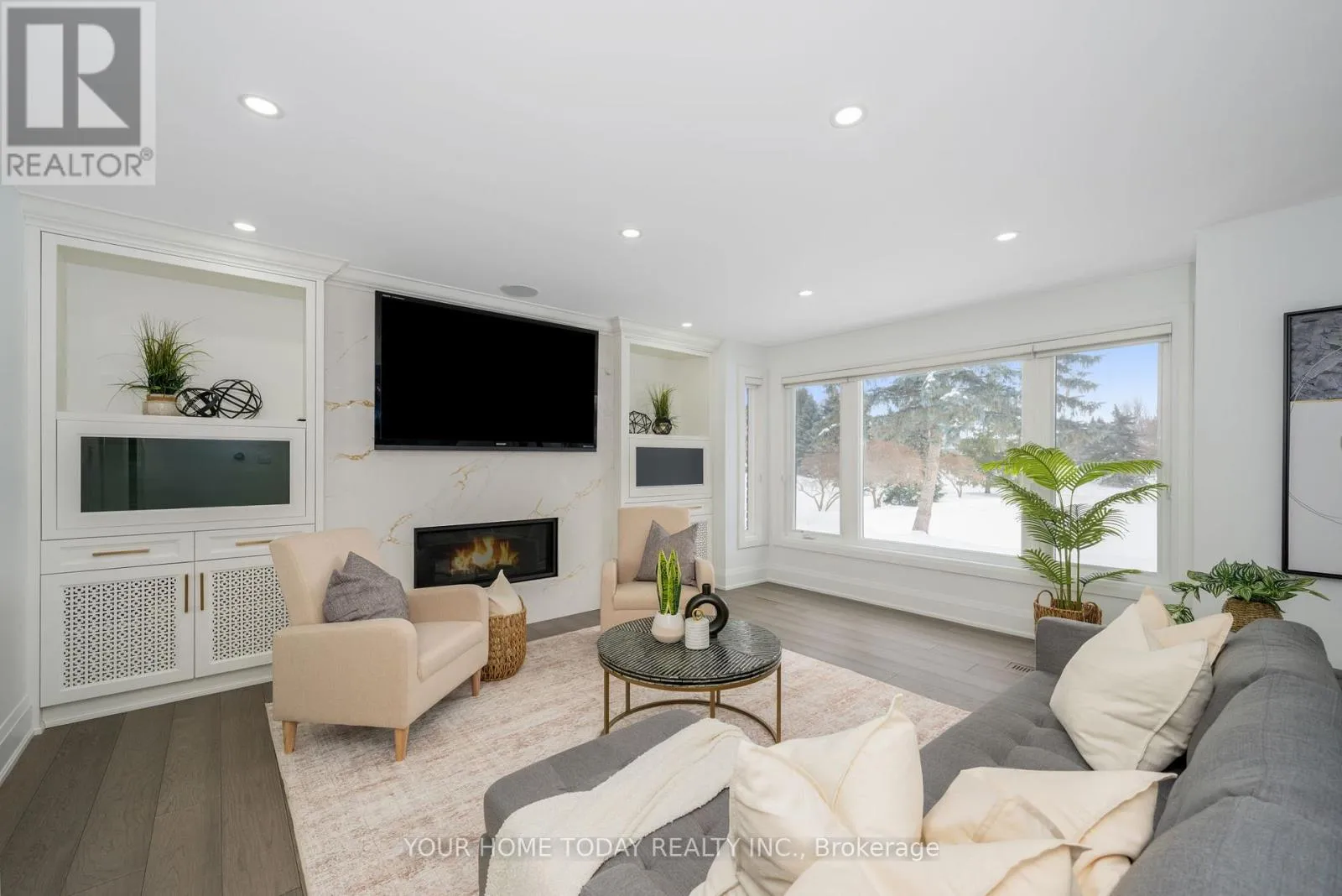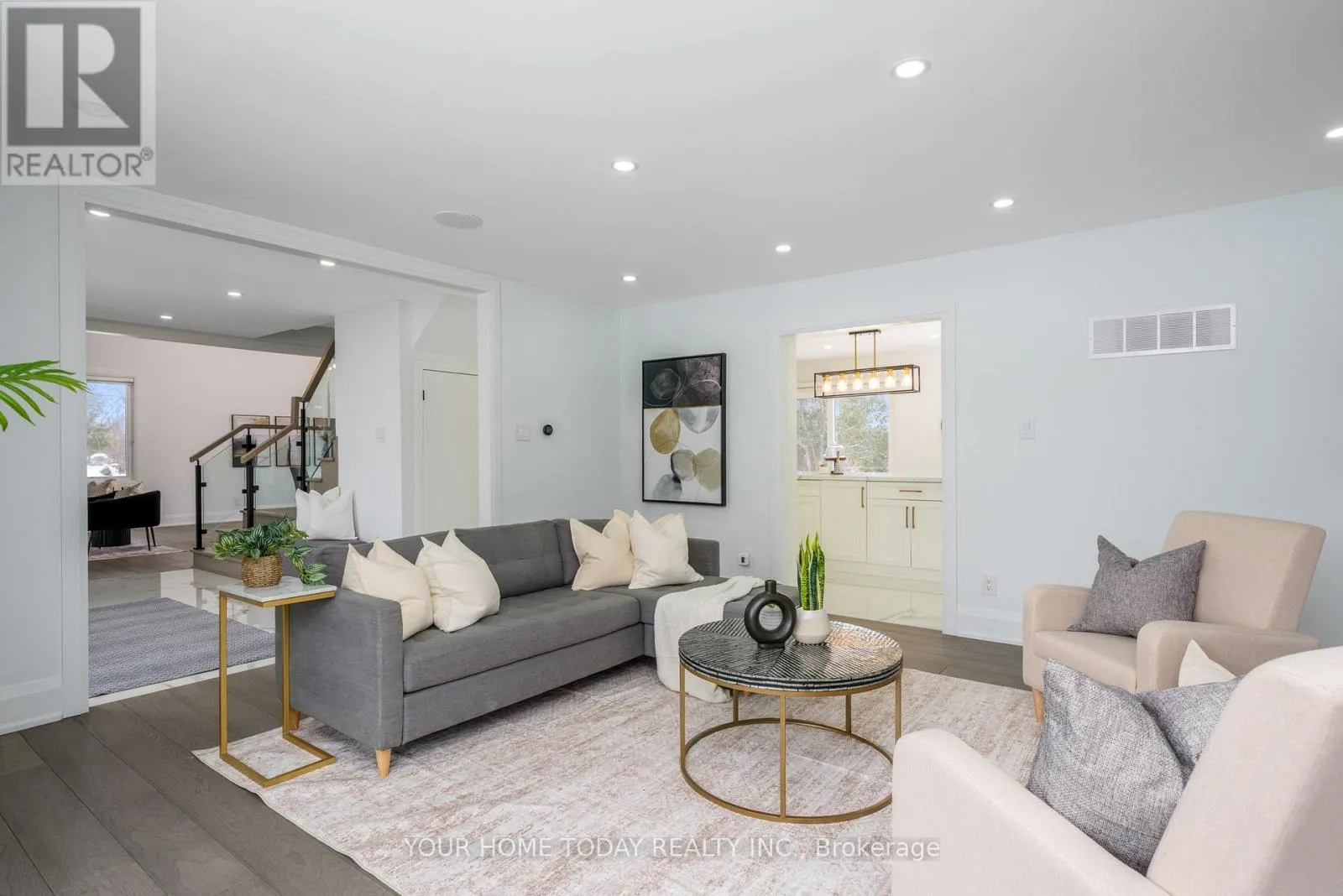 Cross Streets: Trafalgar and 15 Sideroad. ** Directions: Trafalgar, 15 Sdrd., Chantelay. Situated in a quiet executive enclave and set well back from the road on a private and breathtaking, 1.5 acre lot with no homes directly behind, this striking custom-built home offers classic design enhanced by exceptional modern updates. Extensively renovated over the past five years with designer flair and meticulous attention to detail, the home showcases gorgeous, engineered hardwood and ceramic flooring, abundant pot lighting and a consistent upscale aesthetic throughout. At the heart of the home is a chef-inspired kitchen featuring an oversized island with waterfall edge and seating, quartz countertops and premium appliances. Floor-to-ceiling cabinetry with glass accents and a walkout to the patio complete this stunning space. The inviting family room offers a toasty fireplace framed by custom built-in shelving, while the combined living and dining rooms impress with vaulted ceilings, expansive windows, and a striking fireplace set against an eye-catching feature wall. A sleek glass-railed staircase leads to the upper level where four generously sized bedrooms and a loft await. The upper foyer is both stylish and functional, featuring built-in organizers for added storage and a large window that fills the space with natural light. The primary retreat includes a walk-in closet with custom organizers, a decadent ensuite and access to a finished loft area above the garage - perfect as a sitting room, office or studio. A second primary suite enjoys ensuite access to another beautifully appointed bathroom and built-in closet organizers. Two additional bedrooms share a lavish main bath. The unfinished basement offers a wide-open canvas ready to be customized to suit your needs. Parking is plentiful with space for 10 vehicles in the driveway plus an attached 3 car garage. Ideally located close to schools, parks, trails, recreation centre, shopping and more with easy access to main roads for commuters. This is executive living at its finest! (id:27476)