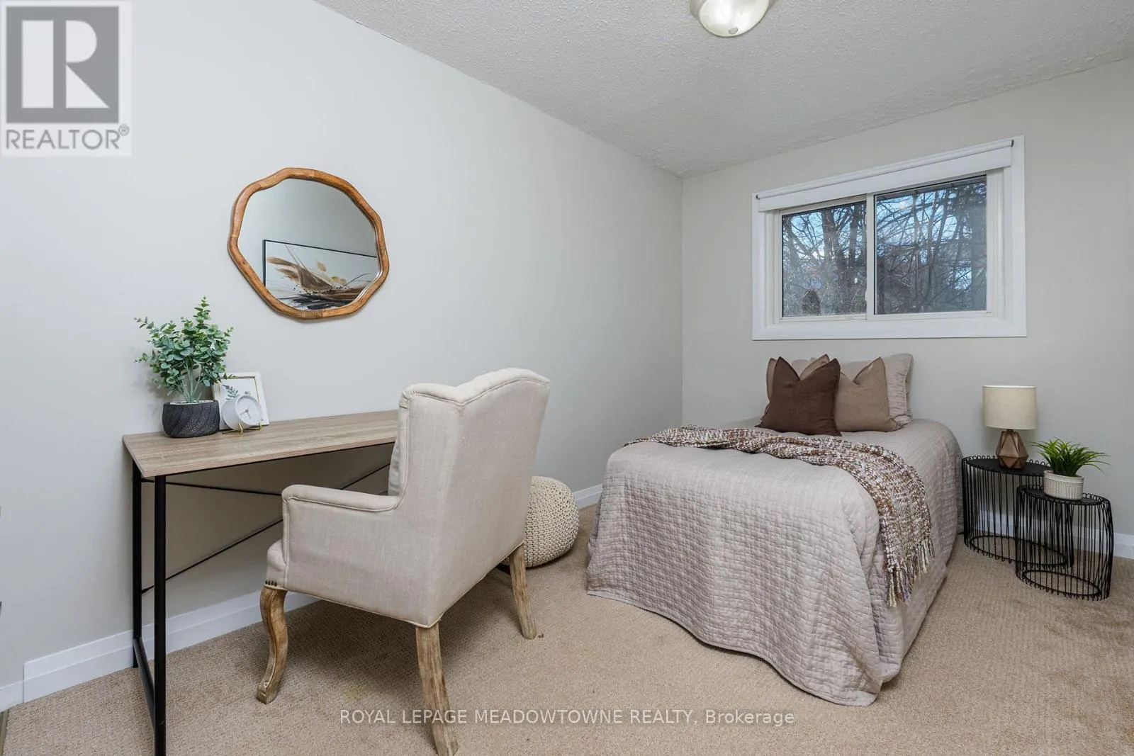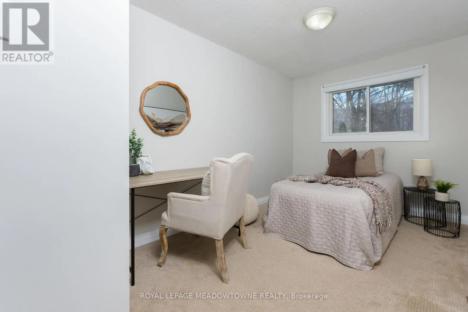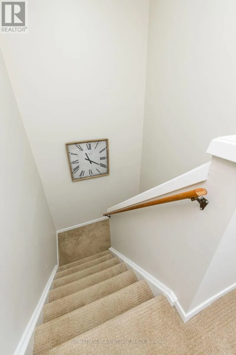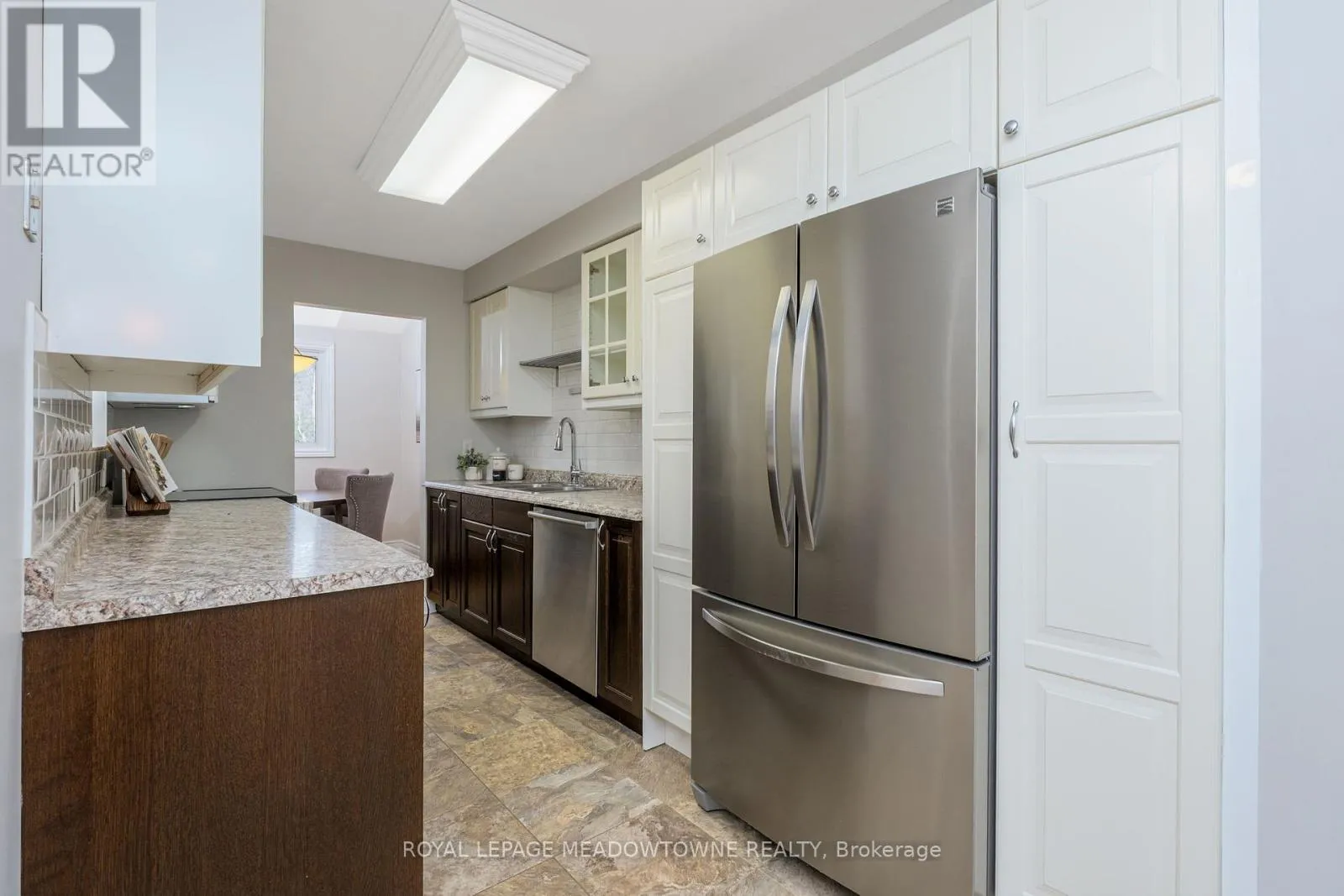 Cross Streets: River Dr/Mountainview Rd N. ** Directions: North on Mountainview Rd N, East on River Drive, North on John St, East on Lynden Circle. Move-in Ready 3 bedroom, 2 bathroom townhouse overlooking the serenity of the Credit River. Before stepping inside, take a moment to appreciate the stone porch and the curb appeal of the etched glass insert in the front door casting light into foyer. The living room with hardwood floors opens to a large deck guaranteed to provide a happy place for meals and gatherings. The updated kitchen with a pass-thru, glass cupboards, white tile backsplash and stainless steel appliances leads to the dining area which is illuminated by skylights. Upstairs there are three freshly painted bedrooms and a semi-ensuite 4-piece bathroom adjacent to the large primary bedroom with wall-to-wall closets. The finished rec room provides additional space to relax and play. (id:27476)