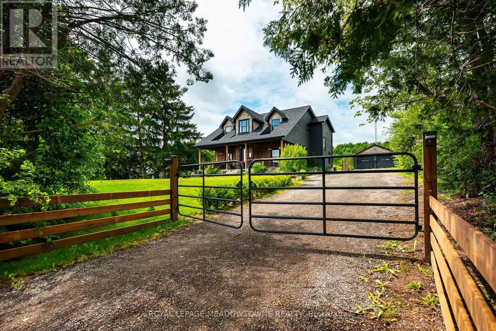 TENTH LINE & 27 SDRD Custom-Built Modern Farmhouse on Nearly 2 Acres Backing Conservation! Custom built in 2019 by the current owner, this modern farmhouse offers approx. 3,300 sq ft of finished living space, featuring 5 bedrooms, 2 kitchens, and a layout designed for family living and entertaining. Ideally located between Silver Creek and Terra Cotta Conservation Areas, just minutes to the Credit River, Glen Williams Arts District, and only 10 minutes to Georgetown, Erin, and Brampton with easy highway access. Set on just under 2 private acres abutting conservation land, the home blends contemporary style with timeless country charm. The chef's kitchen showcases a full-size side-by-side fridge and freezer, dual-fuel five-burner gas range, and extensive custom cabinetry. The primary suite includes a spa-like ensuite with oversized soaker tub and Niagara Escarpment views, plus a dressing room with balcony (easily converted back to a bedroom). The finished lower level offers a private one-bedroom suite with separate entrance, ideal for guests or multigenerational living, plus a home gym. Enjoy a long gated driveway, covered front and rear porches, landscaped grounds, and an oversized two-car garage with rear yard access and EV charging.Well 5 gpm. GenerLink transfer switch. Septic, furnace, windows, shingles, plumbing & 200-amp electrical (2019). AC 2025. Garage electrical upgrade 2024. Home drawings attached. (id:27476)