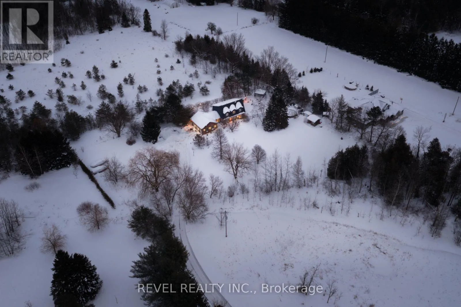 Trafalgar/HWY 7 Nestled On 2.84 Acres Of Serene, Private Land, This Exquisite Custom Estate Offers A Rare, Resort-Like Sanctuary. Over 3200 Sq Ft Of Finished Living Space. Enter Through A Gated Driveway And Be Welcomed By Professionally Landscaped Grounds Featuring Forested Areas, A Creek, Flagstone Pathways, Multi-Level Terraces, Fountains, Ambient Lighting, A Fire Pit, An Above-Ground Pool, And Expansive Deck - Perfect For Relaxation Or Entertaining. The Home Offers 3 Spacious Bedrooms And 4 Bathrooms, Including A Primary Suite With A Spa-Inspired Ensuite, Air-Jet Tub, Glass Shower, And Custom Walk-In Closet. Two Additional Bedrooms Share A Beautifully Tiled Bath With Glass Shower. The Main Floor Showcases A Chef's Dream Kitchen With Custom Maple Cabinetry, Miele Appliances, Liebherr Fridge, Built-In Coffee Station, And A Versatile Layout For Multiple Cooks Or A Large Family. The Living Room Features A Fireplace, Built-In Office, Hardwood And Slate Floors, Pot Lighting, Mudroom With Garage Access, And Powder Room. The Finished Basement Includes A Recreation Room, Large Bonus Space With Custom Cabinetry, Commercial True Fridge/Freezer, Professional Wine Fridge, Walk-Out Access, And A 3-Piece Bath Ideal For Extended Family Or In-Law Suite Potential. Updates Include A New Roof (2025), Water Pump (2022), Septic System And A/C (2020), Plus Fibre High-Speed Internet. Every Detail Of This Remarkable Property Reflects Quality, Luxury, And Thoughtful Design. (id:27476)