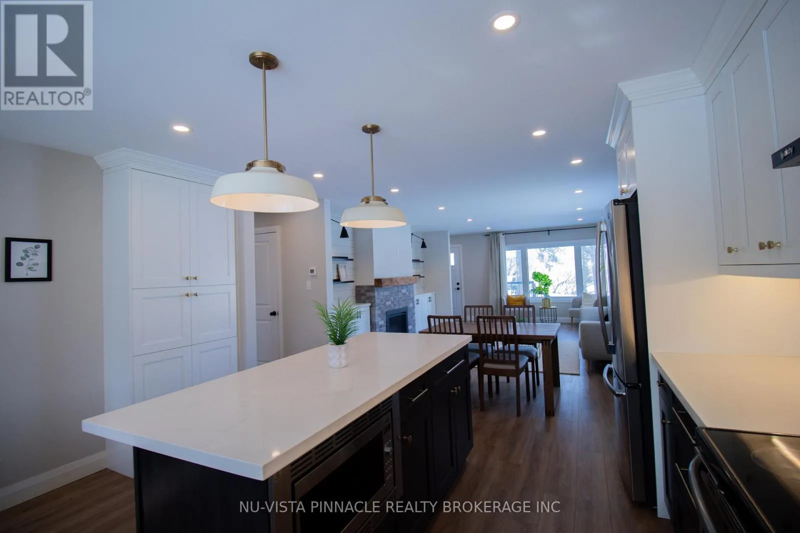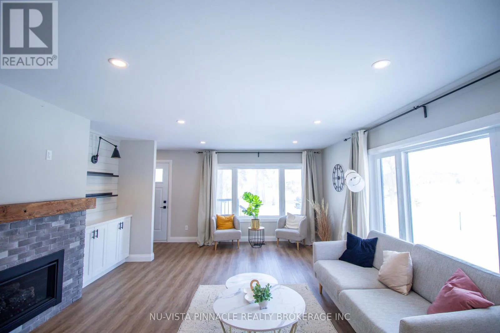 Cross Streets: HWY 7/ Dublin Line. ** Directions: From Guelph Line/Halton Regional Rd 1 , turn onto Eramosa-Milton Townline/Halton Regional Rd 32, Turn right onto ON-7 (signs for Ontario 7 E). Arrive!. WOW-this is the bungalow YOU have been waiting for | Lower Level In-Law Suite | Forest Views From Backyard | Professionally renovated from top to bottom, this stunning open-concept home blends modern design with peaceful forest views you'll never want to leave. The show-stopping chef's kitchen features a large centre island, quartz countertops, soft-close cabinetry, pot lights, and durable vinyl flooring-perfect for entertaining while overlooking the serene backyard forest. The bright great room impresses with a cozy propane fireplace, shiplap feature wall and oversized windows.Main-floor bedrooms offer vinyl flooring for comfort and efficiency, while the designer 4-piece bath delivers sleek, modern style. Need space for family or an in-law suite? With a separate entrance, a 2-BEDROOM IN LAW SUITE in the lower level offers an open-concept layout, stainless steel kitchen with dishwasher, pot lights, vinyl flooring, and a full 4-piece bath-ideal for multigenerational living.Enjoy a large backyard with room to play and relax by the fire pit, with serene views overlooking the forest. | Extensively upgraded for peace of mind: furnace & A/C, on-demand Bosch water heater, R60 attic insulation, R20 basement insulation, Safe & Sound floor insulation (2022), roof, soffits, eavestroughs with leaf guards (2022) 200-amp service with all new wiring (2022), windows, exterior doors, garage door & opener (2022) | Move-in ready. Immediate closing available. This is a must-see-book your showing today! (id:27476)