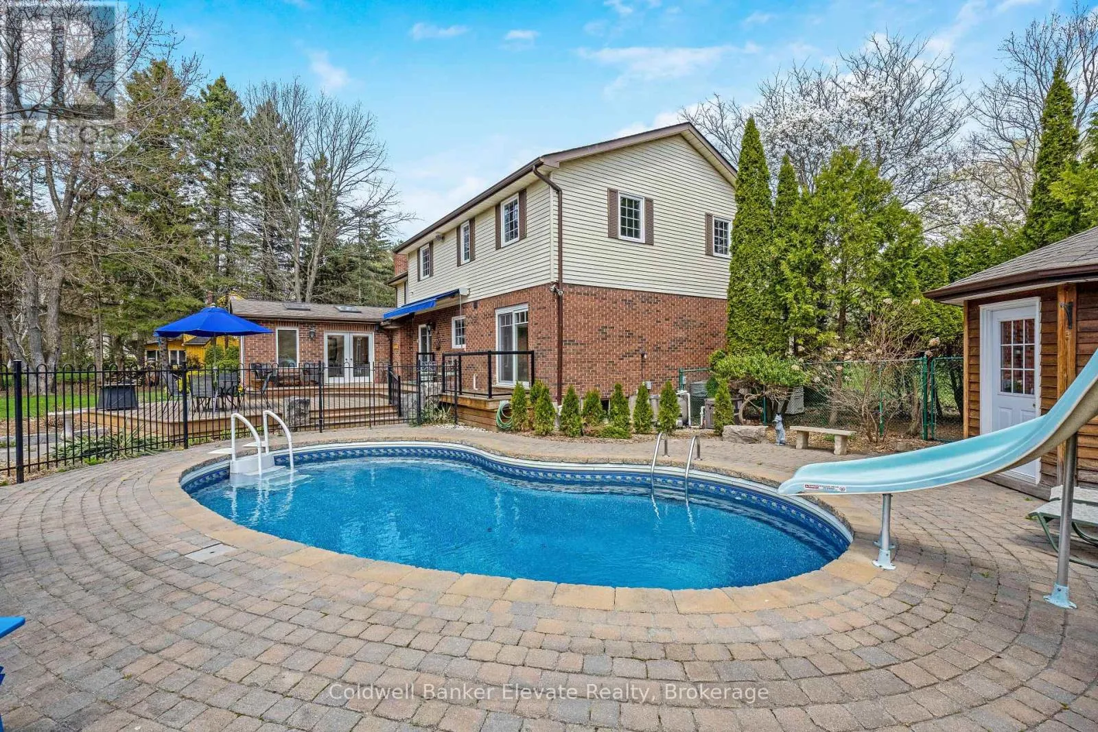 Cross Streets: 8th Line/ 22 Sdrd. ** Directions: East on 22nd Sdrd, south on 8th Line. Enjoy the convenience of a paved shared laneway leading to your private driveway, all nestled on 2.5+ acres in the peaceful outskirts of Georgetown & Glen Williams*This custom-built family home is ideally positioned, backing onto Silver Creek & set well back from the road for exceptional privacy*At the heart of the home is a spectacular great room, flooded with natural light*Move-in ready and thoughtfully updated, the home features over $100,000 in upgrades, including fresh paint and new flooring throughout*Formal living and dining rooms provide elegant spaces for entertaining, while the central kitchen and sunlit breakfast area are perfect for everyday living*With three separate walkouts, indoor/outdoor living is effortless, seamlessly connecting the home to its enchanting backyard*The generous primary suite offers a walk-in closet & 4-piece ensuite, complemented by two additional well-sized bedrooms, a 4-piece family bath, & a fourth bedroom with its own 3-piece ensuite*A fifth bedroom, currently used as a laundry room, offers flexible space for a home office, craft room, or dressing room*The finished basement is ideal for games & recreation rooms or the potential creation of a full in-law suite*A second entrance would be easy to add, & provisions for a second staircase further enhance connectivity between levels*Outdoors, the sprawling backyard is an entertainer's dream, featuring an inviting inground pool, an enclosed gazebo for summer evenings, and a massive deck perfect for al fresco dining*Follow the gentle sound of the creek to the edge of the property and enjoy a peaceful forest bath among the trees*Bonus detached, insulated workshop with loft, powered & ready for use. A great artist's studio, home-based business, or rustic guest space, the possibilities are endless. A standby generator adds even more peace of mind*This well-loved home truly offers the complete package: country living with modern convenience, privacy, space, and exciting future potential. (id:27476)