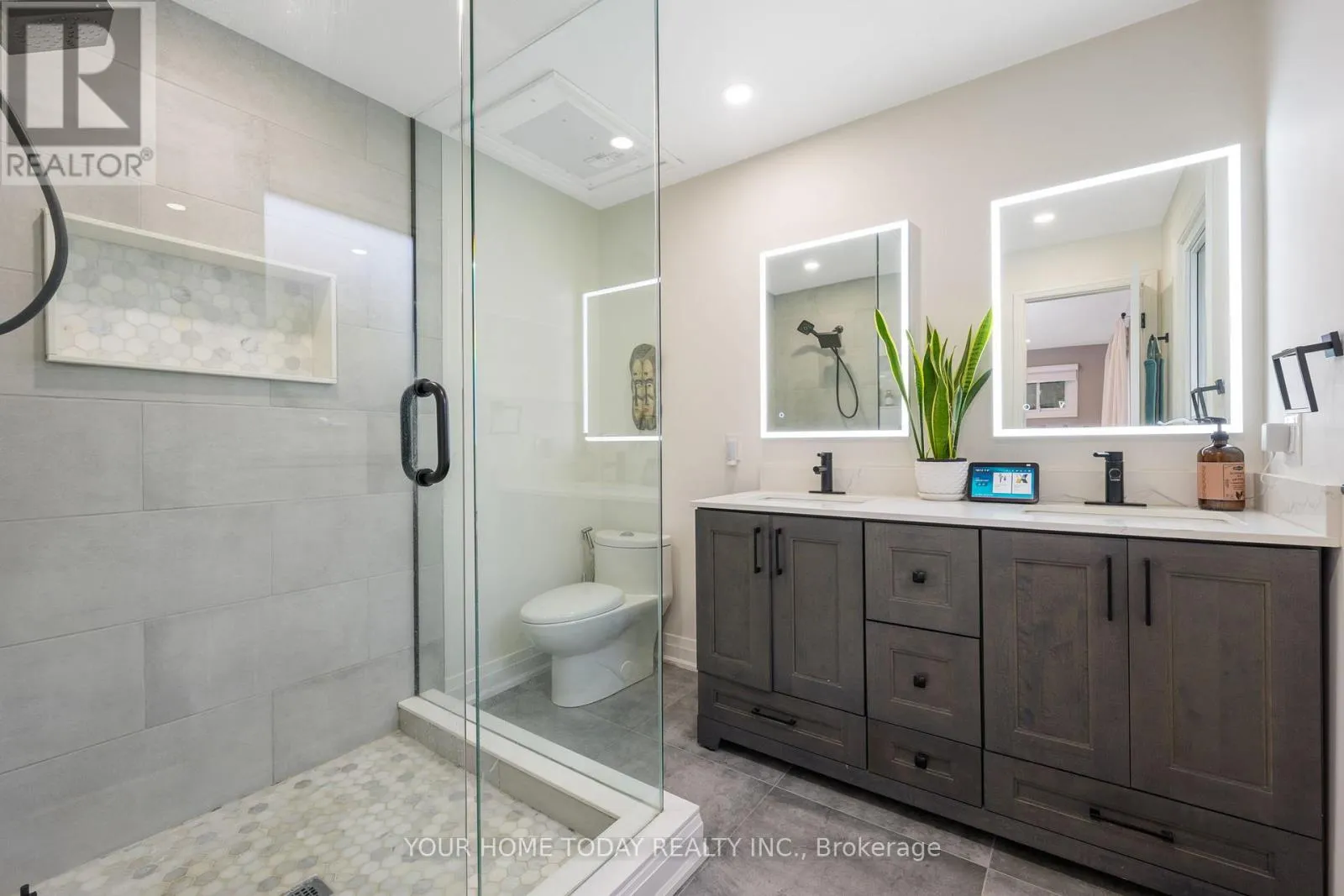 Cross Streets: Maple Ave. and Main S (Eighth Line). ** Directions: Maple Ave and main S (Eighth Line). Sought after Park District- Extensively renovated! A huge, beautifully landscaped lot (.298 acre) and private backyard oasis complete with a large partially covered deck, enclosed swim spa (year-round enjoyment) and gorgeous mature grounds set the stage for this exceptional custom-built home. Inside, the meticulous, recently updated, interior showcases elegant quality finishes paired with a designer flair and attention to detail a winning combination! The modern kitchen features heated ceramic tile flooring, quartz countertops, island, breakfast bar with striking waterfall edge, stainless steel appliances and two pantries. The kitchen opens to the dining room which flows into the living room, both rooms accented by striking wood-beamed ceilings and oversized windows that fill the space with natural light. Just off the kitchen, a bright four-season sunroom (heated ceramic floor) offers a tranquil retreat with walkout access to a partially covered deck ideal for seamless indoor-outdoor entertaining. The inviting family room features a cozy gas fireplace along with direct access to the main floor laundry room, powder room and attached garage, blending comfort with everyday practicality. A lovely wood staircase leads to the upper level, where four spacious bedrooms including three with spa-like ensuite bathrooms (all with heated ceramic tile flooring), offering comfort, privacy, and a touch of luxury. The finished lower level adds to the living space with a large recreation room, den/bedroom, office area, 3-piece bath and plenty of storage/utility space. Set on a breathtaking mature lot with a durable metal roof and excellent parking, this home blends timeless character with lasting quality. Ideally situated across from Cedarvale Park - home to the best tobogganing hill around and just minutes to schools, rec centre, hospital, library, downtown, GO, trails and golf. A rare opportunity in a coveted location, perfect for commuters and families alike. (id:27476)