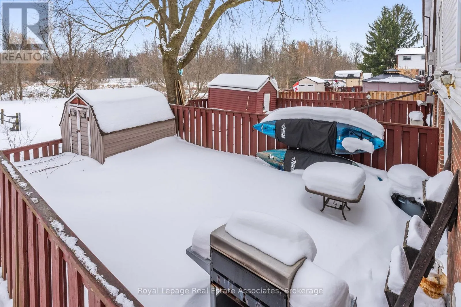 Cross Streets: Main St/Mill St E. ** Directions: Main St/Kingham Rd. Welcome to this bright and spacious end-unit townhome with no rear neighbours, offering a functional and inviting layout. This carpet-free home features 3 bedrooms, 3 bathrooms, and 1 parking space, with an open-concept living and dining area highlighted by a large window overlooking the backyard and a cozy fireplace. The bright kitchen includes a large window, a double sink, ceramic backsplash, and overlooks the dining space, making it perfect for both daily meals and entertaining. Upstairs, the primary bedroom offers a double closet and a private 2-piece ensuite, while two additional good-sized bedrooms each include their own closets and overlook the backyard, along with a full 4-piece bathroom and a linen closet. The ground floor features a versatile family room with a gas fireplace and a walkout to the fenced backyard, a convenient 2-piece bathroom, and a laundry room with a sink and extra storage. With unobstructed rear views and a great layout, this move-in-ready home is easy to love, and low maintenance fees include snow removal, exterior maintenance, and landscaping. Ideally located just minutes to everyday amenities, schools, parks, the Acton GO Station, the library, and more. (id:27476)