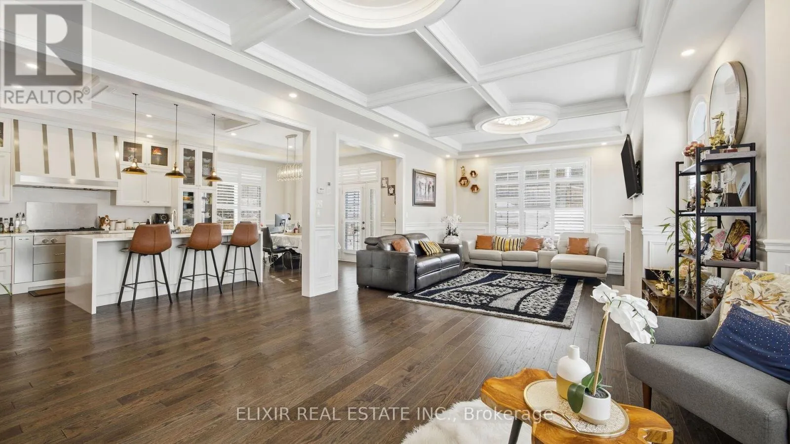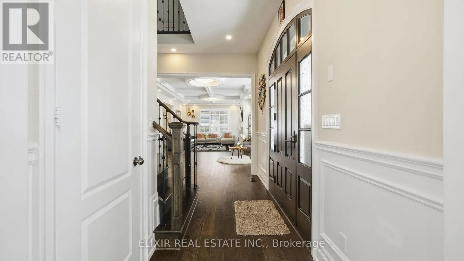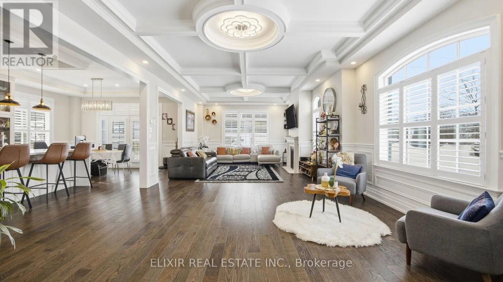 Cross Streets: 8th Line/ West Branch Dr. ** Directions: Right turn on 8th line. Welcome to a statement of refined luxury in the prestigious Riverwood community of Halton Hills. Set on a rare, premium corner lot, this exceptional 2018-built detached residence offers 4+1 bedrooms and 5 bathrooms, thoughtfully designed for elevated living with uncompromising attention to detail. The home's stone and brick façade, paired with professionally installed interlocking in the front and backyard, delivers timeless curb appeal with effortless maintenance. Step inside to an atmosphere of sophistication highlighted by 10-ft custom coffered ceilings, rich premium hardwood flooring, designer wainscoting, and pot lights throughout. The expansive, sun-filled layout features separate living and family rooms with a defined dining space, creating the perfect balance between elegant entertaining and everyday comfort. The heart of the home is a chef-inspired gourmet kitchen, showcasing high-end JennAir stainless steel appliances, custom Cameo cabinetry, Caesarstone countertops, and a striking oversized island-designed for both culinary excellence and upscale hosting. A custom-stained staircase seamlessly matches the hand-scraped engineered hardwood flooring, leading to the upper level where luxury continues. Upstairs, discover four generously sized bedrooms, including a primary suite retreat with soaring ceilings, his-and-her closets, and a spa-like 5-piece ensuite. Each additional bedroom features a private or semi-private bathroom, offering hotel-style comfort and privacy for family and guests. The fully finished basement extends the home's luxurious living space with an additional bedroom, a large recreation area, and an open-concept exercise zone-ideal for guests or a home wellness retreat. Located near parks, trails, top-rated schools, and community centers. This is a rare luxury lifestyle opportunity in Georgetown's most sought-after neighborhood. Once you experience it, there's no comparison (id:27476)