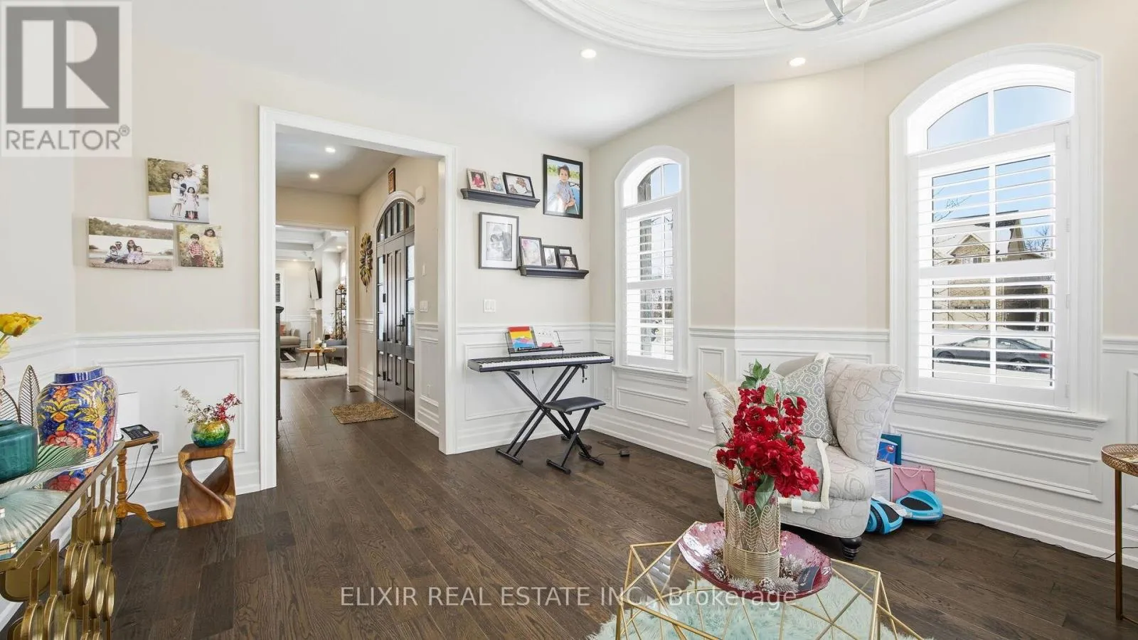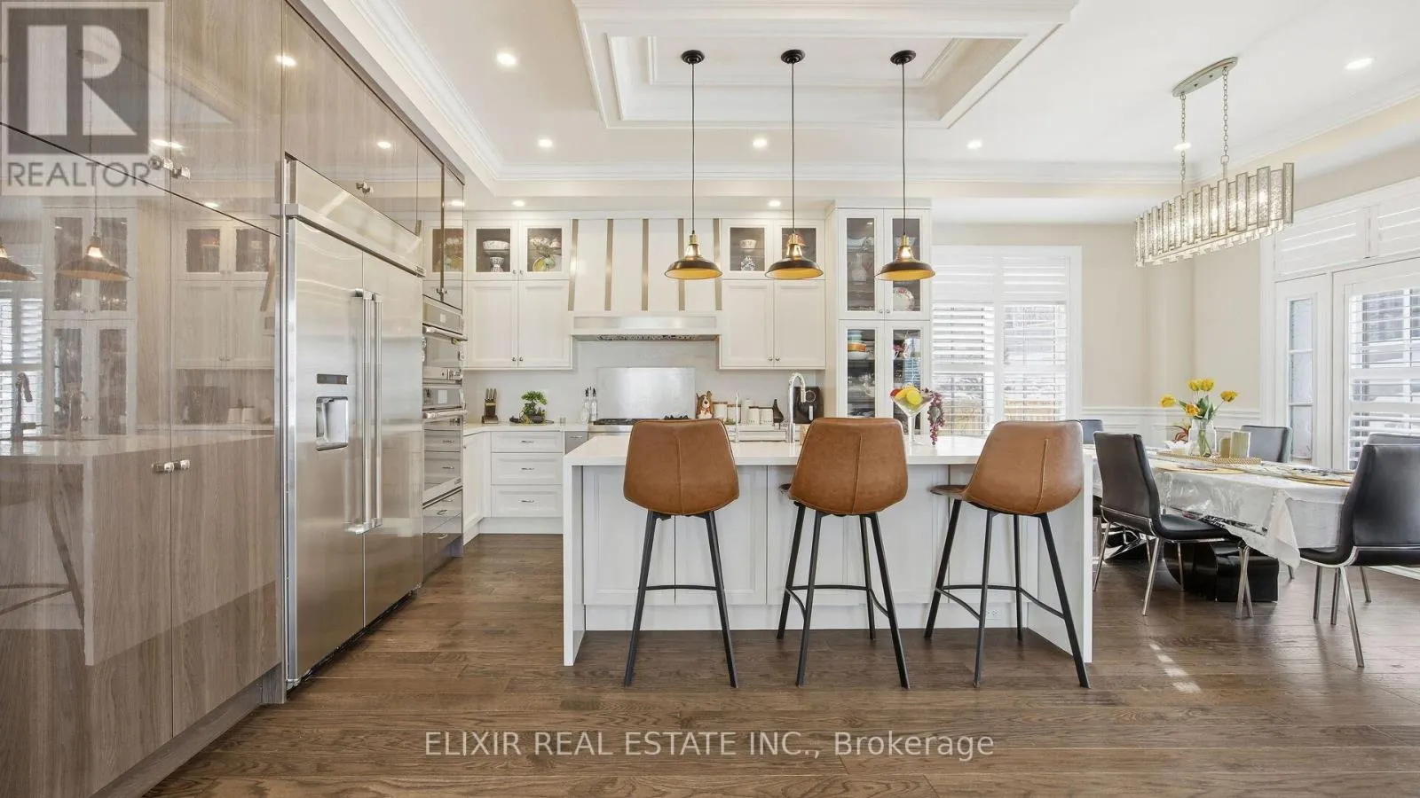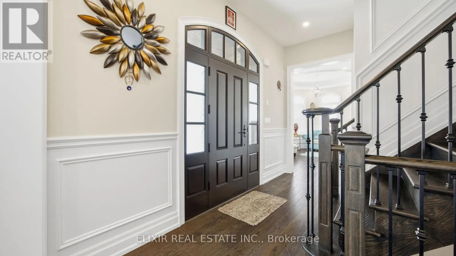 Cross Streets: 8th Line/ West Branch Dr. ** Directions: Right turn on 8th line. Welcome to a statement of refined luxury in the prestigious Riverwood community of Halton Hills. Set on a rare, premium corner lot, this exceptional 2018-built detached residence offers 4+1 bedrooms and 5 bathrooms, thoughtfully designed for elevated living with uncompromising attention to detail. The home's stone and brick façade, paired with professionally installed interlocking in the front and backyard, delivers timeless curb appeal with effortless maintenance. Step inside to an atmosphere of sophistication highlighted by 10-ft custom coffered ceilings, rich premium hardwood flooring, designer wainscoting, and pot lights throughout. The expansive, sun-filled layout features separate living and family rooms with a defined dining space, creating the perfect balance between elegant entertaining and everyday comfort. The heart of the home is a chef-inspired gourmet kitchen, showcasing high-end JennAir stainless steel appliances, custom Cameo cabinetry, Caesarstone countertops, and a striking oversized island-designed for both culinary excellence and upscale hosting. A custom-stained staircase seamlessly matches the hand-scraped engineered hardwood flooring, leading to the upper level where luxury continues. Upstairs, discover four generously sized bedrooms, including a primary suite retreat with soaring ceilings, his-and-her closets, and a spa-like 5-piece ensuite. Each additional bedroom features a private or semi-private bathroom, offering hotel-style comfort and privacy for family and guests. The fully finished basement extends the home's luxurious living space with an additional bedroom, a large recreation area, and an open-concept exercise zone-ideal for guests or a home wellness retreat. Located near parks, trails, top-rated schools, and community centers. This is a rare luxury lifestyle opportunity in Georgetown's most sought-after neighborhood. Once you experience it, there's no comparison (id:27476)