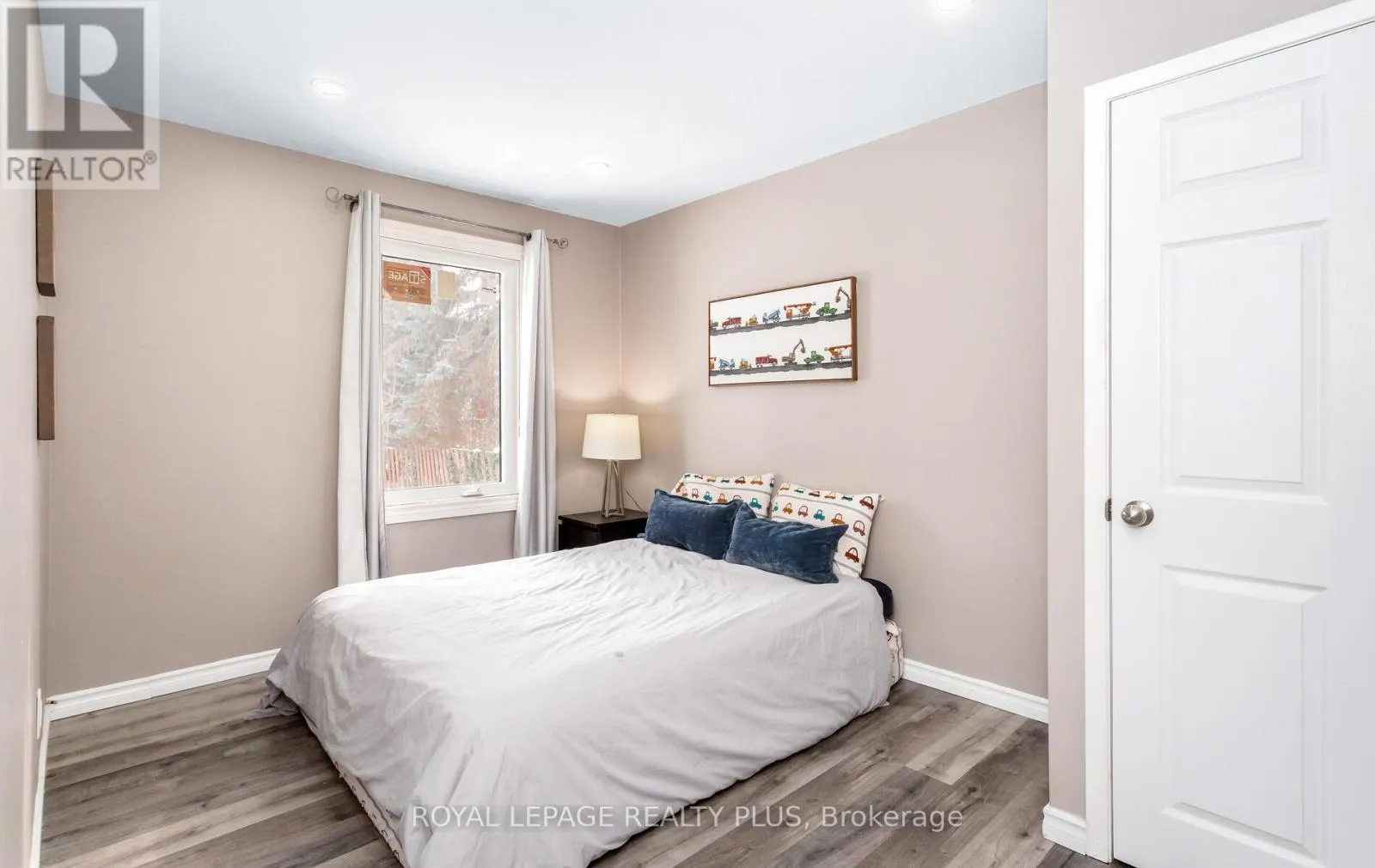 Ewing St. & Main St. N Small-town charm with big-city convenience-all right at your doorstep. This perfectly located 3-bedroom bungalow offers style, comfort, and unbeatable walkability. Larger than it appears, the home features modern finishes throughout, incl grey laminate flooring, pot lights, and a bright, updated kitchen w/ neutral white cabinetry, quartz countertops, S/S appliances, a sleek backsplash, and convenient walk-out access to the side yard. The sun-filled living room is warm and cozy with access to an inviting front porch. Three well-sized bedrooms complete the main floor, including a primary bedroom with two sliding doors that open to the rear deck. An updated 3-pc bathroom finishes the level. The finished bsmt adds valuable additional living space with a bedroom (currently used as an office), a rec room, a 4-pc bathroom, laundry, and plenty of storage-perfect for families, guests, or working from home. Outside, enjoy a large private backyard-ideal for summer BBQs, gardening, and entertaining. Short walk to downtown Georgetown, known for its welcoming shops, cafés, and summer farmers' markets. Just mins to Georgetown GO - ideal for commuters. Close to schools, parks, library, hospital, recreation centres, and places of worship. (id:27476)