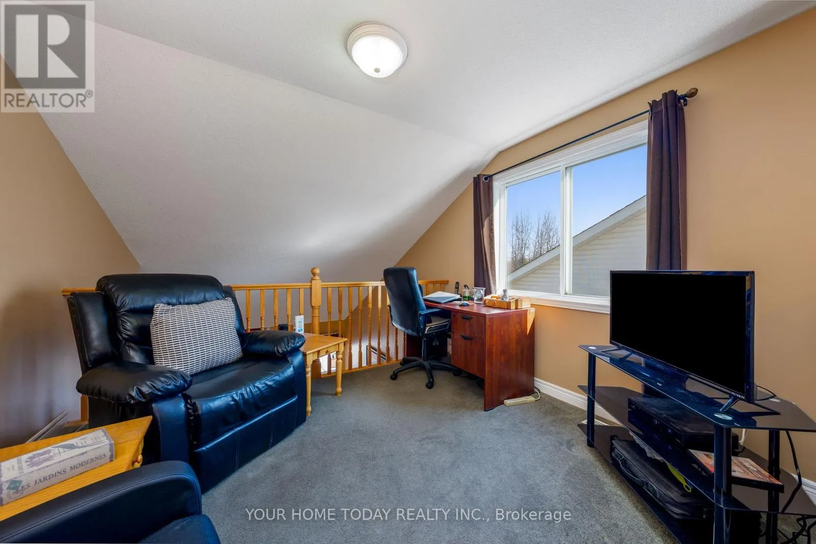 Cross Streets: Main St. N & Wallace St. ** Directions: Main St. N, Wallace, Doctor Moore. Rarely available 2+1 bedroom, 3-bathroom end-unit bungaloft townhouse offering desirable one-level living with the bonus of an upper loft and finished lower level. Tucked into a small enclave on a sought-after court, this meticulous one-owner home has been lovingly maintained with pride of ownership both inside and out. The sun-filled main level enjoys an open-concept floor plan featuring a well-appointed kitchen, dining area, and sun-filled living room with vaulted ceiling (open to the loft above), cozy gas fireplace and walkout to a large multi-level deck overlooking the private, nicely landscaped yard. Completing the main level are two bedrooms, including the primary with walk-in closet and 4-piece ensuite, a second 4-piece bathroom, convenient laundry and access to the garage. The upper loft adds to the living space offering a variety of uses - family room, office, playroom or reading nook - the choice is yours. A finished lower level further enhances the home with a spacious rec room, wet bar, office/third bedroom, craft room, cold cellar, 3-piece bathroom and an abundance of storage/utility space. Nicely landscaped front and back yards and a private drive complete this exceptional offering. Close to schools, shops, rec centre, GO station, Prospect Park (splash pad, pickleball and tennis courts), and beautiful Fairy Lake, with easy access to main roads for commuters. (id:27476)