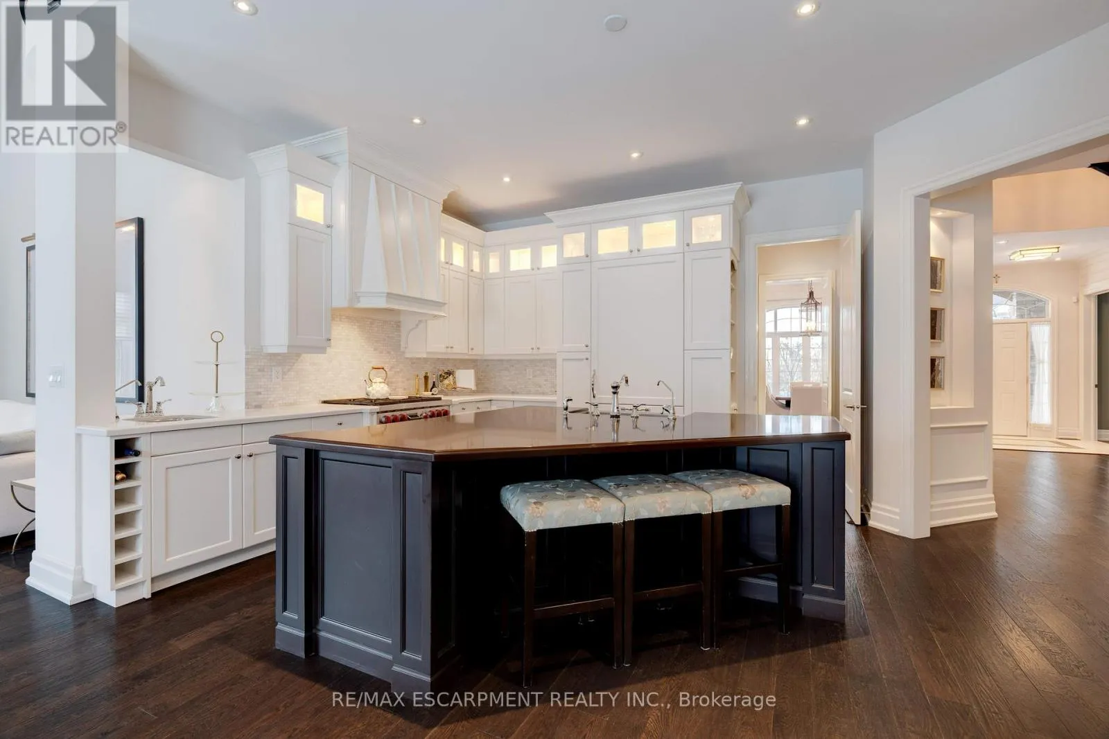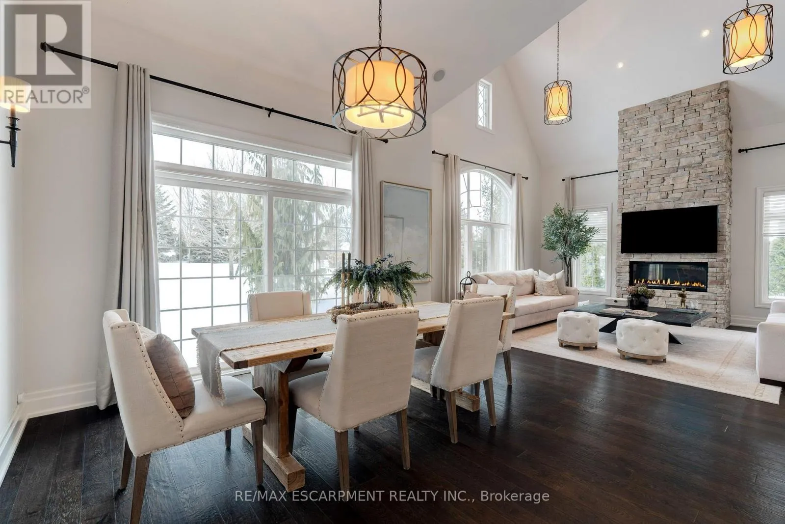 Confederation St/Main St Stunning bungaloft located in the prestigious Meadows on the Glen community in Glen Williams. This exceptional former model home offers approximately 6,000 sq. ft. of beautifully finished living space, showcasing premium upgrades and timeless design throughout.The gourmet kitchen features a large centre island, high-end finishes, and a convenient butler's pantry, all overlooking the impressive two-storey great room with a floor-to-ceiling stone fireplace and sun-filled breakfast area. A formal dining room sits opposite a charming office, complete with a coffered ceiling and built-in window seat. The main level is anchored by a luxurious primary suite with its own fireplace and a spa-inspired ensuite. A second private bedroom suite is also located on this floor. The upper level offers a library loft overlooking the great room, along with a third spacious bedroom suite. The fully finished lower level is designed for entertaining, featuring an outstanding theatre room, a well-appointed bar, and a wine room. Step outside to experience complete serenity-lush gardens, mature landscaping, and peaceful views create the perfect backdrop for morning coffee or an evening glass of wine. A rare offering in one of Glen Williams' most coveted enclaves. This is the lifestyle you've been dreaming of. Let's get you home! Luxury Certified. (id:27476)