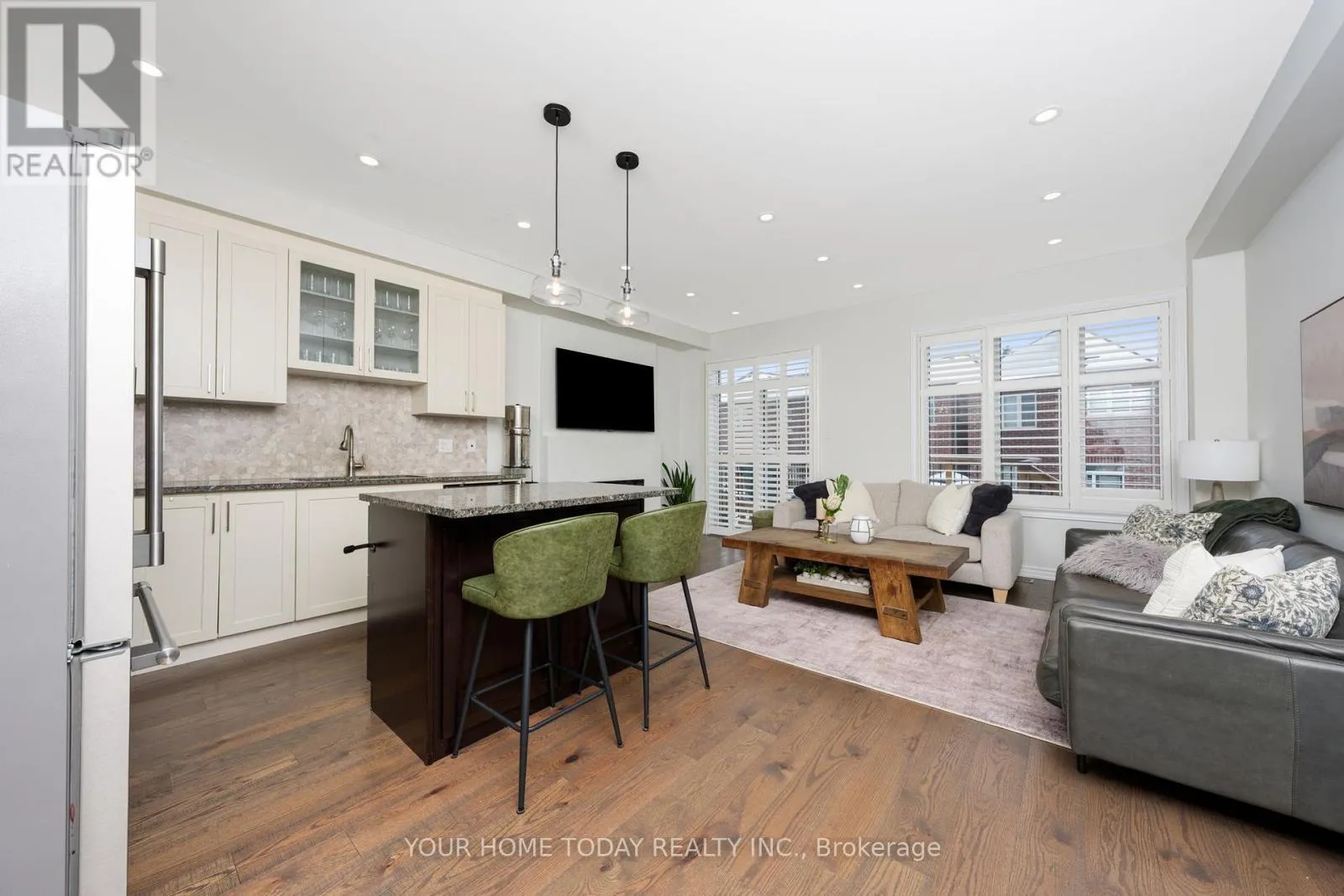 Highway 7 and McFarlane Drive Nestled in a sought-after small enclave, this beautifully appointed townhome offers an exceptional blend of style, comfort, and convenience. Ideally positioned just steps from a park and picturesque trail, the location perfectly balances nature and community living. The striking exterior showcases an elegant stone and stucco façade complemented by a welcoming covered portico that creates a warm and inviting first impression. Inside, the open-concept main level features 9 ft. ceilings and quality, tasteful finishes, including hardwood flooring and pot lights, creating a bright and inviting feel. The well-designed kitchen features two-tone cabinetry, centre island with breakfast bar, granite countertops, stylish mosaic backsplash, stainless steel appliances and seamlessly open to the living room - perfect both entertaining and family time. The living room offers a walkout to the deck, extending the living space outdoors. A sun-filled dining area flows beautifully into the foyer and is enhanced by an attractive wood staircase. Upstairs, the home offers three generously sized bedrooms, all finished with tasteful laminate flooring. The primary suite serves as a relaxing retreat complete with a walk-in closet and an elegant 4-piece ensuite. A nicely appointed 4-piece bathroom and convenient upper-level laundry complete this level. The finished lower level adds valuable living space, featuring a bright recreation room with large above-grade windows, office and 2-piece bathroom all enhanced by vinyl plank flooring and pot lights. Ample storage/utility space completes the package. Outside, enjoy a nicely landscaped fully fenced yard with a large deck along with covered and enclosed storage conveniently located beneath. The attached garage with house access and parking for 3 cars (1 in garage and 2 in driveway) are a bonus. Ideally situated close to schools, shops, restaurants, and the breathtaking Hungry Hollow Trail System with easy access to main roads for commuters. (id:27476)