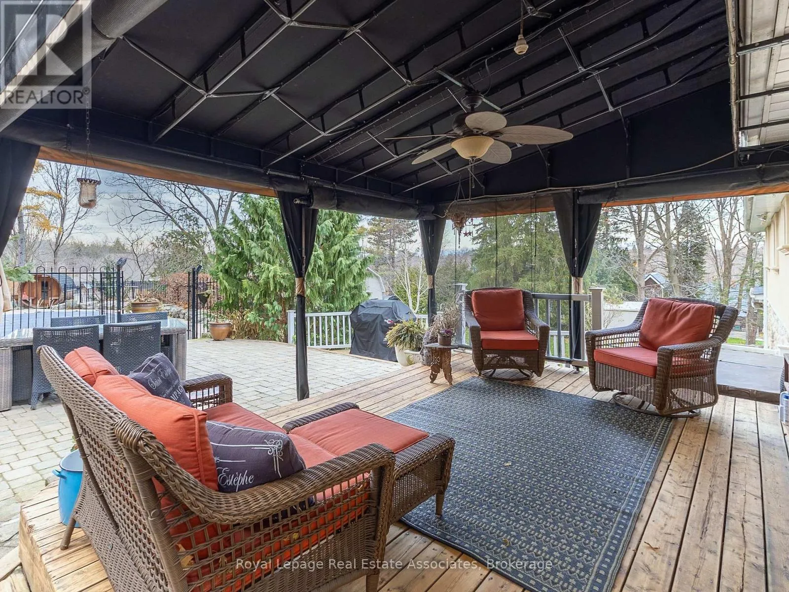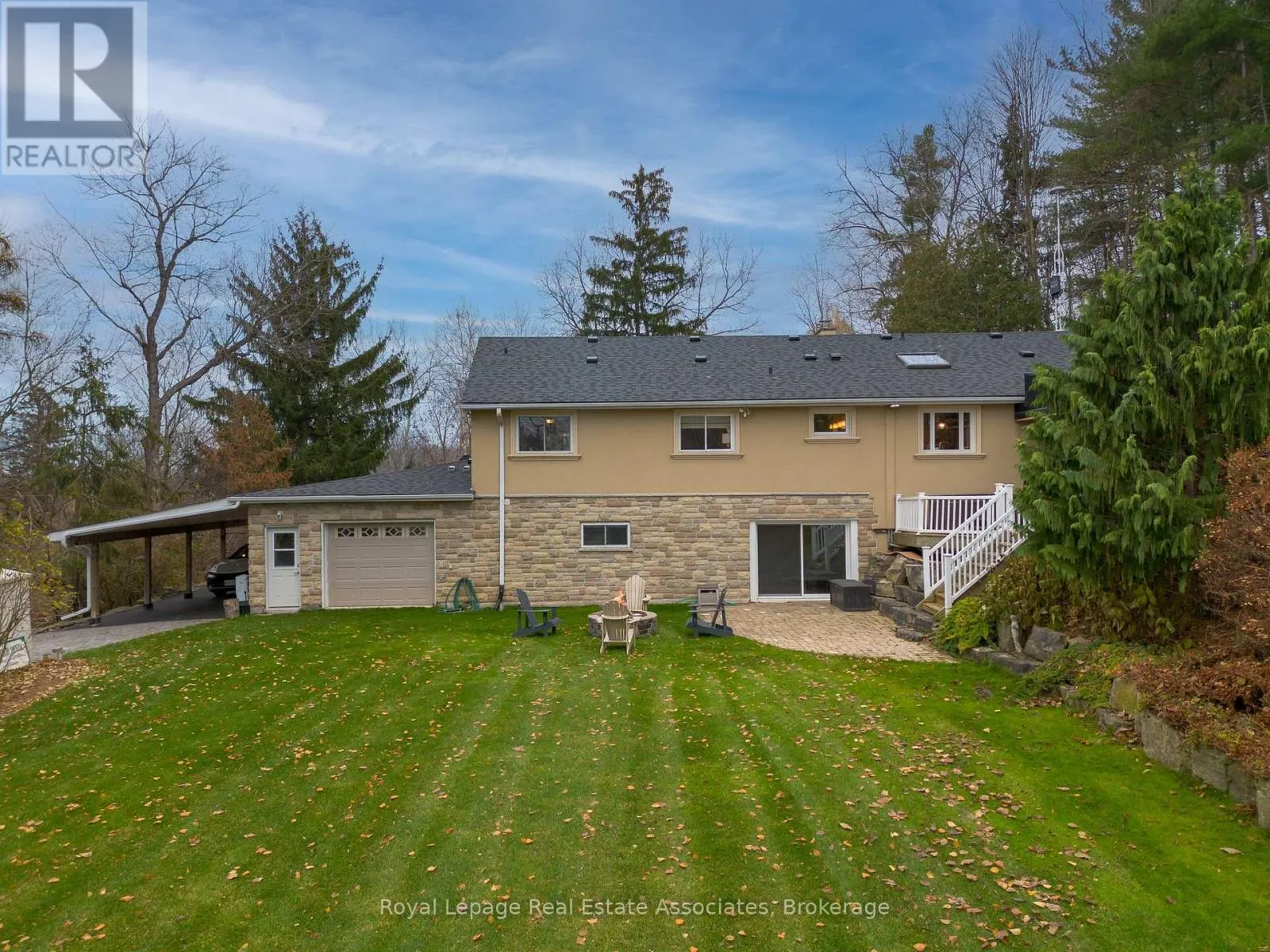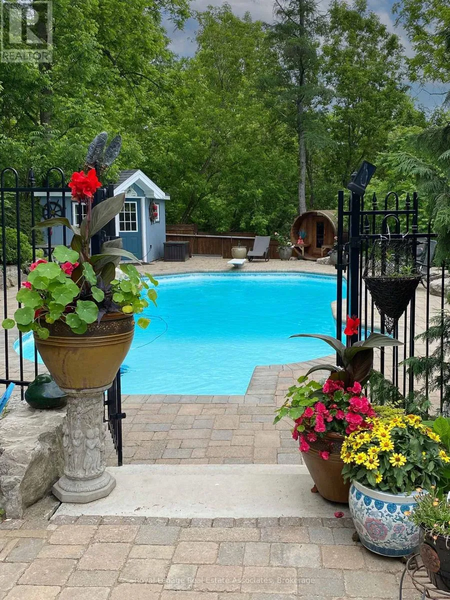8th line and 15 side road. Tucked away on a quiet dead-end cul-de-sac court, this stunning raised bungalow combines elegance, comfort, and versatility with rare country-style privacy just steps from city living. Perfect for families, entertainers, or those seeking multi-generational living, this home offers an exceptional lifestyle. Inside, you'll find a spacious layout featuring 4 bedrooms above grade, including a primary suite with his-and-her closets and convenient semi-ensuite access. The home offers a luxurious 5-piece semi-ensuite bath plus a powder room with laundry, balancing style with everyday practicality. The heart of the home is the expansive gourmet kitchen with skylight, designed with both function and entertaining in mind. The adjoining dining area flows seamlessly to the backyard, creating a natural extension of your living space. Gather in the inviting family room with a cozy fireplace, or enjoy cinematic nights with the built-in drop-down screen. The lower level impresses with a second full kitchen, 3-piecebath, and a private dwelling unit with its own entrance-ideal for extended family, guests, or rental income. This self-contained suite features 1 bedroom, 1 bath, a kitchen, laundry, and storage. Car enthusiasts and professionals will love the double tandem heated garage, partially converted into a stylish hair salon while still offering generous storage. Additional parking is effortless with an attached carport and a driveway for 10+ vehicles. A large barn at the rear provides secure space for your collector car or extra storage. The backyard is a true resort-style retreat. Enjoy the pool, sauna, and cabana built by Jameson Pools in 2010, complemented by an outdoor fire pit-perfect for summer gatherings or quiet evenings under the stars. The expansive grounds invite both entertaining and private relaxation in equal measure. This property truly offers it all: luxury, functionality, and endless possibilities-all in an unparalleled setting. (id:27476)