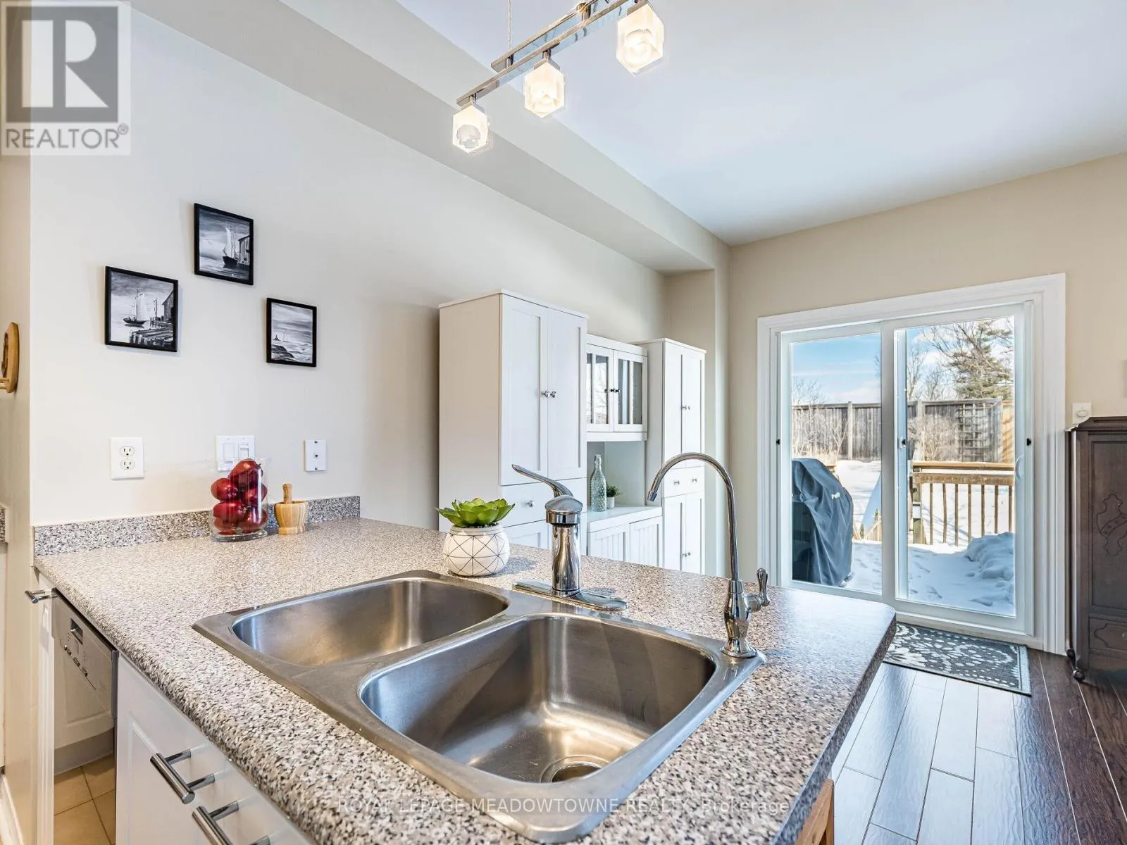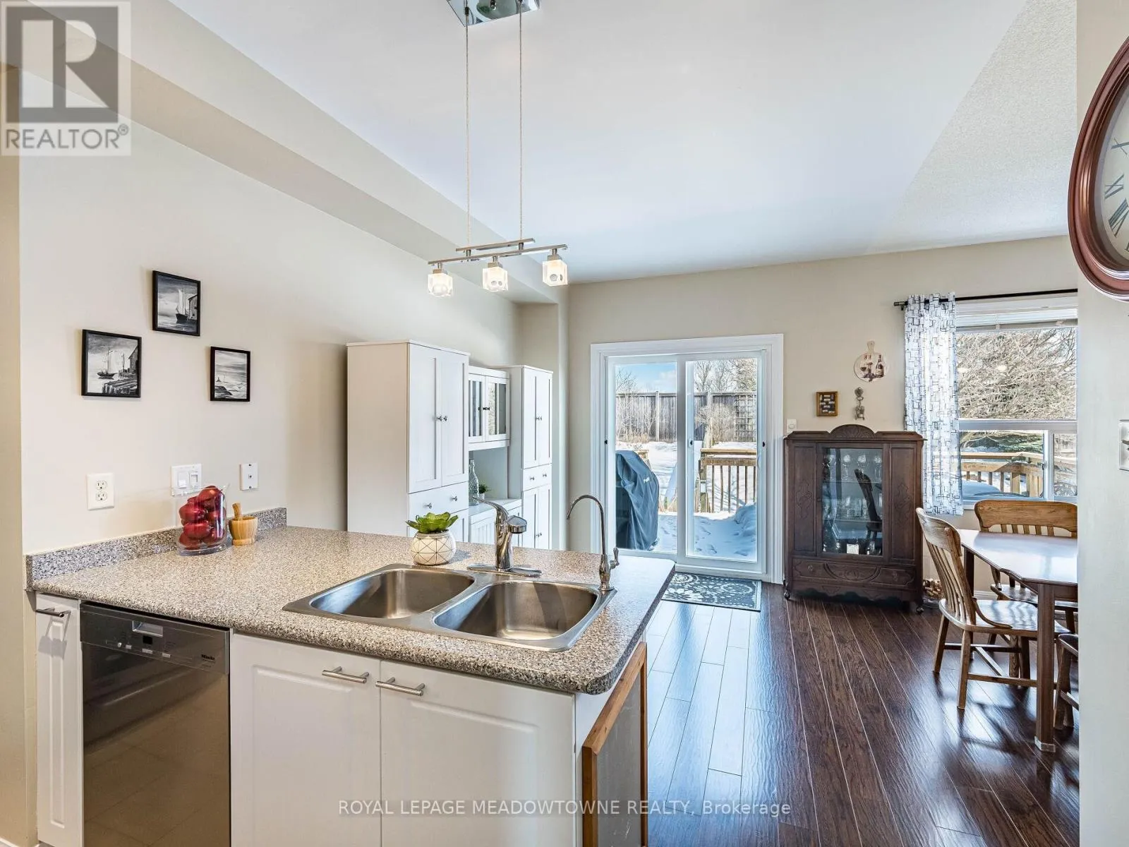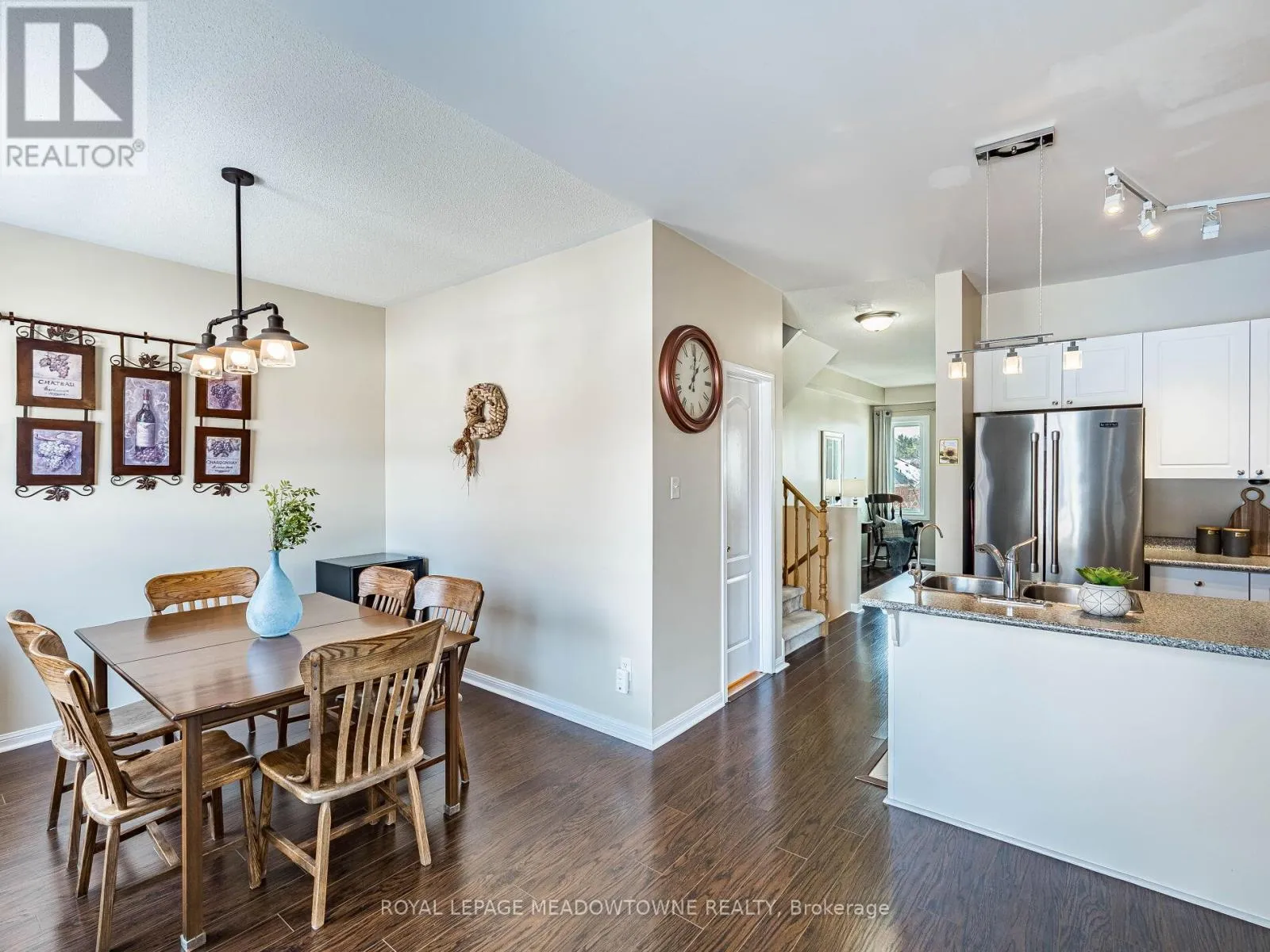 Trafalgar Rd & Princess Anne Dr Welcome to this beautifully maintained 3-bedroom townhome in the heart of Georgetown a rare opportunity featuring a 2-car garage, an exceptional find in townhome living. Thoughtfully upgraded and meticulously cared for, this home blends comfort, functionality, and modern convenience.Step inside to soaring 9-ft ceilings, durable laminate flooring, and a bright, open-concept main level designed for both everyday living and effortless entertaining. The kitchen truly stands out with soft-close cabinetry, smart storage solutions, stainless steel appliances, a premium JennAir induction/convection oven, Miele dishwasher, and a gas line ready for your BBQ on the walkout deck. New patio doors and high-efficiency windows including several Magic Windows with triple-pane glass and blackout shades fill the home with natural light while creating a quiet, energy-efficient retreat.Upstairs, you'll find 3 spacious bedrooms. The primary suite offers a large closet and private 4-piece ensuite complete with a relaxing soaker tub. A semi-ensuite main bath with a tiled shower serves the additional bedrooms, providing comfort and convenience for family or guests.The versatile lower level features large windows, a finished storage room, laundry/utility area, and direct access to both the backyard and garage perfect for organized, functional living. Additional highlights include a brand-new A/C, furnace (2022), owned tankless water heater (no rental fees), Culligan water purification system, water softener, central vacuum, Ecobee thermostat, 220V garage outlet, belt-drive opener, and a fully fenced backyard.Located just minutes from vibrant downtown shops, restaurants, parks, trails, schools, and the GO station, this home offers the perfect balance of small-town charm and commuter convenience.With rare garage space, extensive upgrades, and an unbeatable location, this is a standout opportunity you won't want to miss, book your private showing today and experience it for yourself. (id:27476)
