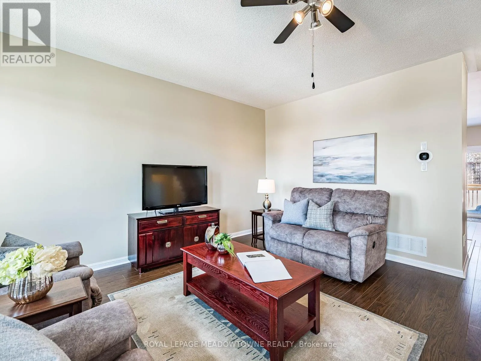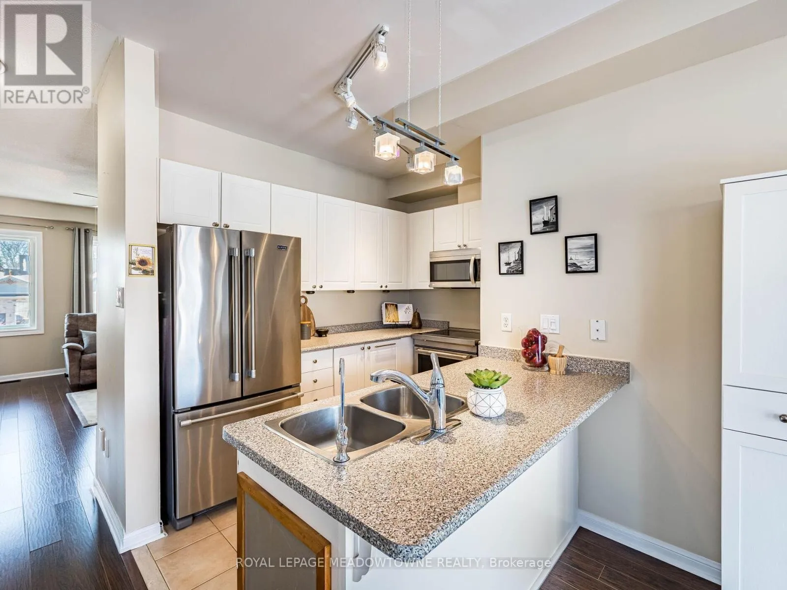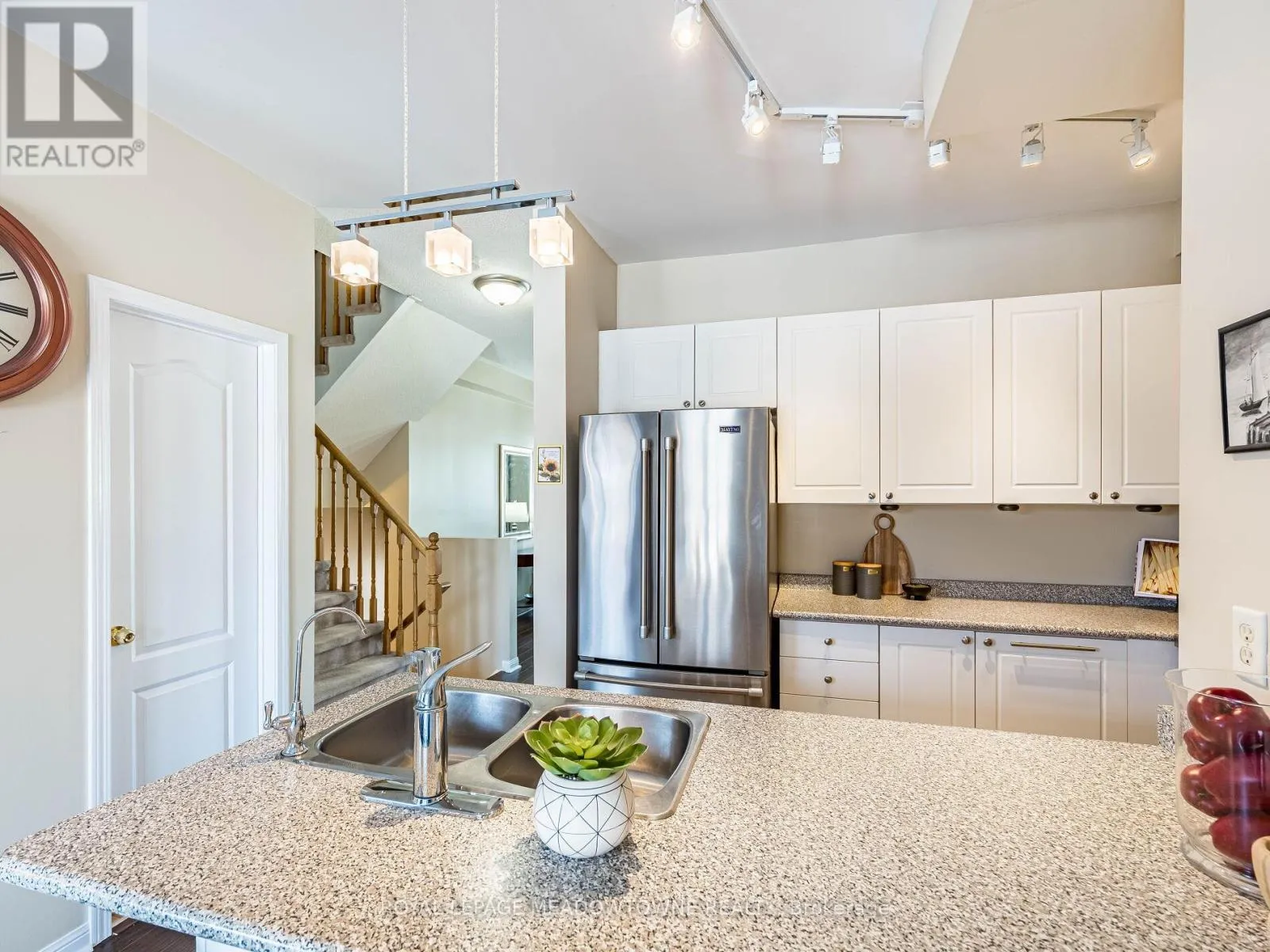 Trafalgar Rd & Princess Anne Dr Welcome to this beautifully maintained 3-bedroom townhome in the heart of Georgetown a rare opportunity featuring a 2-car garage, an exceptional find in townhome living. Thoughtfully upgraded and meticulously cared for, this home blends comfort, functionality, and modern convenience.Step inside to soaring 9-ft ceilings, durable laminate flooring, and a bright, open-concept main level designed for both everyday living and effortless entertaining. The kitchen truly stands out with soft-close cabinetry, smart storage solutions, stainless steel appliances, a premium JennAir induction/convection oven, Miele dishwasher, and a gas line ready for your BBQ on the walkout deck. New patio doors and high-efficiency windows including several Magic Windows with triple-pane glass and blackout shades fill the home with natural light while creating a quiet, energy-efficient retreat.Upstairs, you'll find 3 spacious bedrooms. The primary suite offers a large closet and private 4-piece ensuite complete with a relaxing soaker tub. A semi-ensuite main bath with a tiled shower serves the additional bedrooms, providing comfort and convenience for family or guests.The versatile lower level features large windows, a finished storage room, laundry/utility area, and direct access to both the backyard and garage perfect for organized, functional living. Additional highlights include a brand-new A/C, furnace (2022), owned tankless water heater (no rental fees), Culligan water purification system, water softener, central vacuum, Ecobee thermostat, 220V garage outlet, belt-drive opener, and a fully fenced backyard.Located just minutes from vibrant downtown shops, restaurants, parks, trails, schools, and the GO station, this home offers the perfect balance of small-town charm and commuter convenience.With rare garage space, extensive upgrades, and an unbeatable location, this is a standout opportunity you won't want to miss, book your private showing today and experience it for yourself. (id:27476)